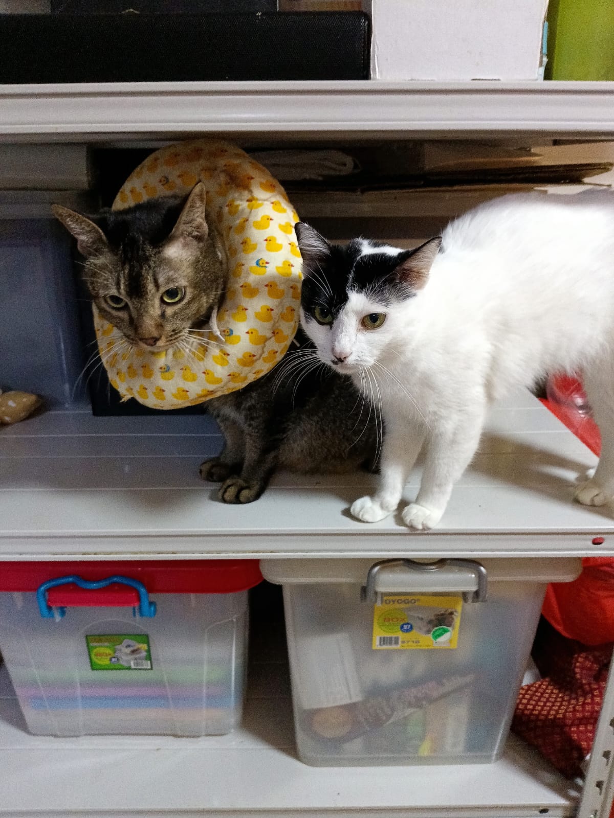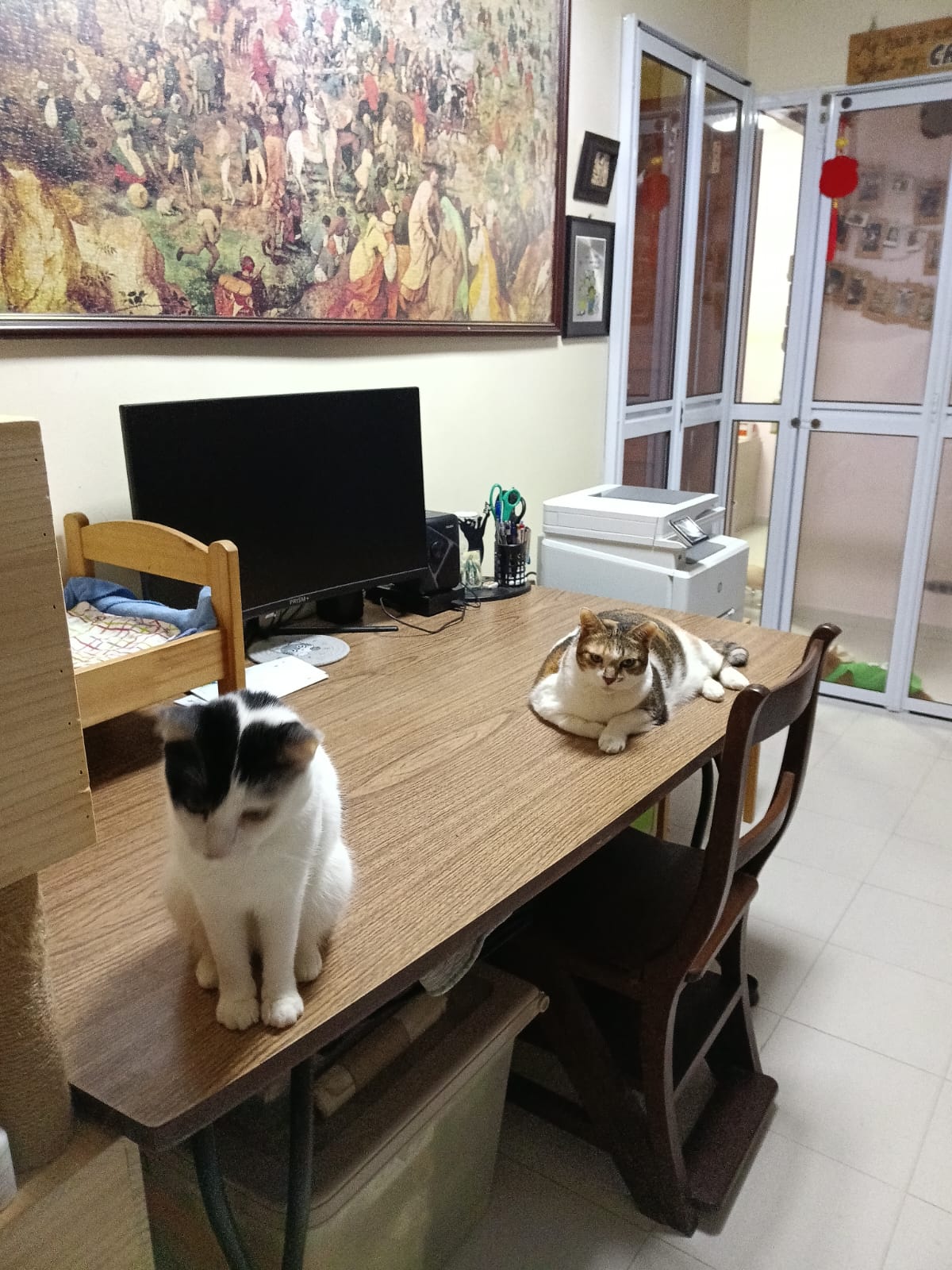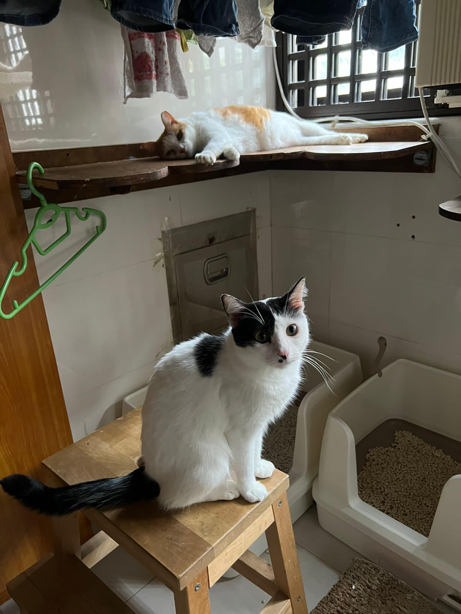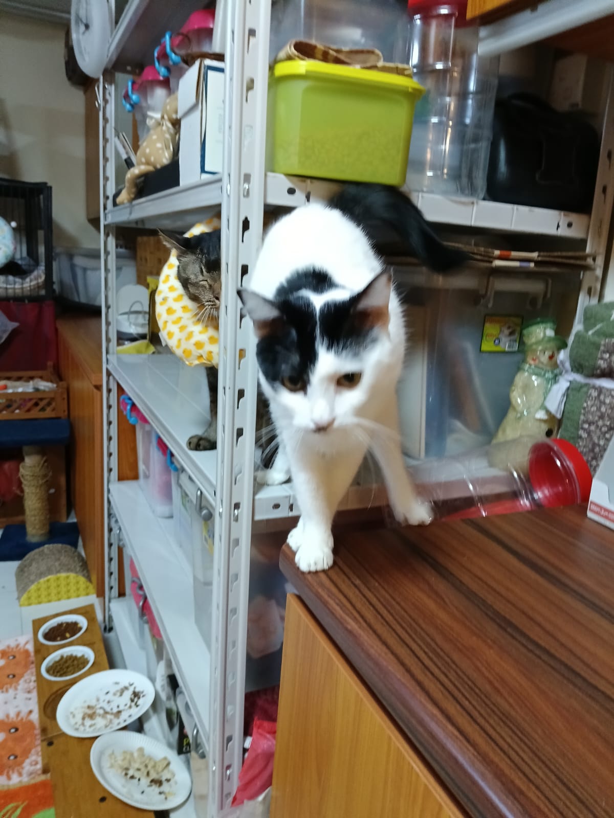 9.00am: I enter 猫房 and both joy and rufus right there. But they Waited for me to throw plates. Scoop poo n I go into 猫房 take new plates n they stare at me, so long then serve food.