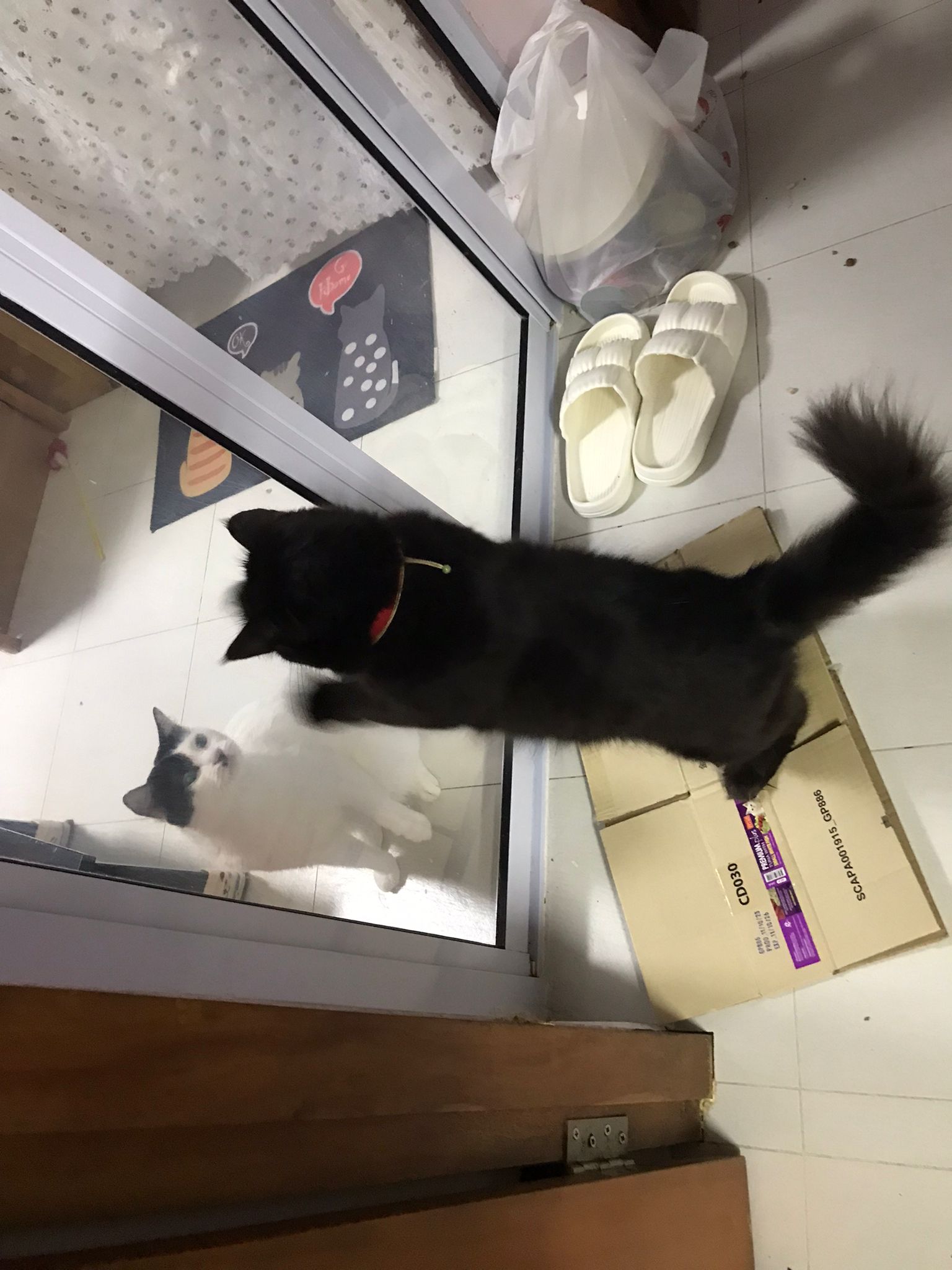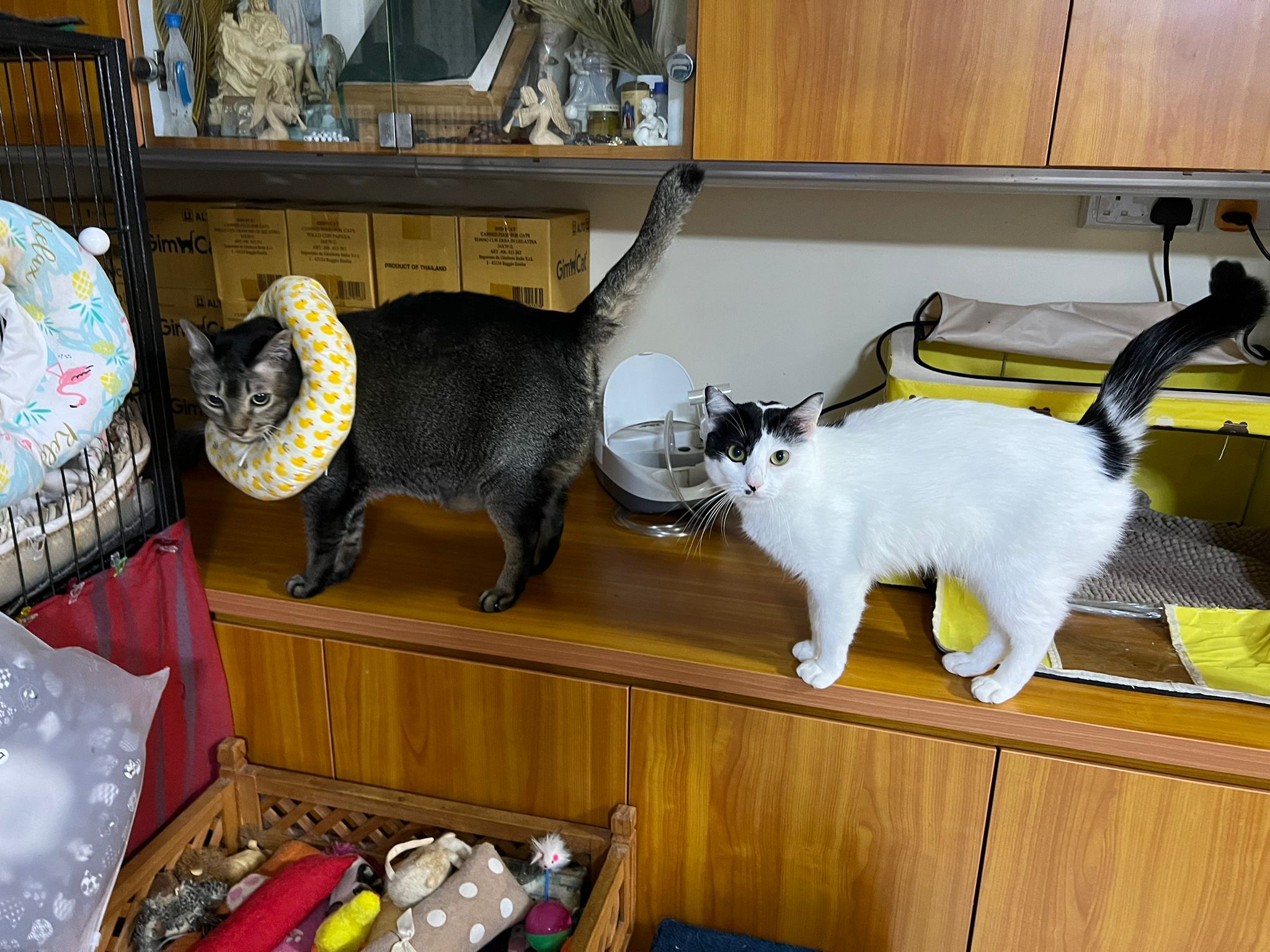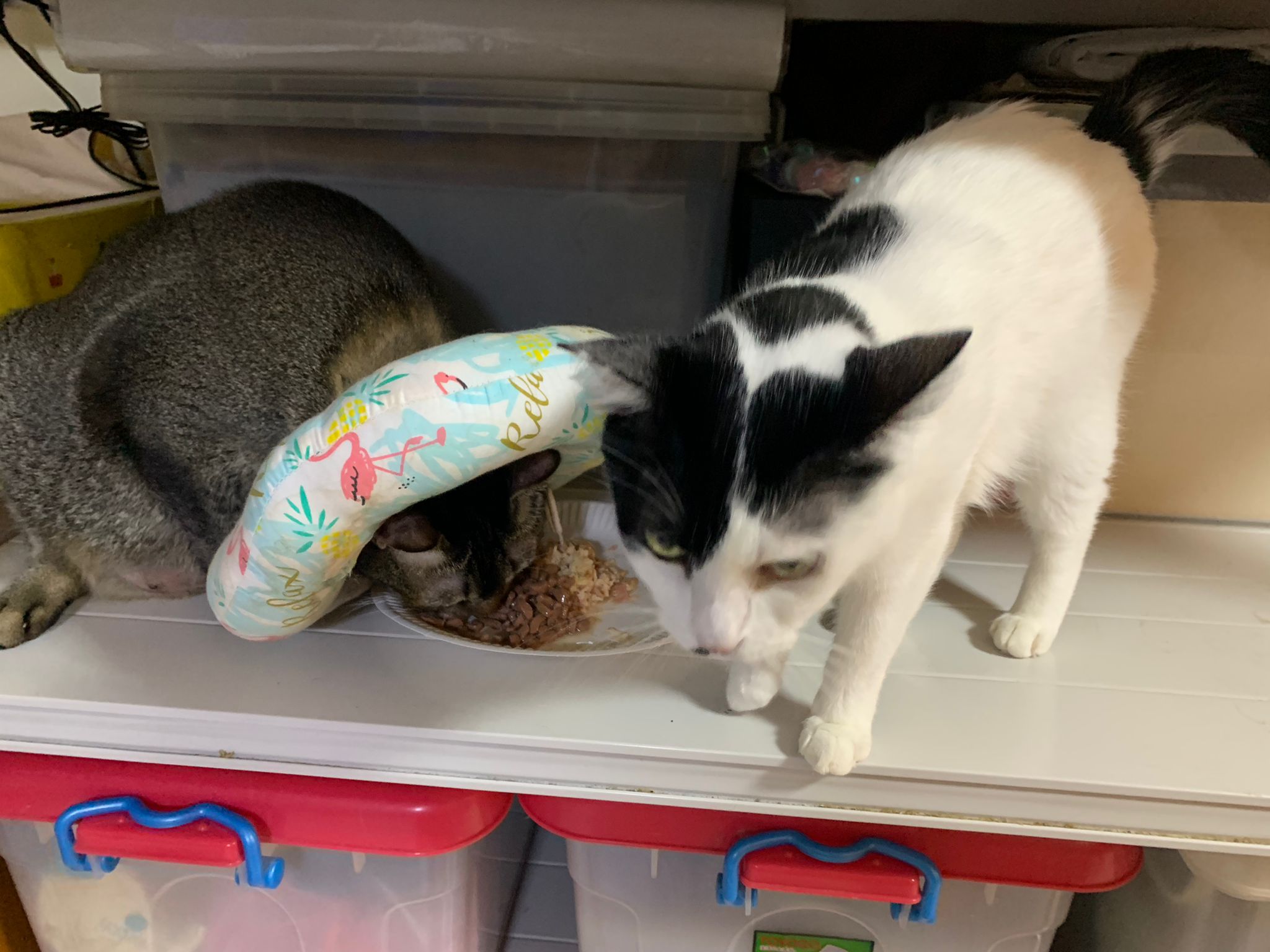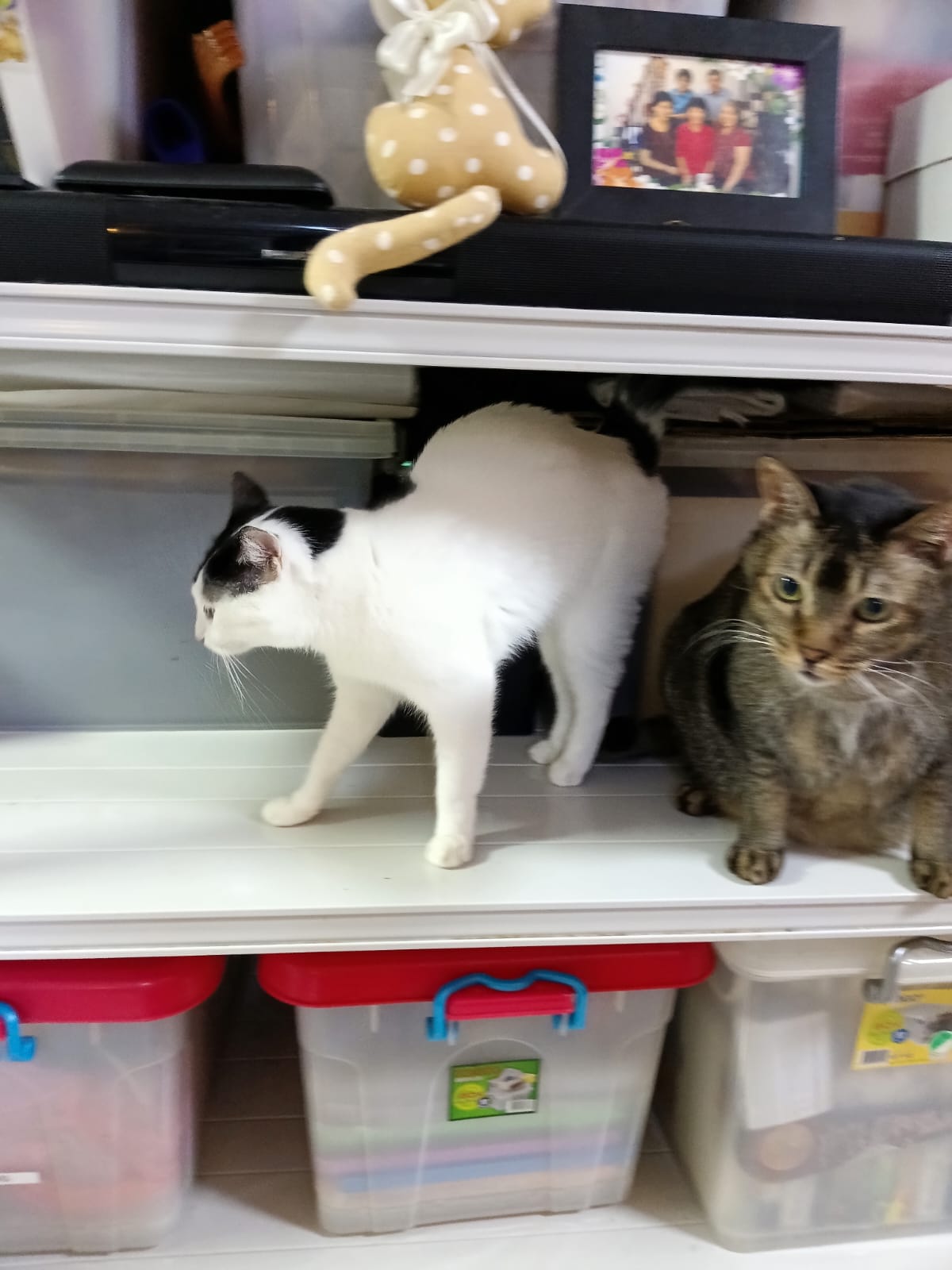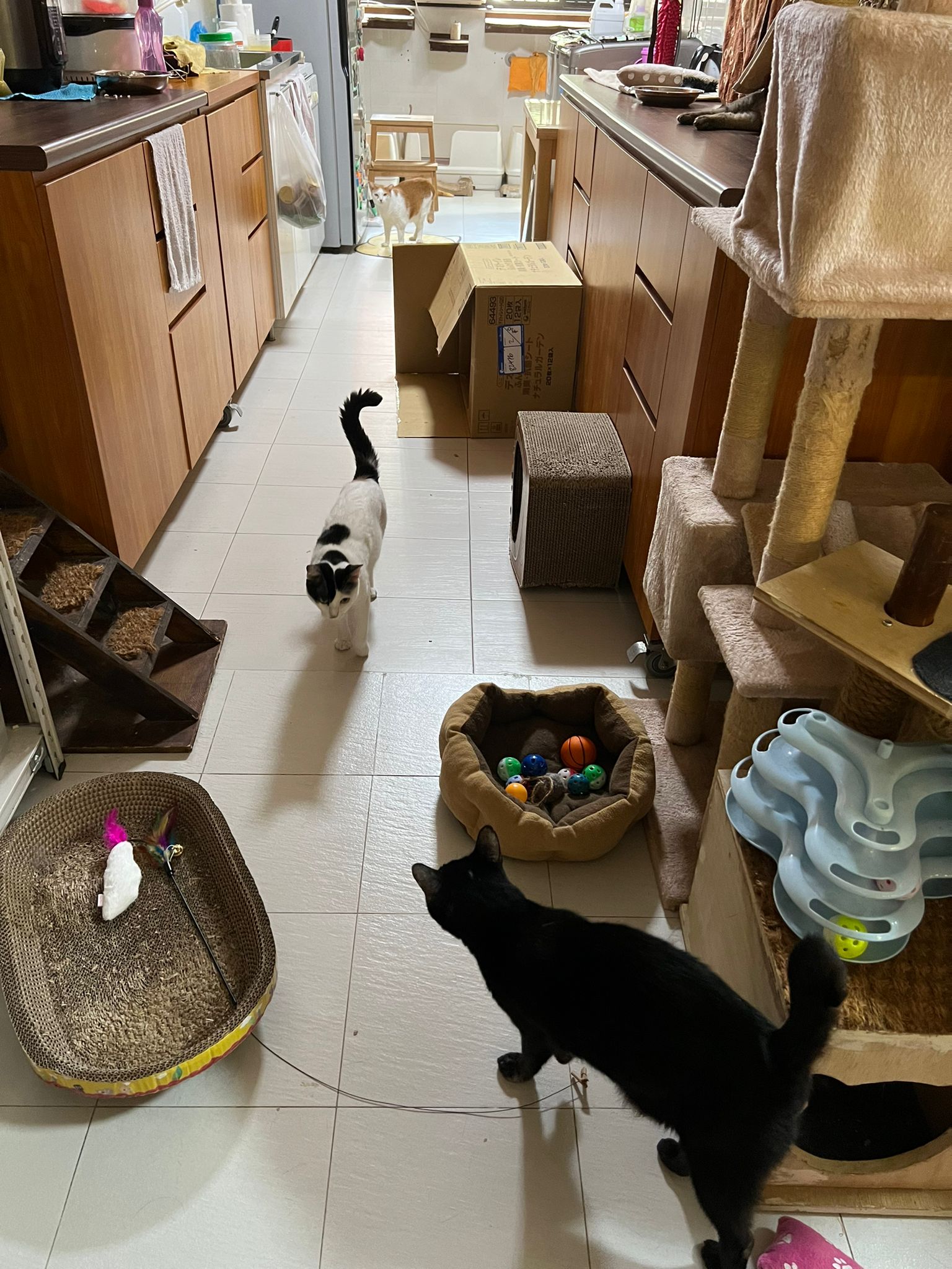 9.00am: I enter 猫房 and both joy and rufus right there. But they Waited for me to throw plates. Scoop poo n I go into 猫房 take new plates n they stare at me, so long then serve food.