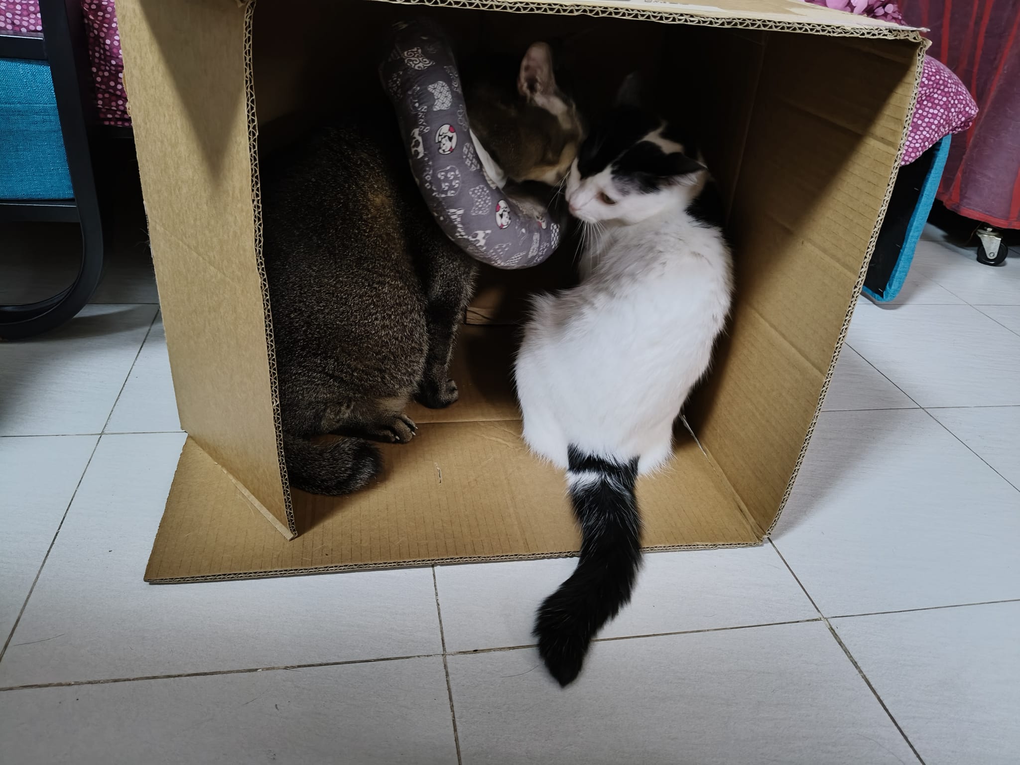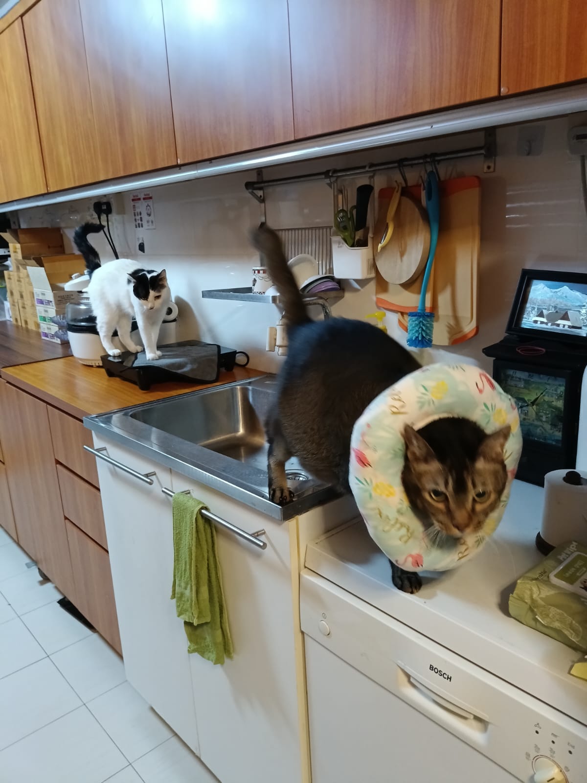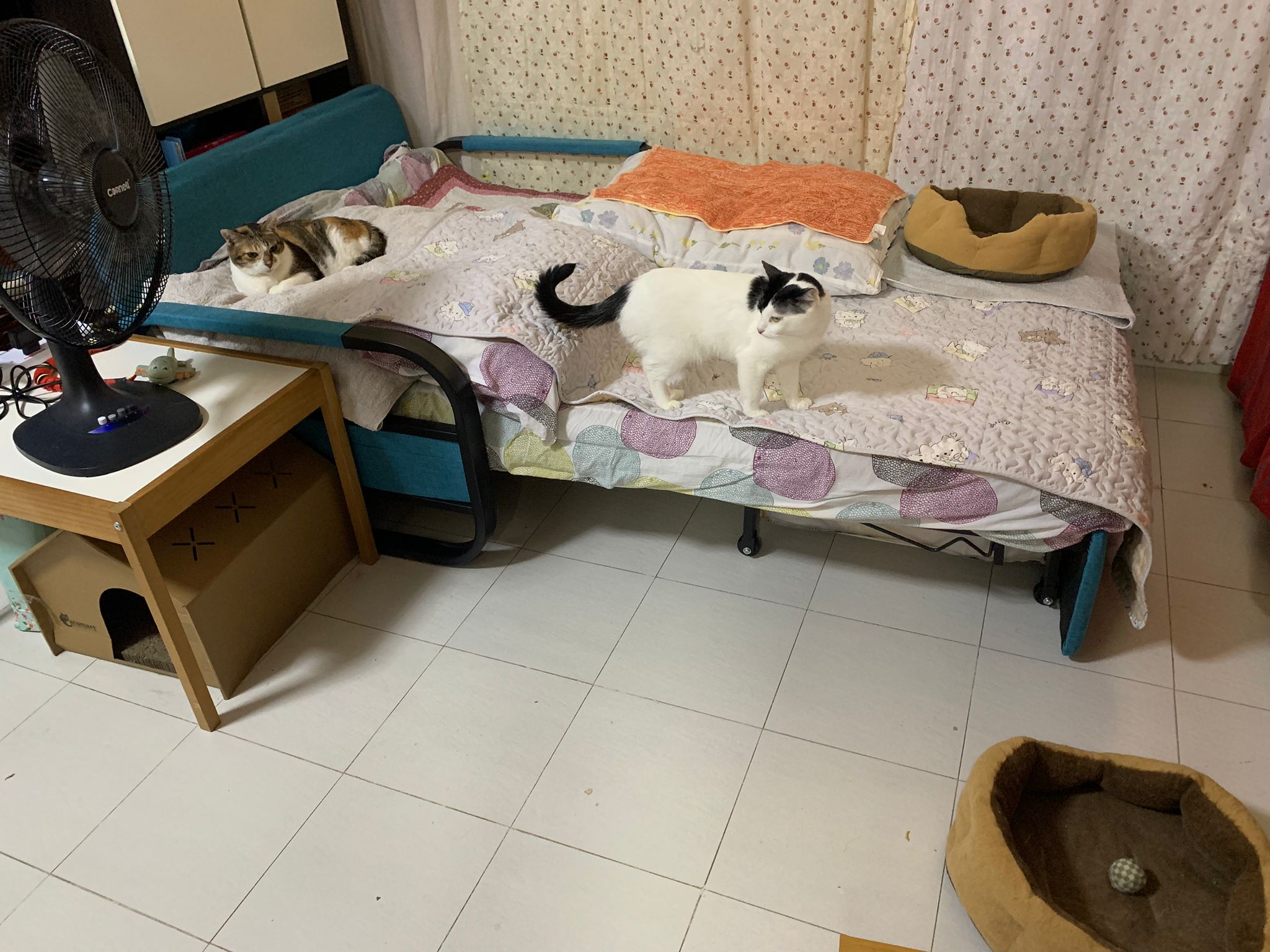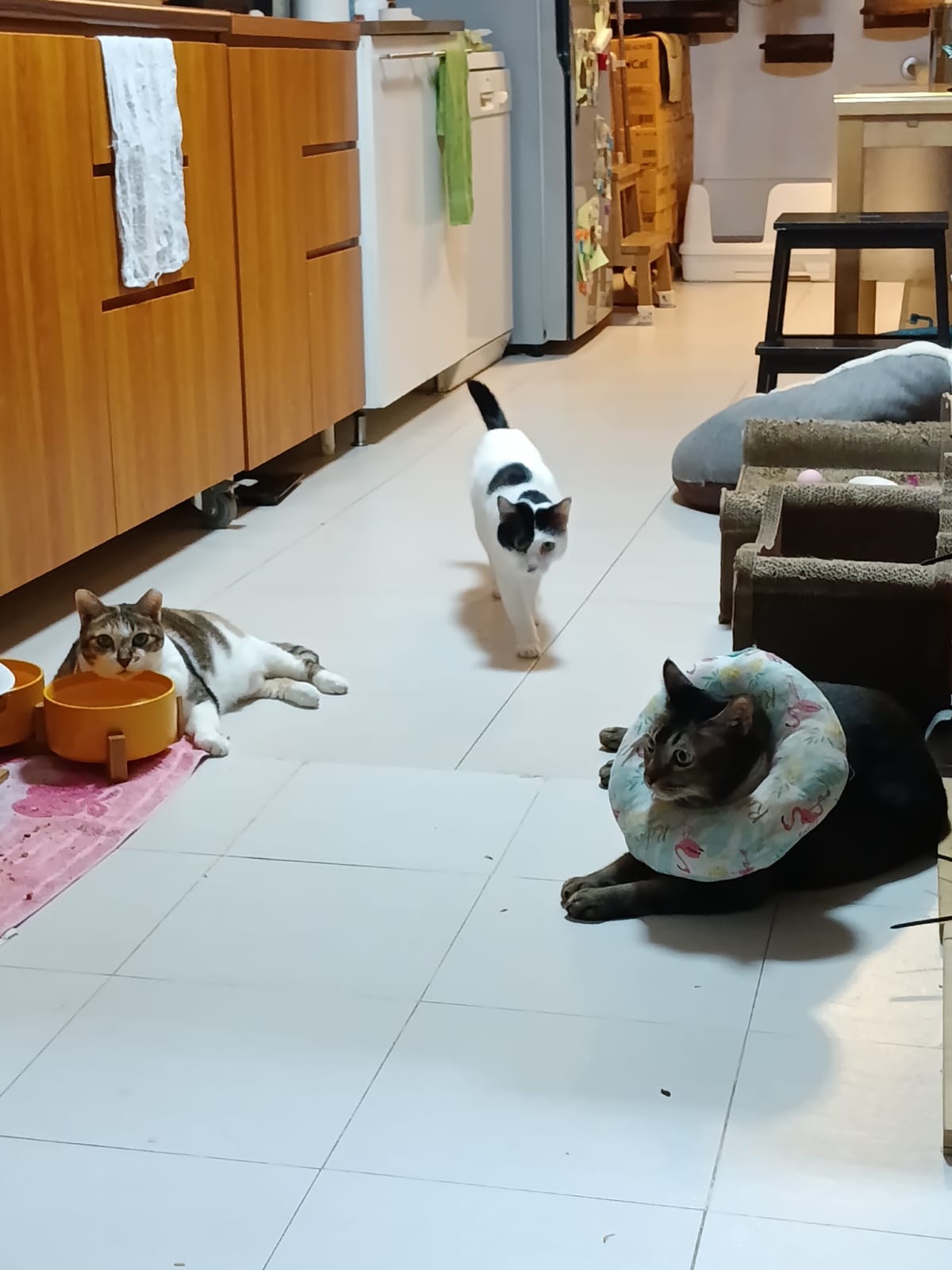 9.00am: I enter 猫房 and both joy and rufus right there. But they Waited for me to throw plates. Scoop poo n I go into 猫房 take new plates n they stare at me, so long then serve food.