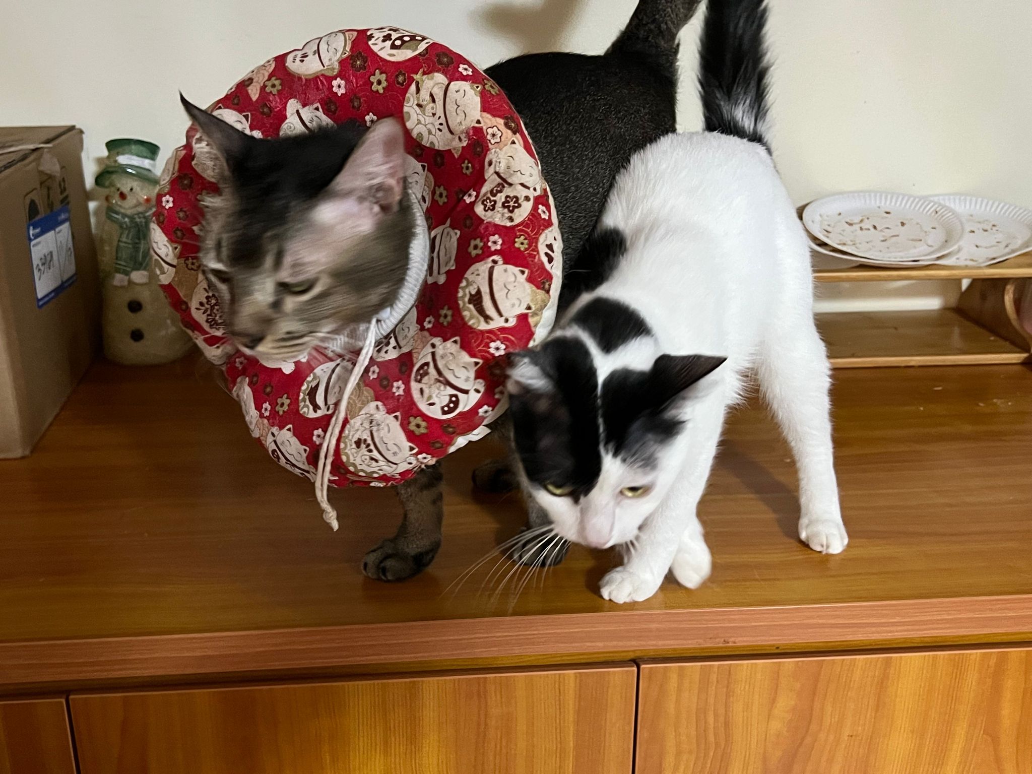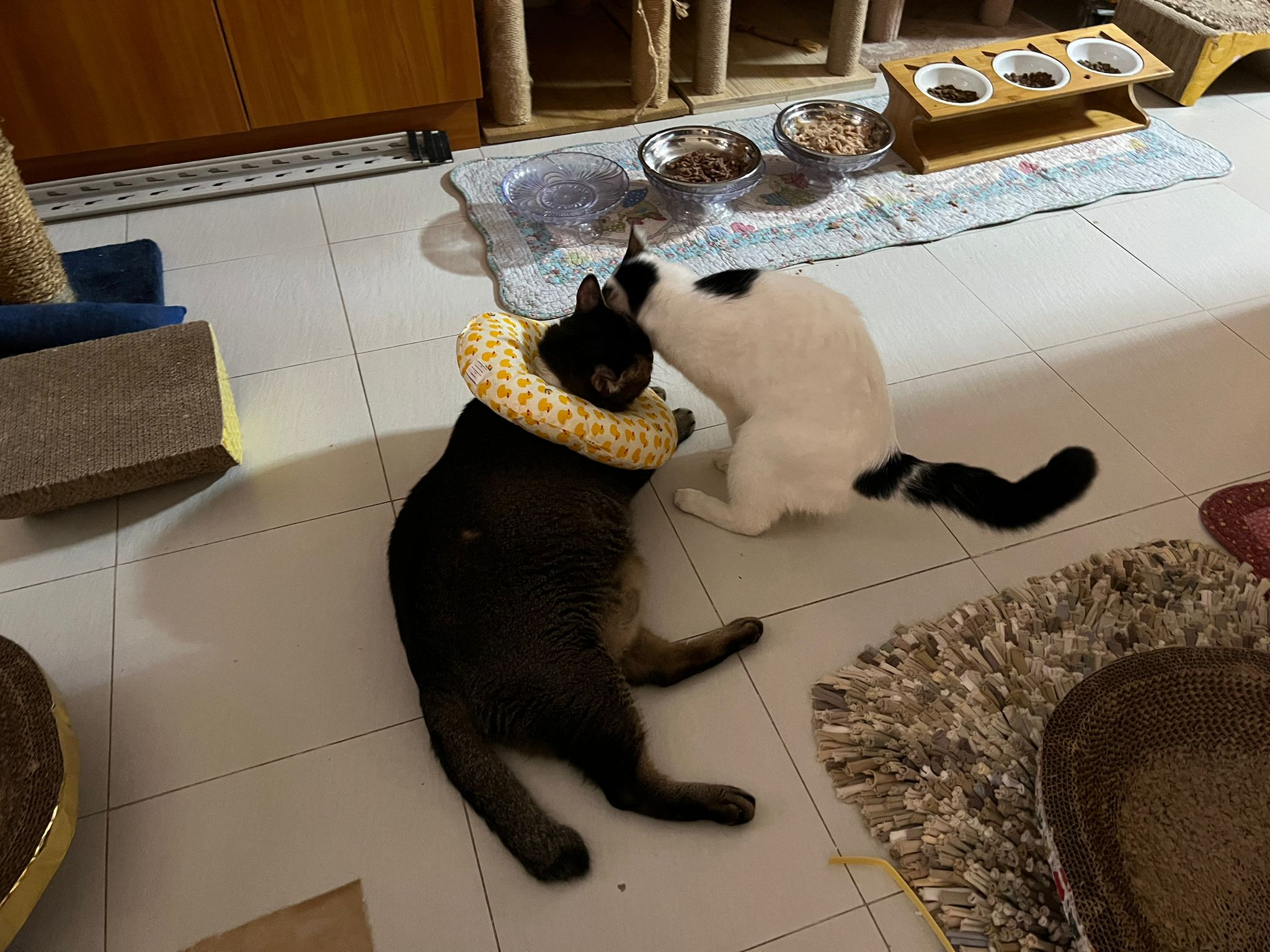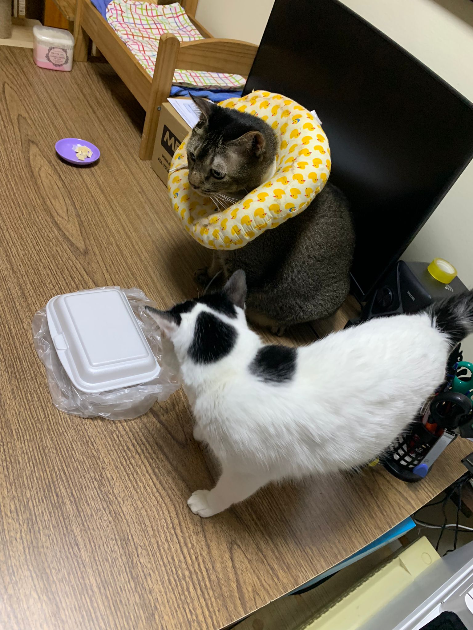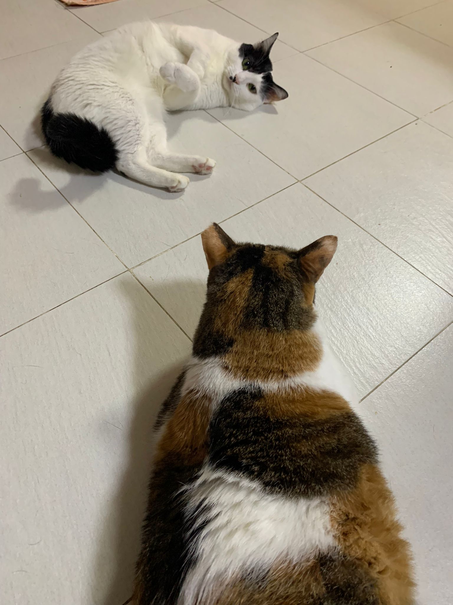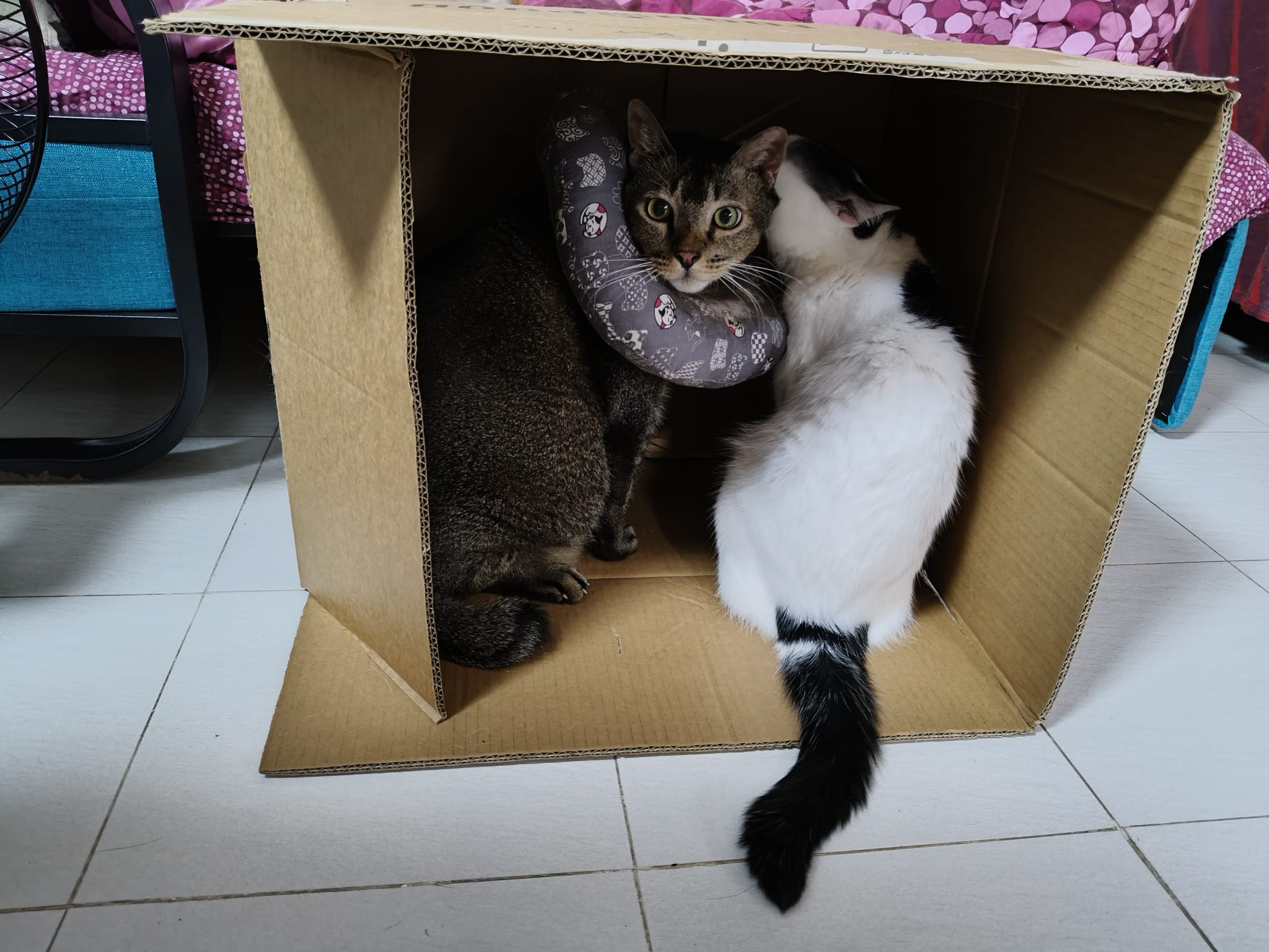 9.00am: I enter 猫房 and both joy and rufus right there. But they Waited for me to throw plates. Scoop poo n I go into 猫房 take new plates n they stare at me, so long then serve food.