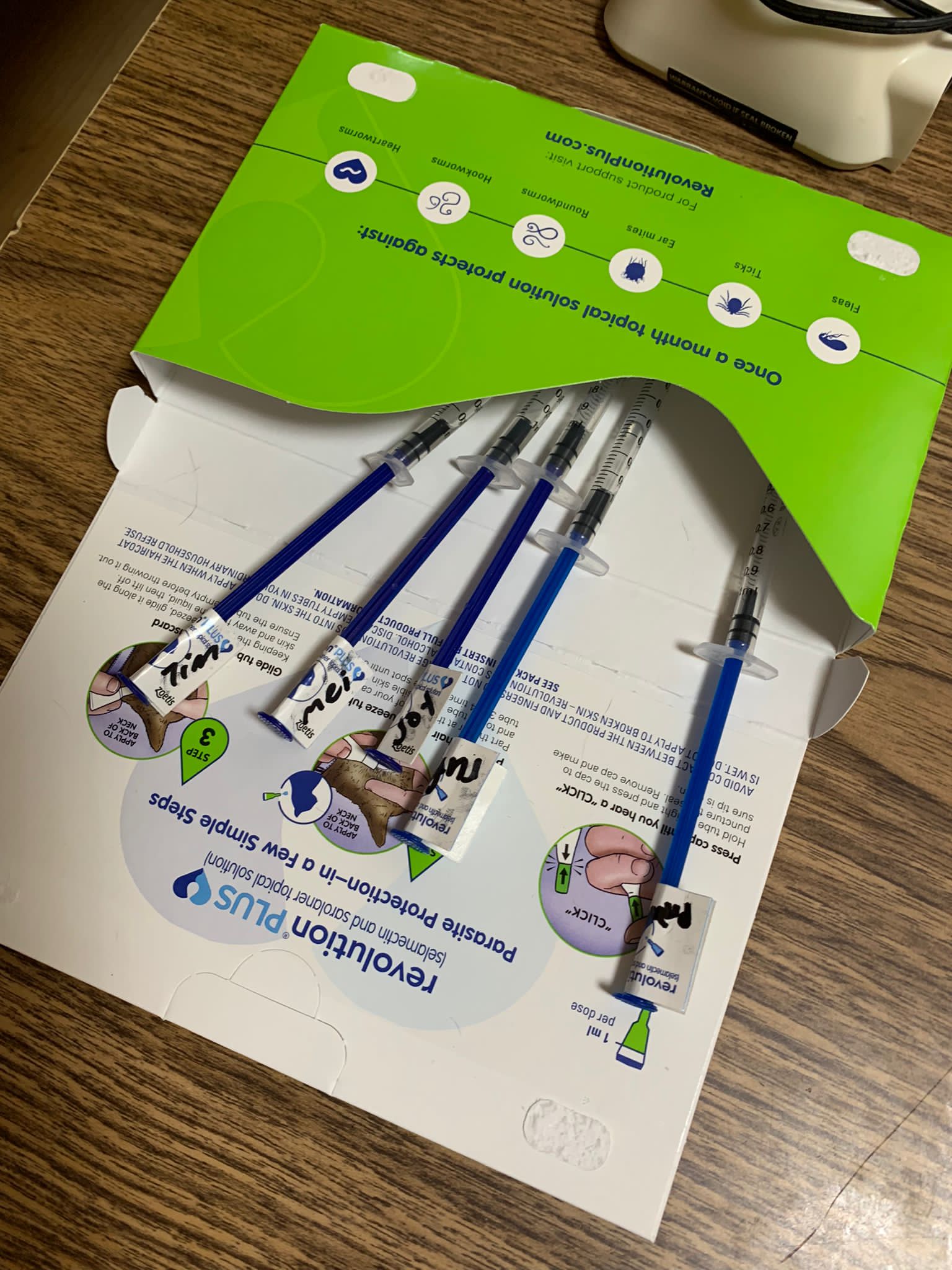 1pm: 3.18kg – exact weight no change in 3 months. Prepared revo plus for later she grooming