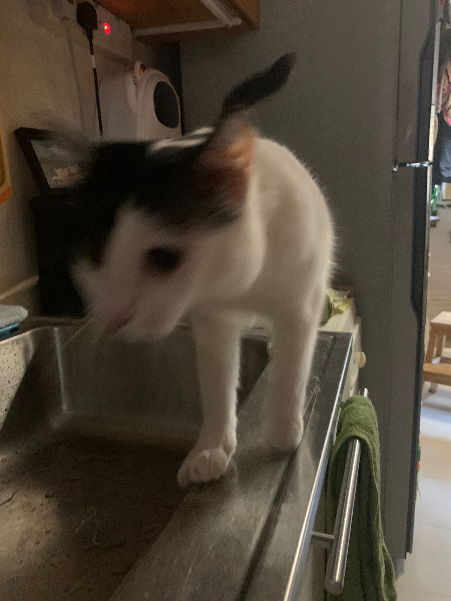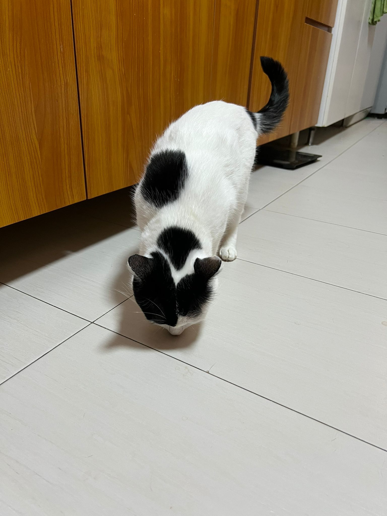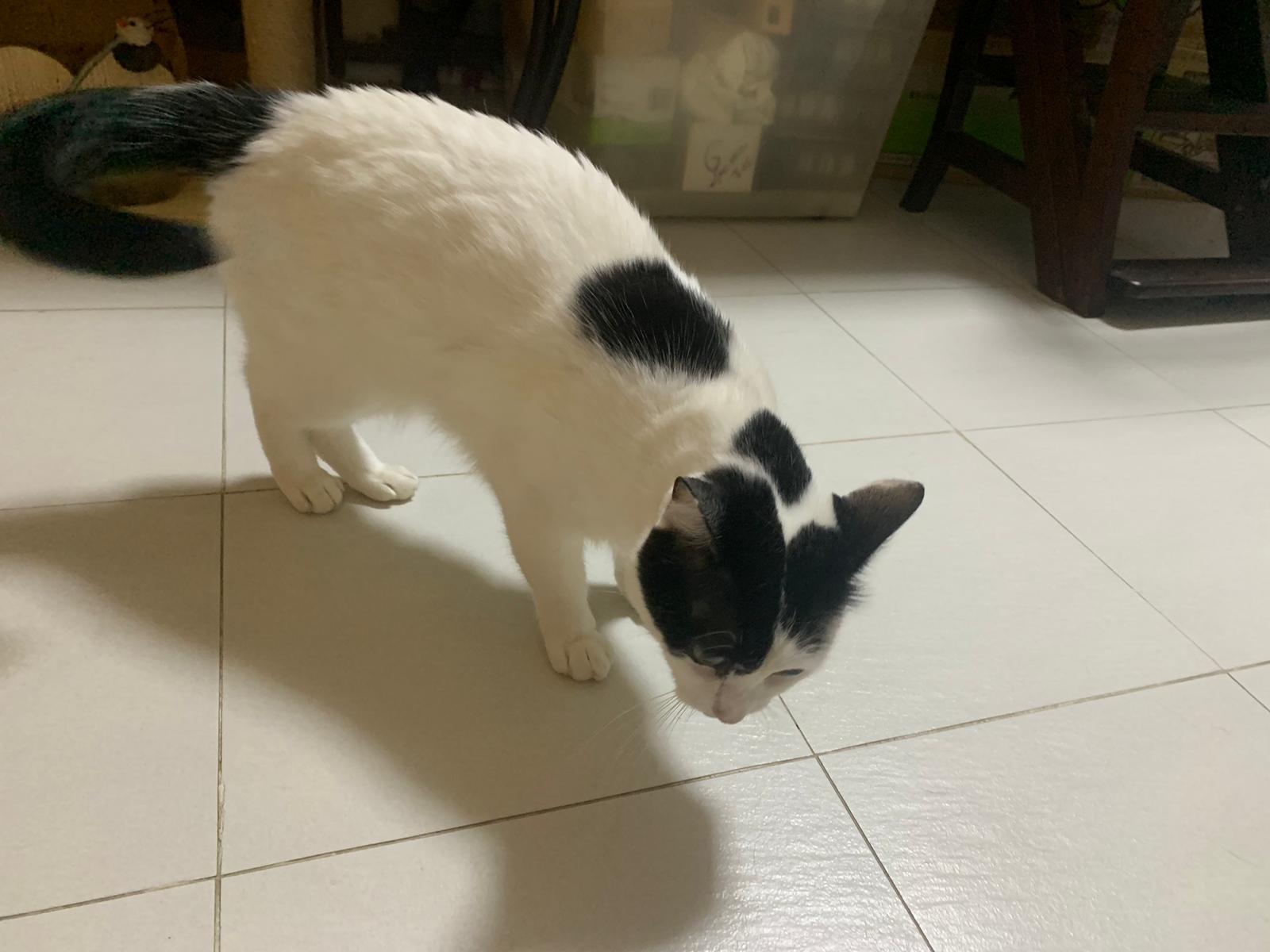 Serve her food – only see her eat maybe 5%. Then she thru out kpo watch me walk here n walk there. I use the new vacuum suck a little thing, she a little scare