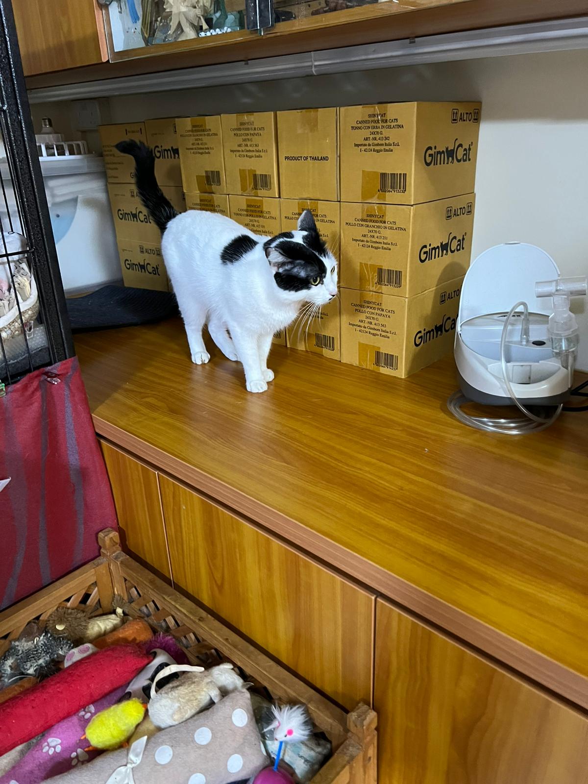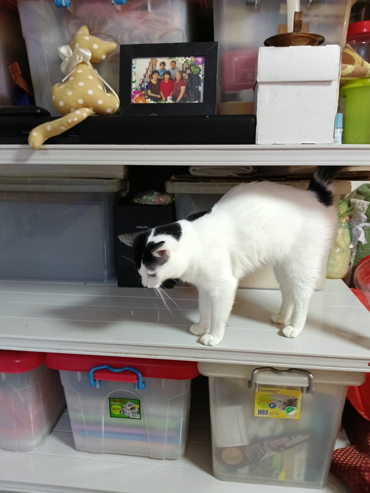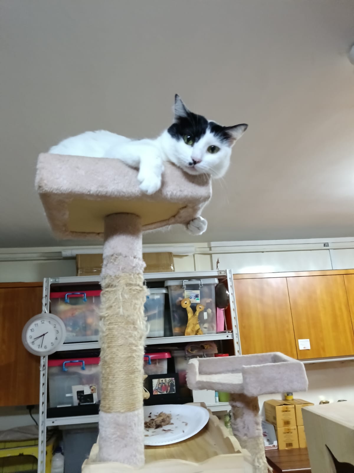 11am+: today I cover morning round. Rufus and joy r still the active one waiting for food. joy got eat. And she thru out keep monitoring me walking in n out cos packing 猫房 stuff, bought so much food. She keep flipo so many times on floor wanna me sayang.