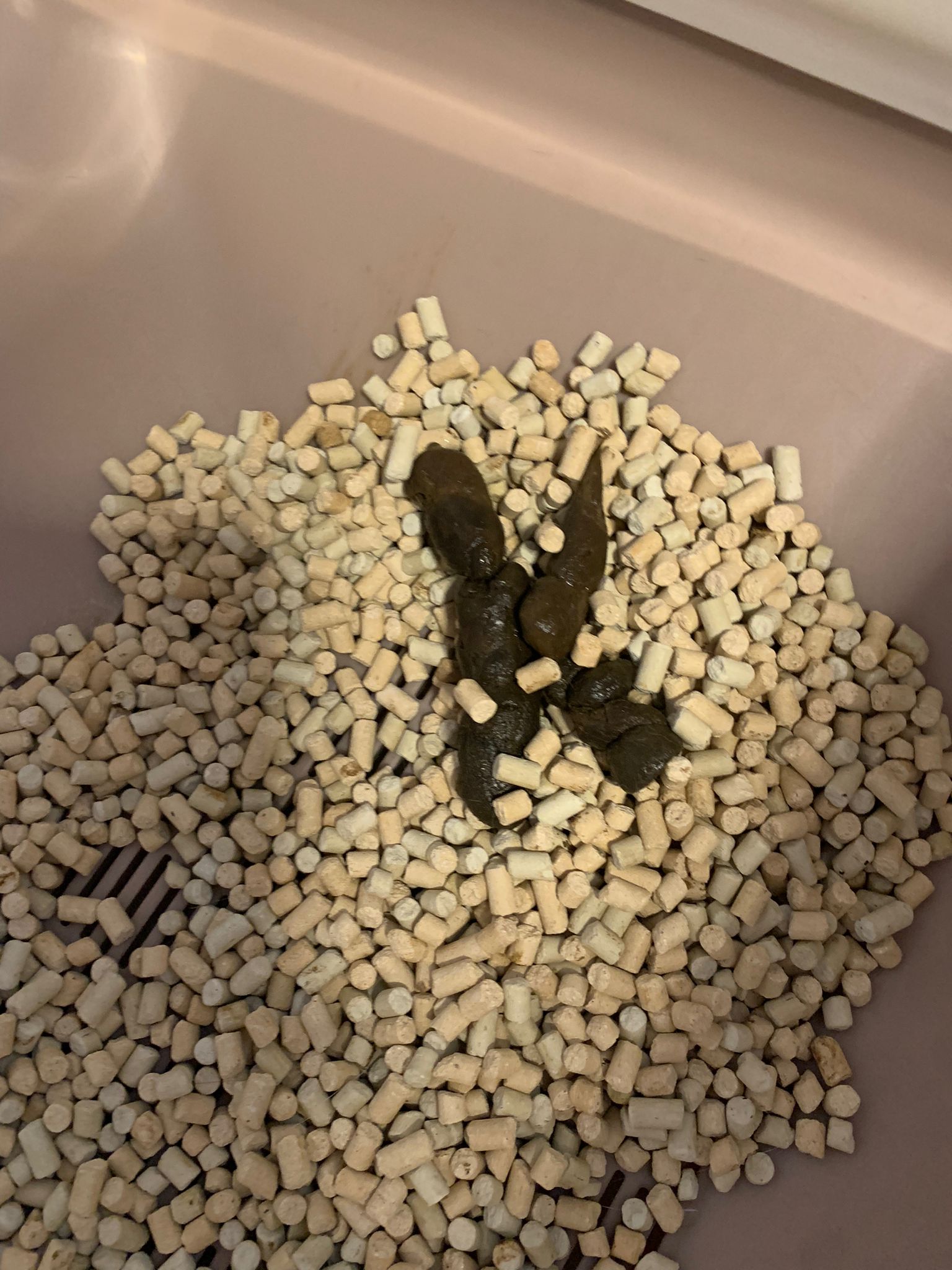 Then I saw her in bin for some time, pooing – poo is 4/10.