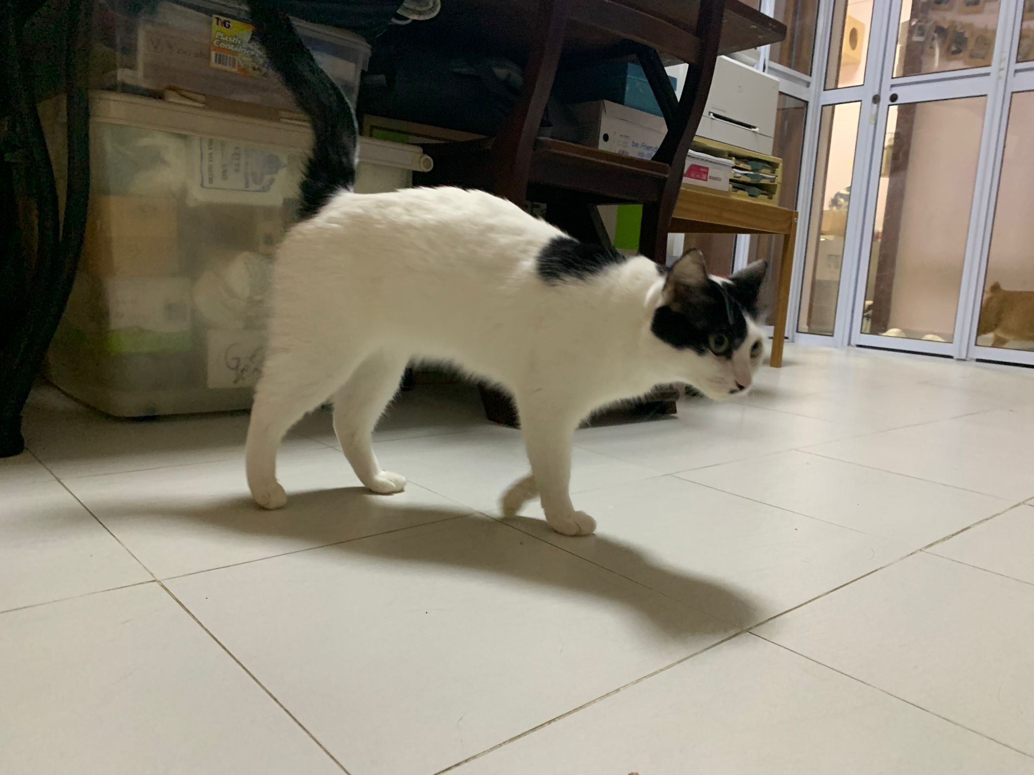 Serve food, she don’t want share w rufus and walk away. I serve her Aristocat, and she eat. Then as usual she go Mia, then appear in front of 猫房 door then reappear anywhere ha.