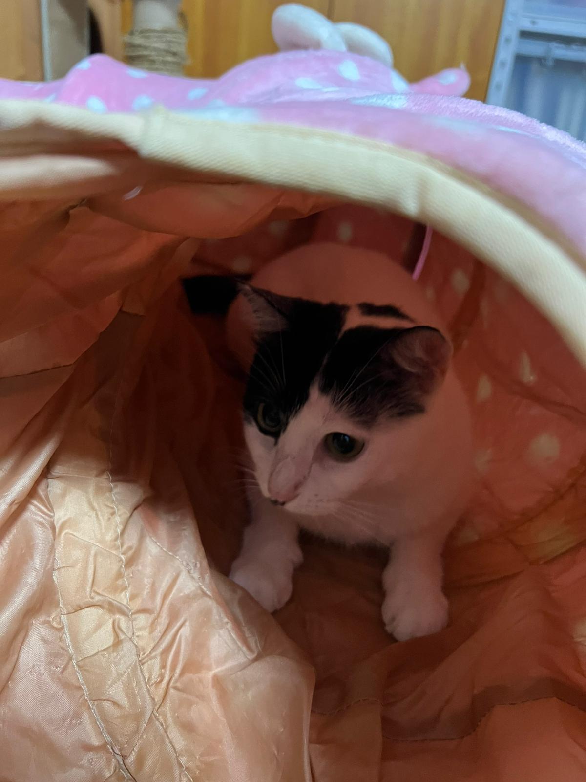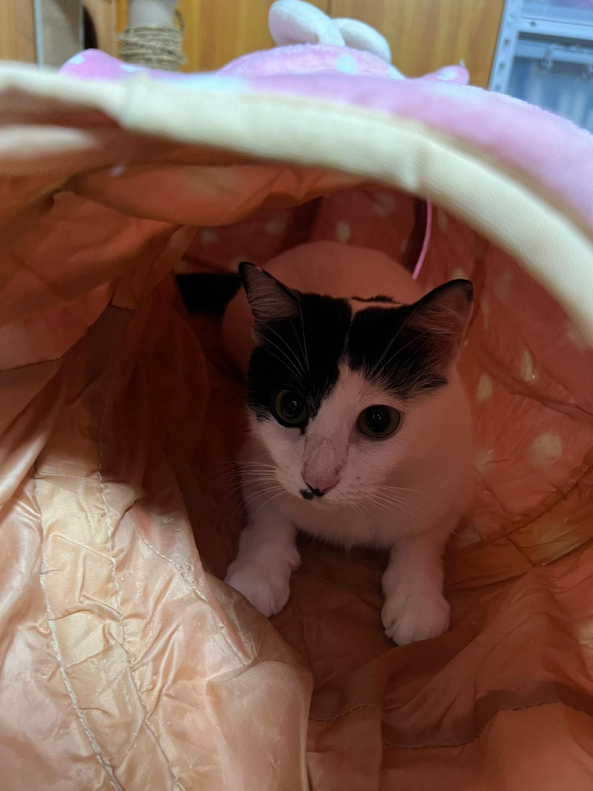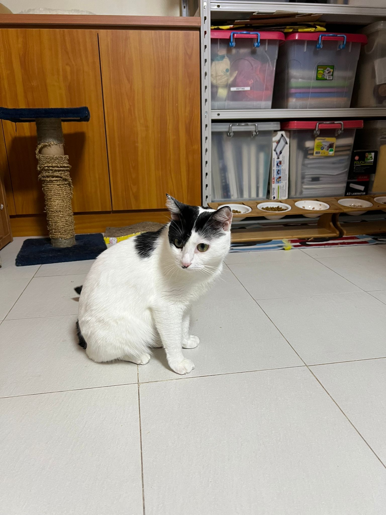 Came to 猫房 when she is first rescued, now living w timmy gang.
