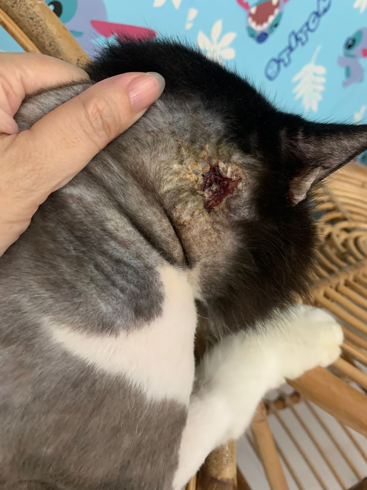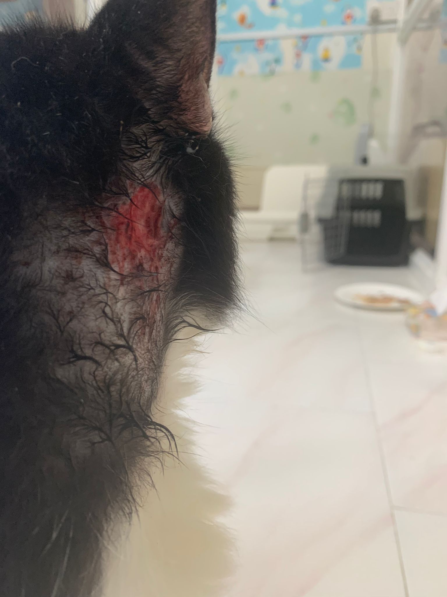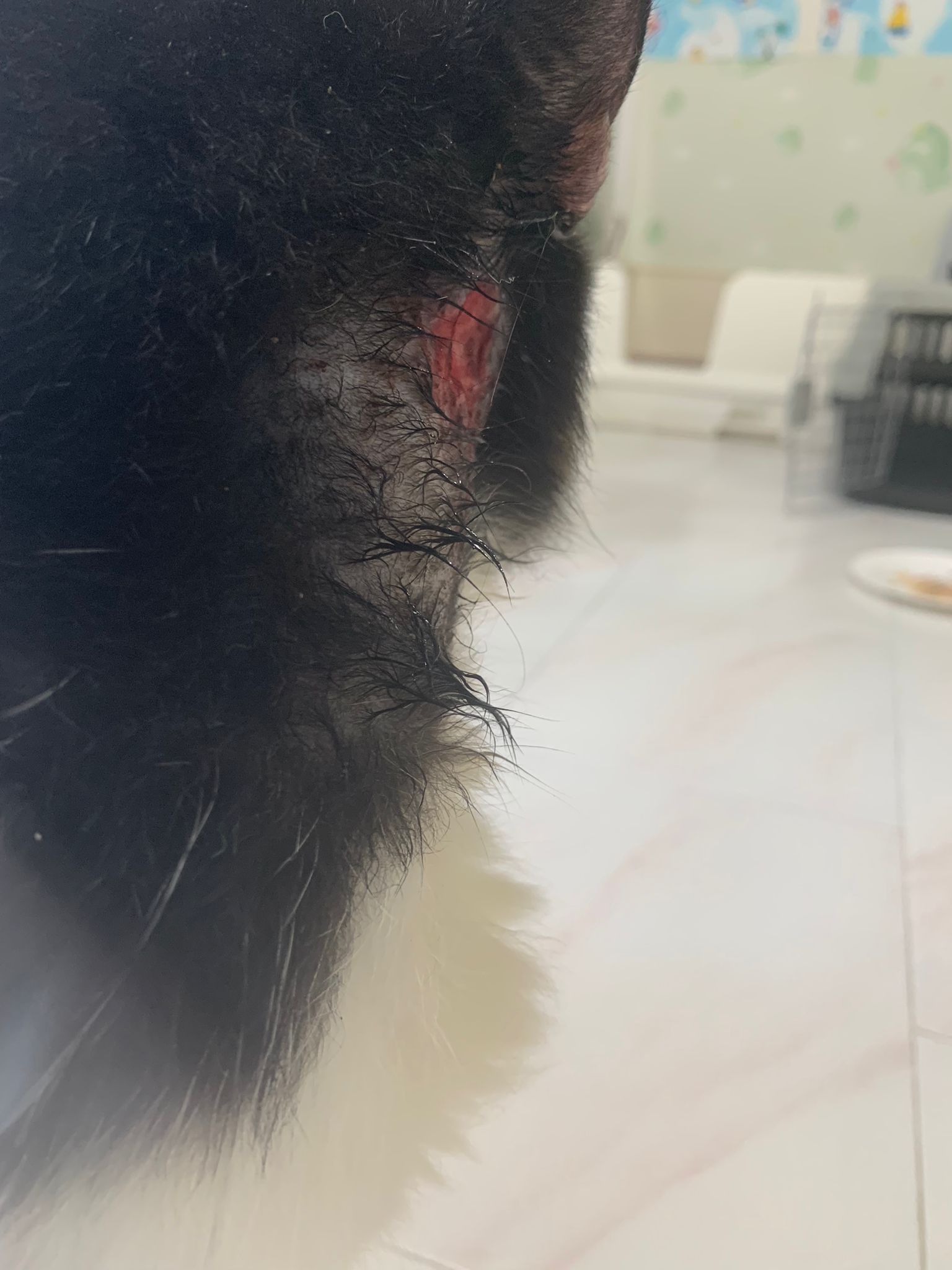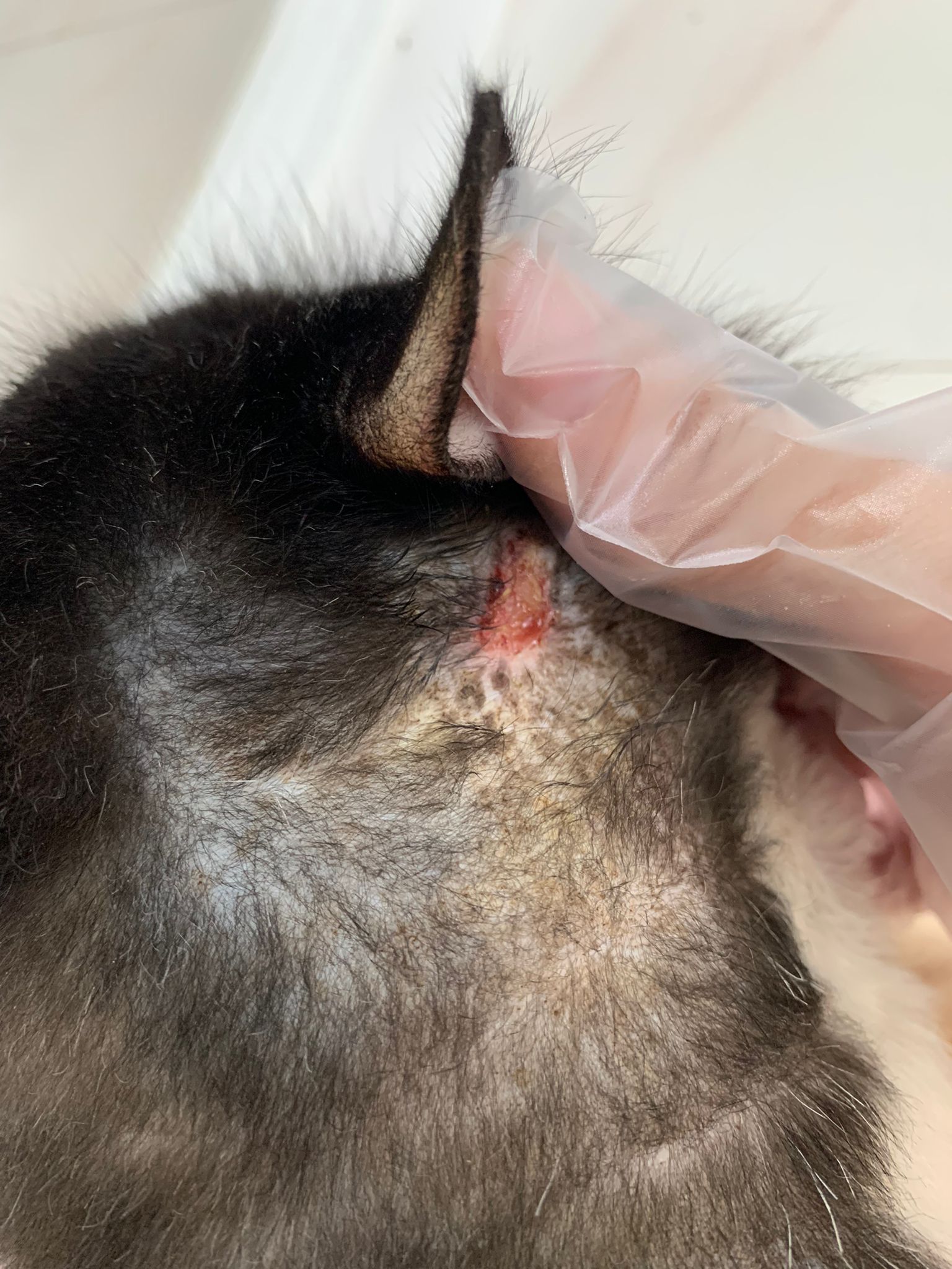 check his wound out, I clean w f10 he still ok. Will struggle but my scruff is fine. Put the ointment from clinic he will jump. Erm. I’ll consider the treatment again. His left side also same loh. Except not red. His body and head also have.