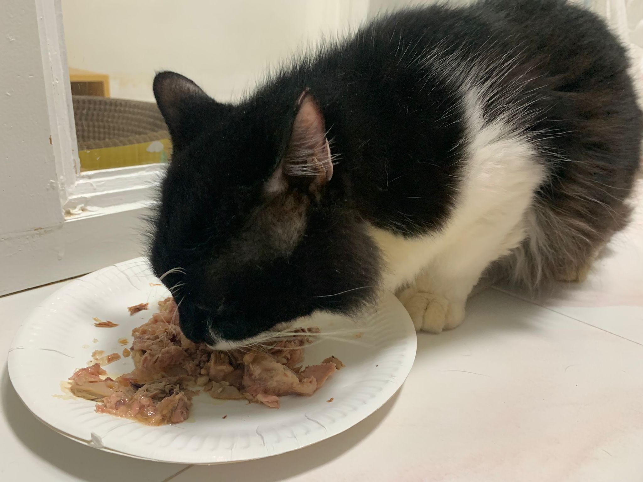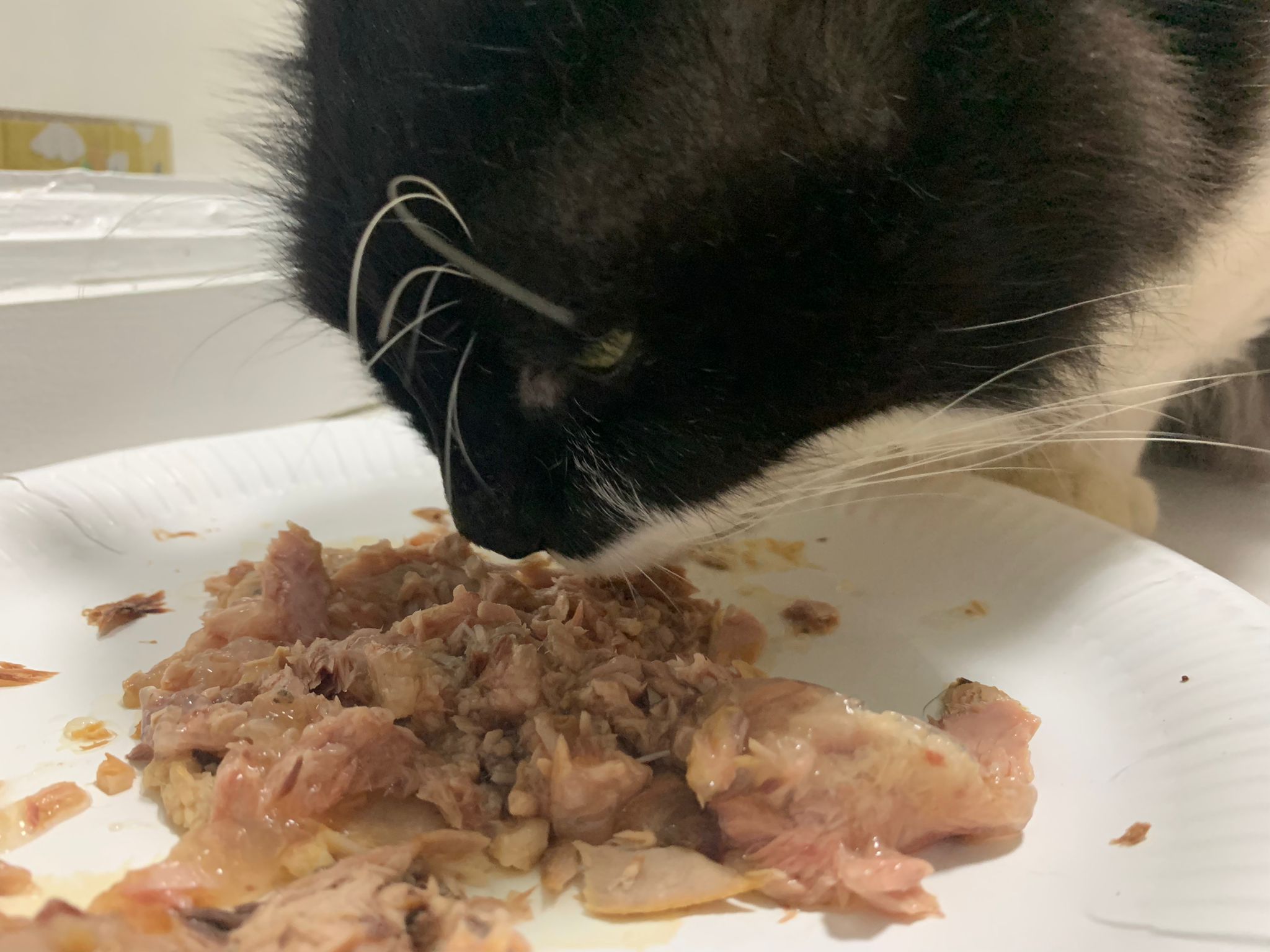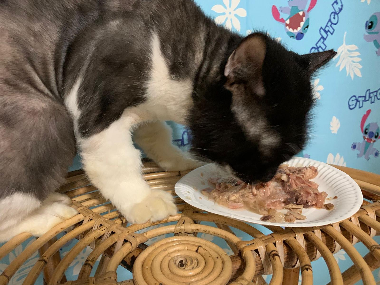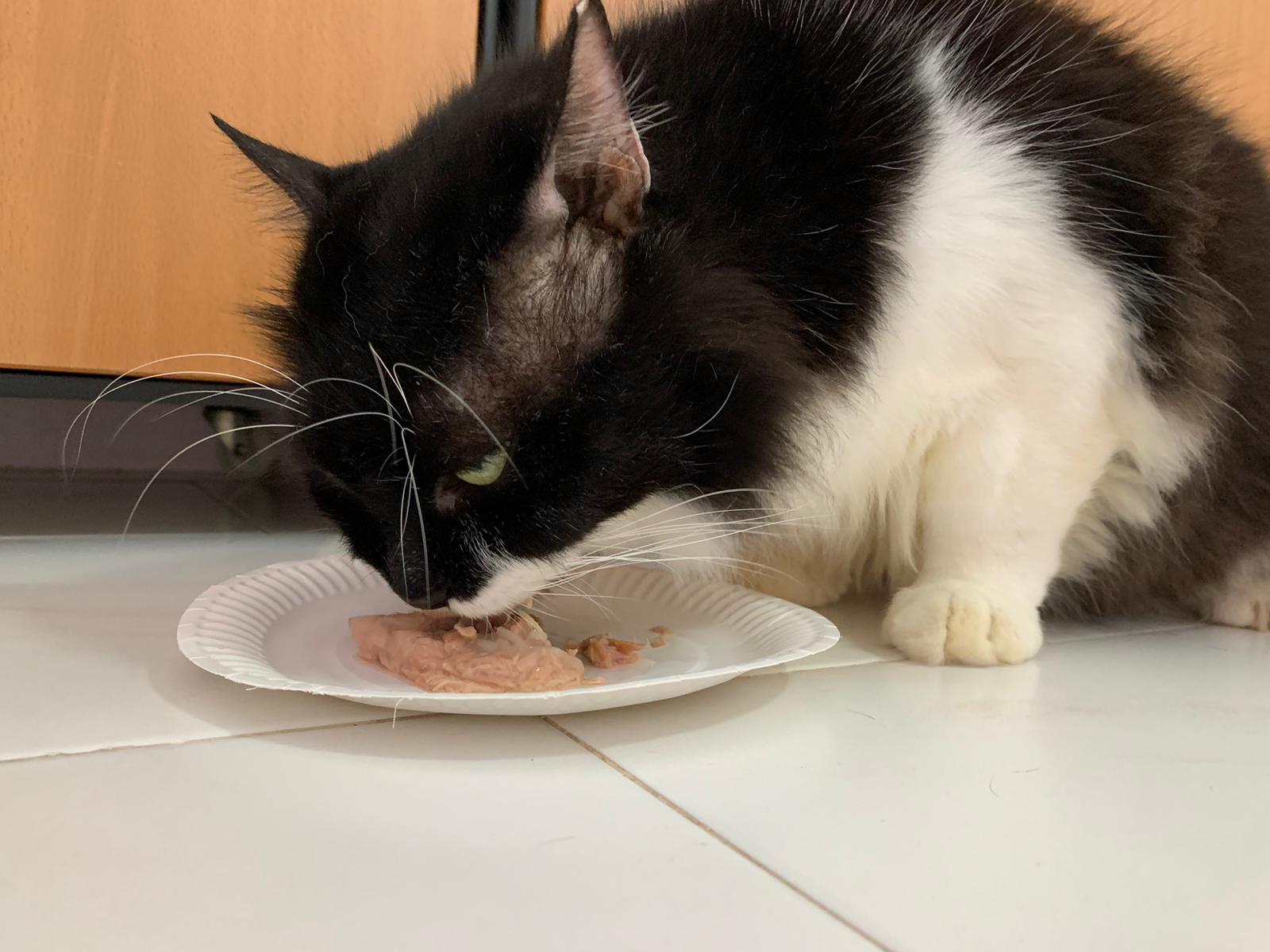 Serve another can of tuna w salmon – he eat.