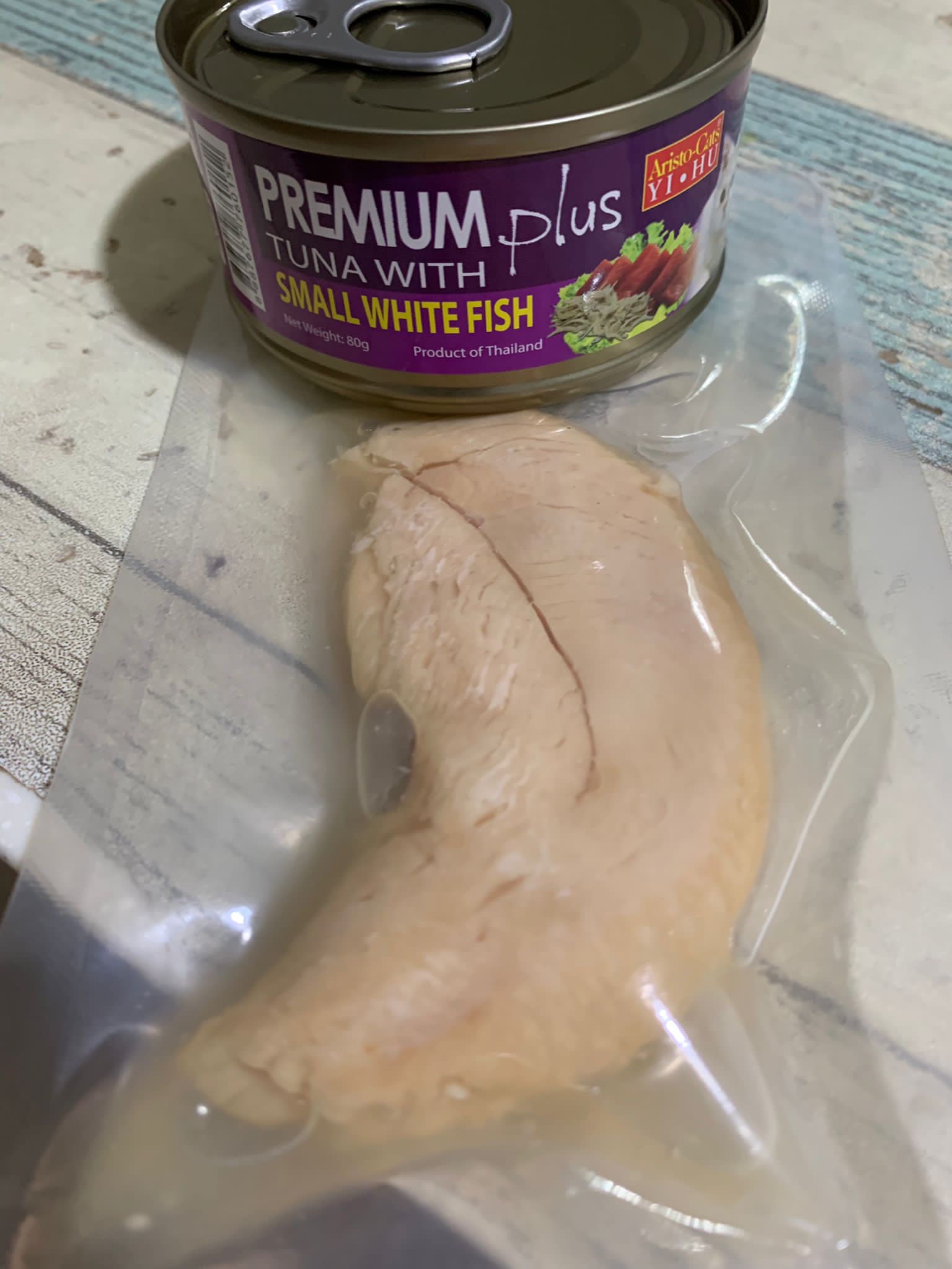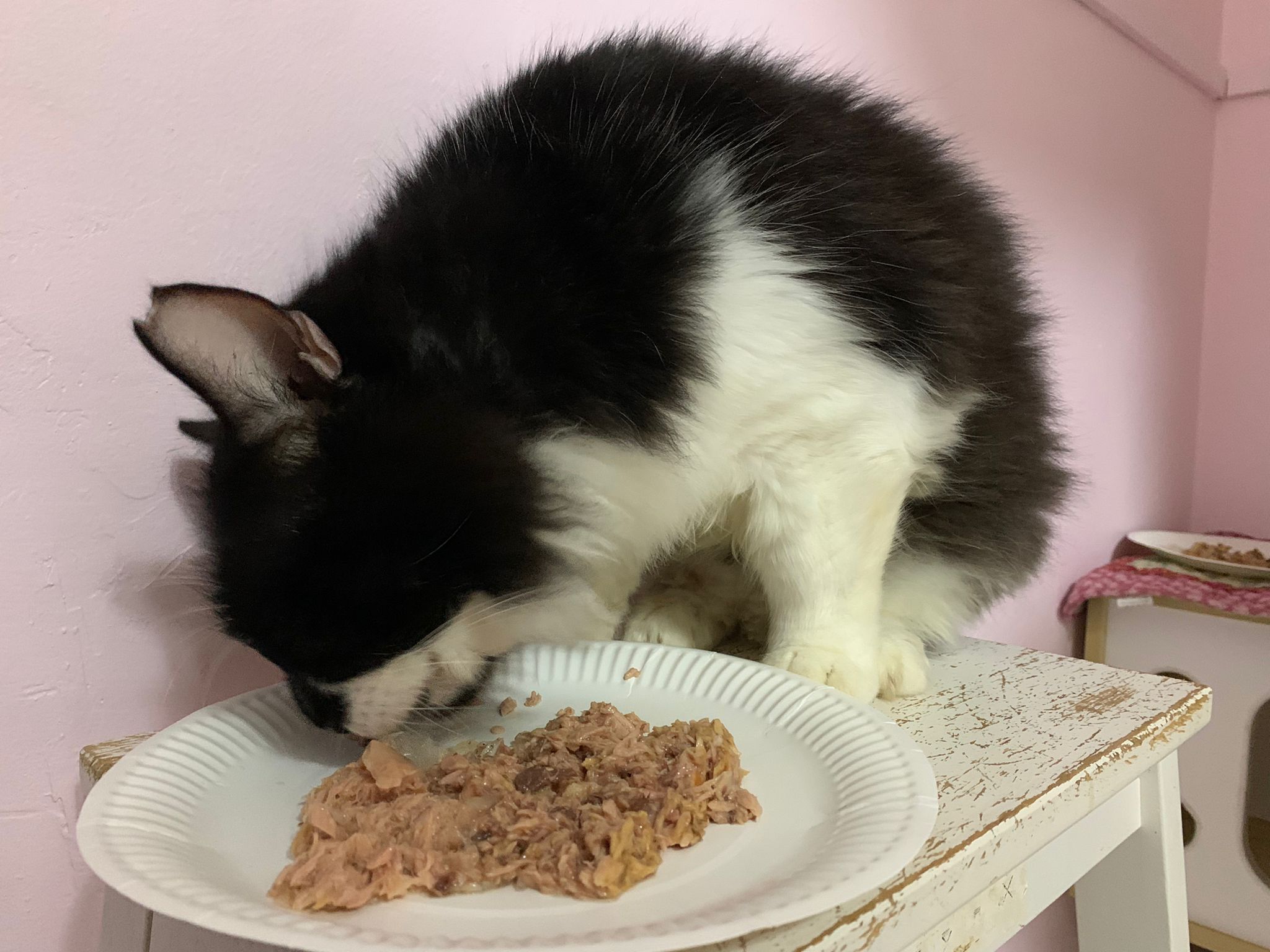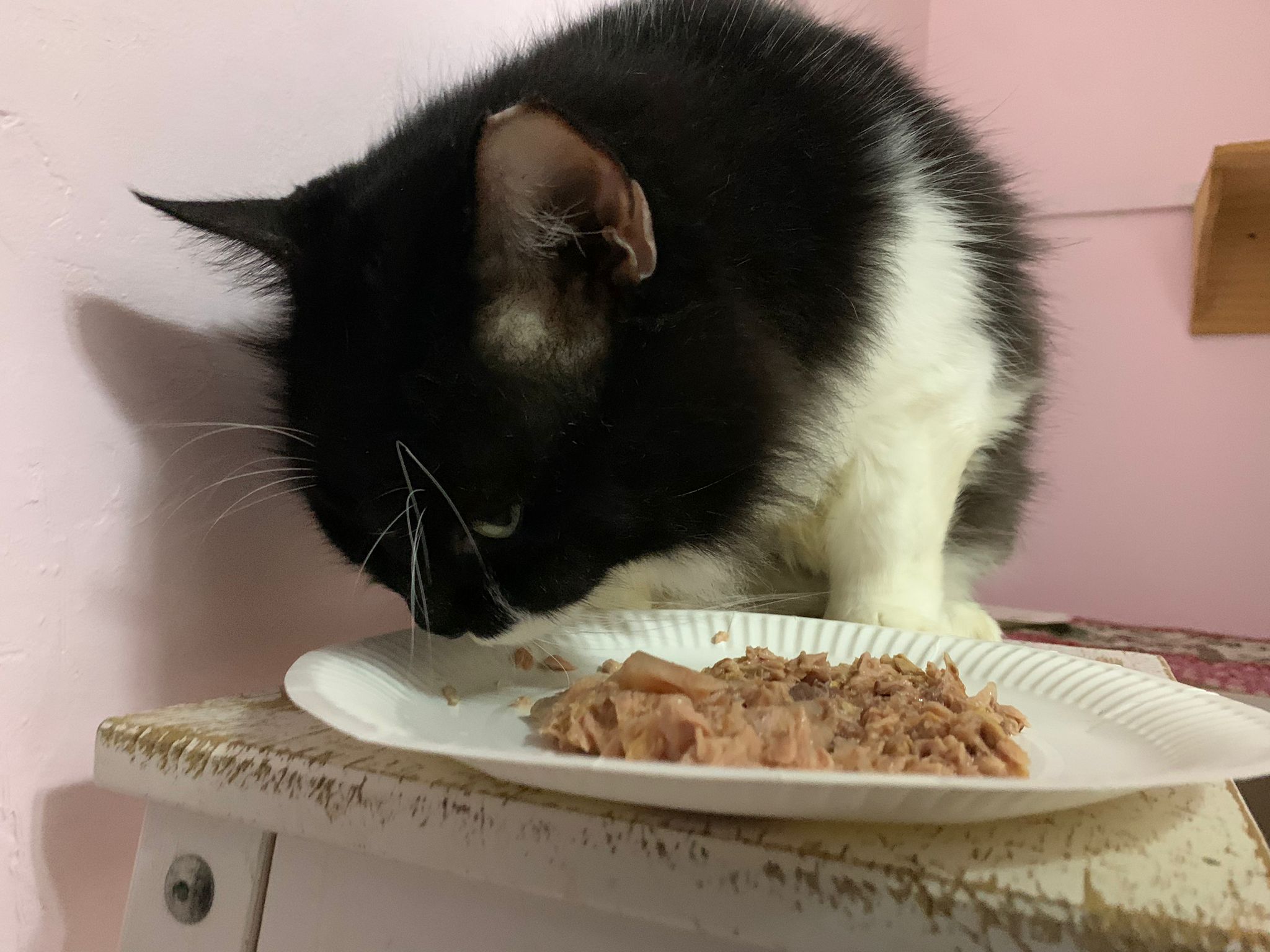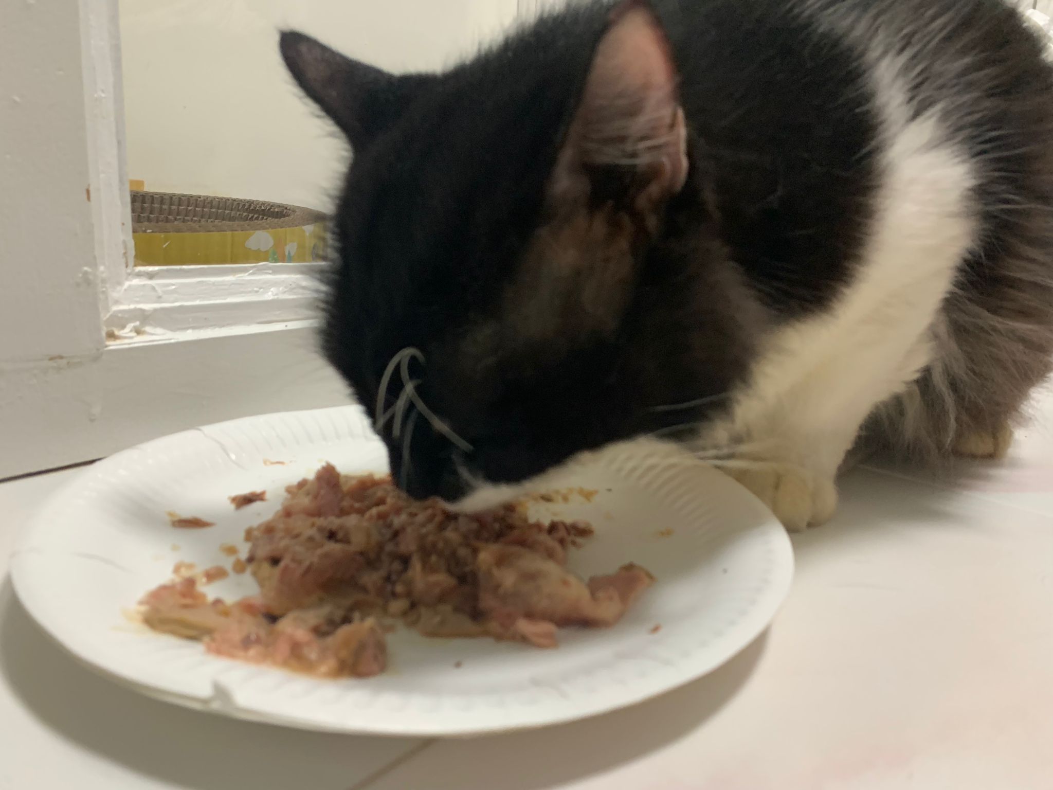 Serve another can of tuna w salmon – he eat.