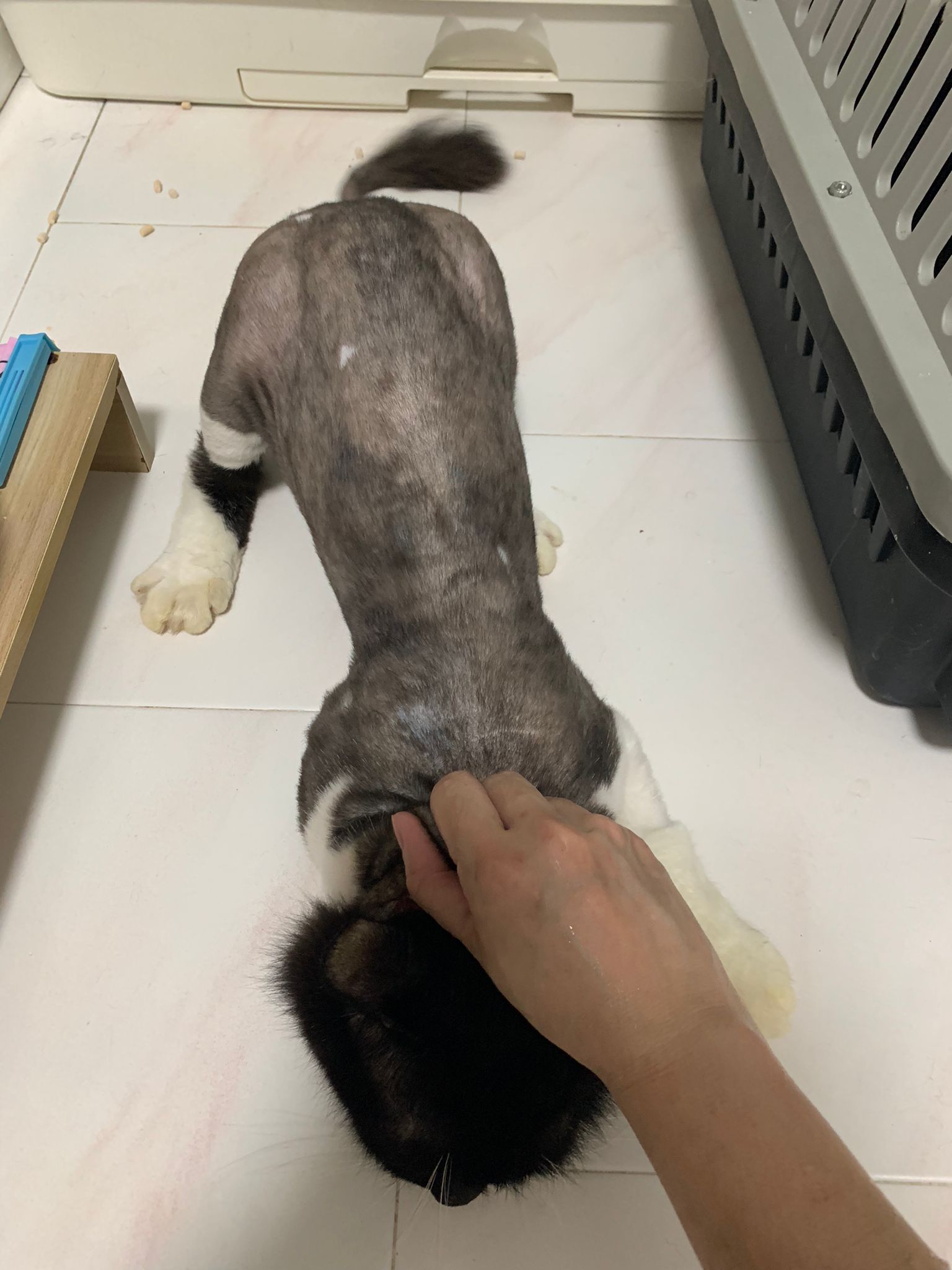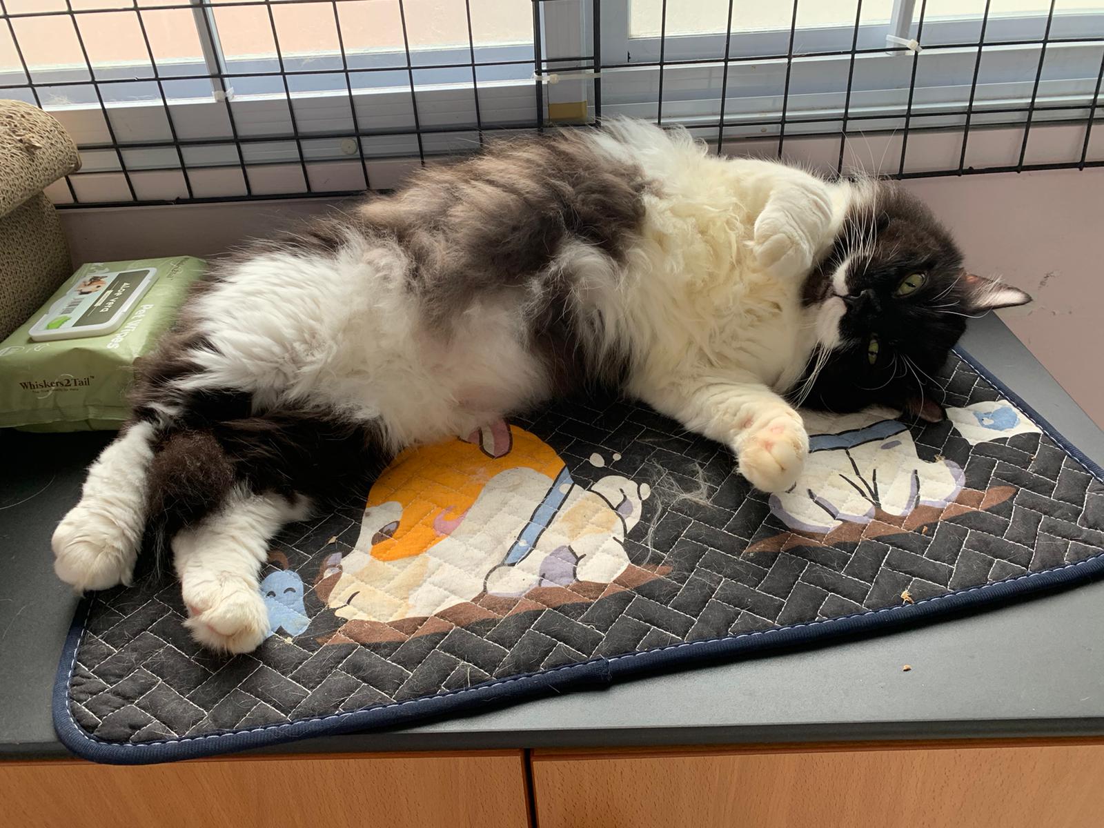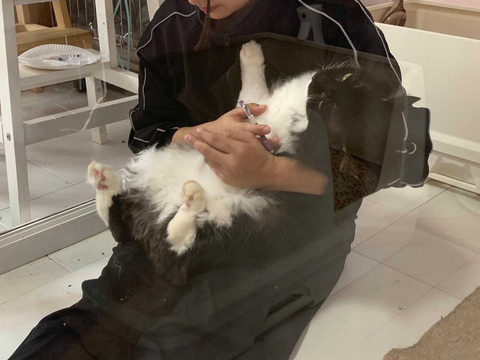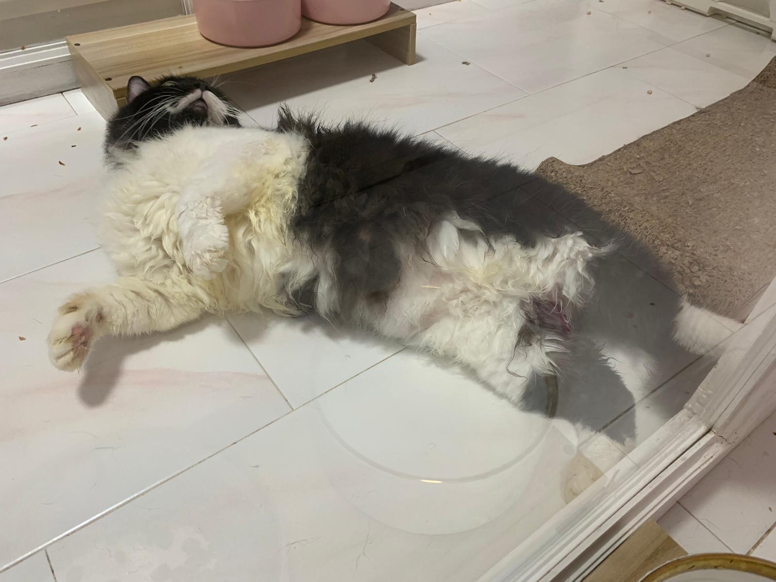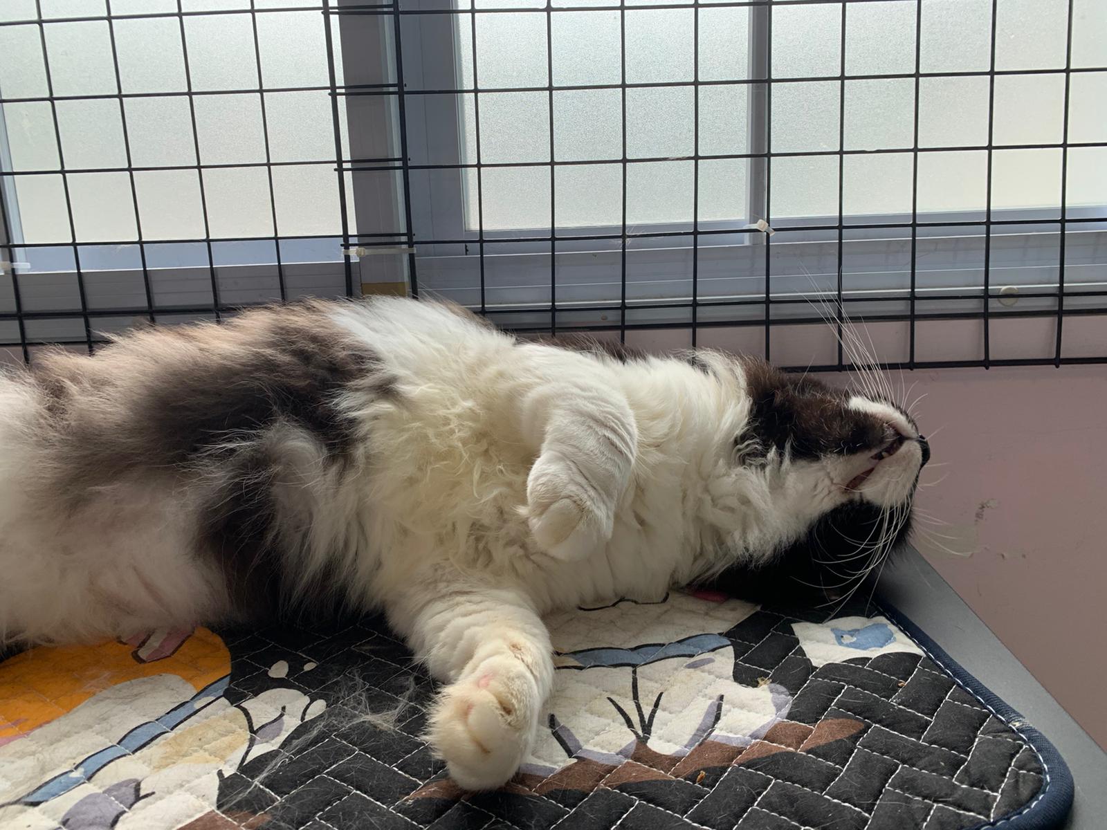 Today I let him roam whole day. I still want to catch his poo to send out for testing sooooo stay overnight in room B. I weigh him n I forgot the weight ha I’m brain dead tired, but I think he gain lots of weight / muscle. Ha without the fur still heavier. wound didn’t heal as well as I thought it would, no choice felv is like that. The final part takes long.