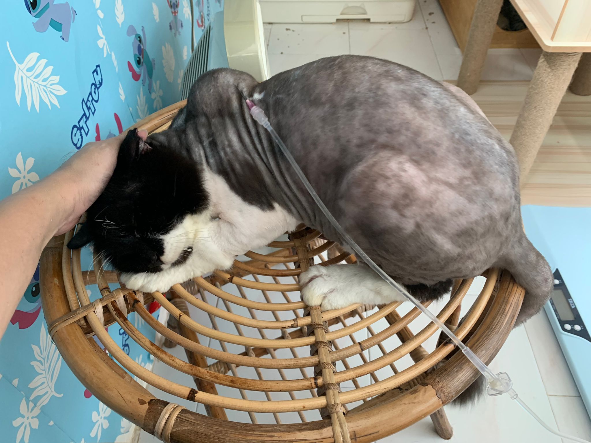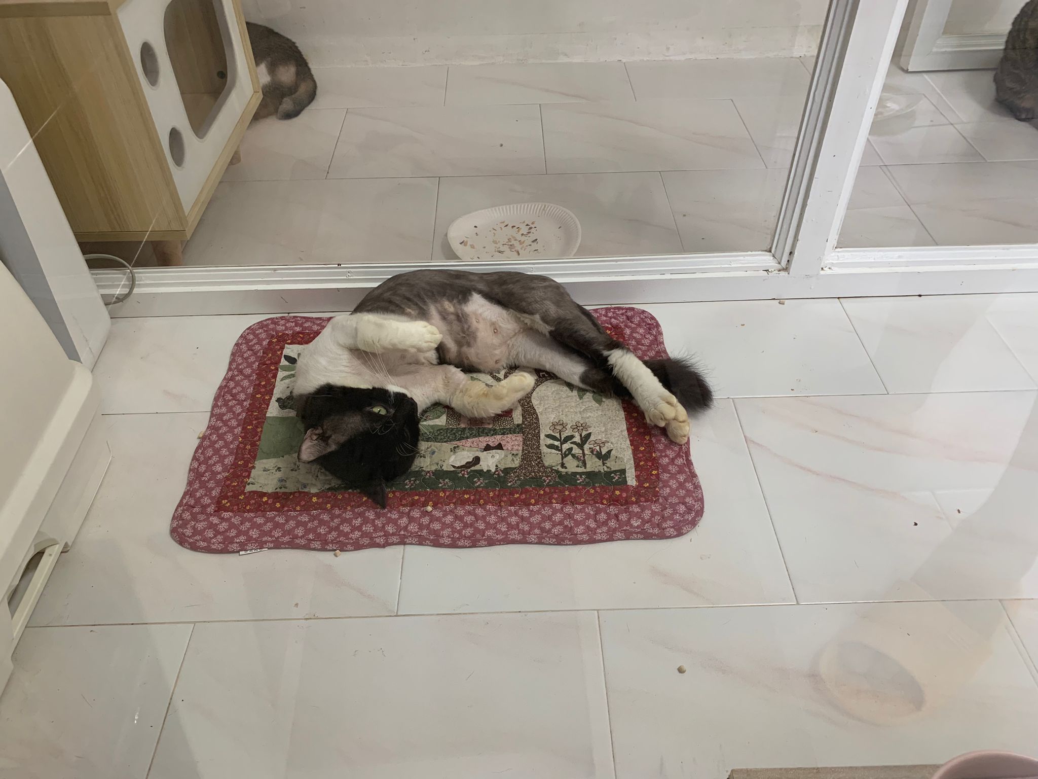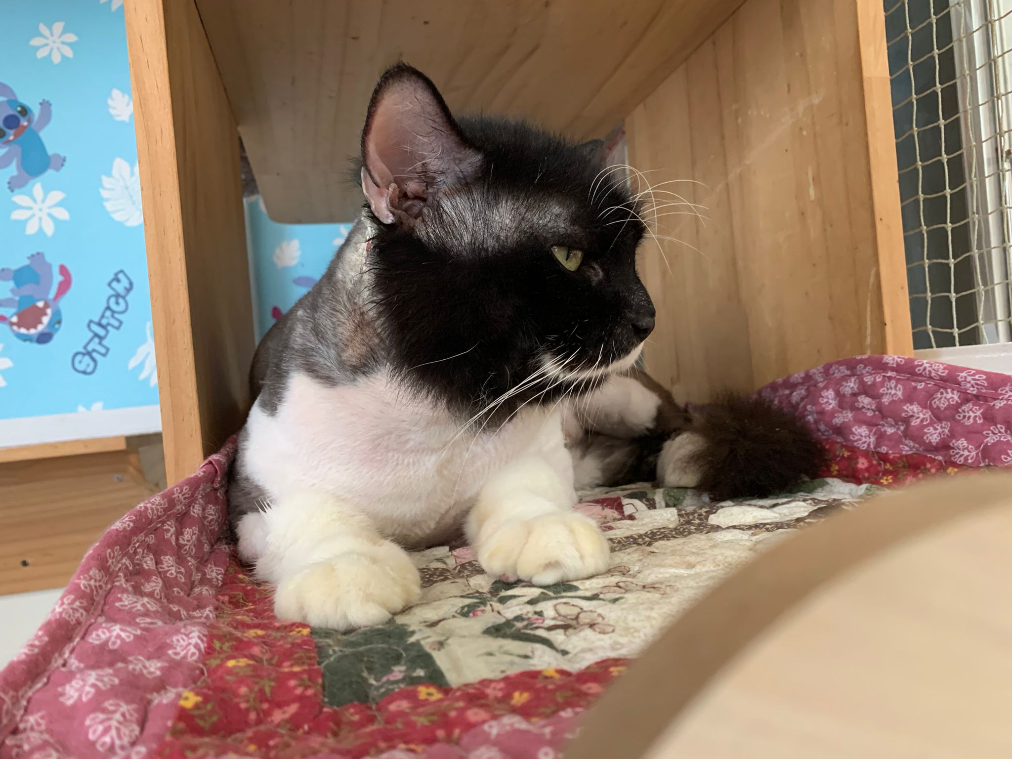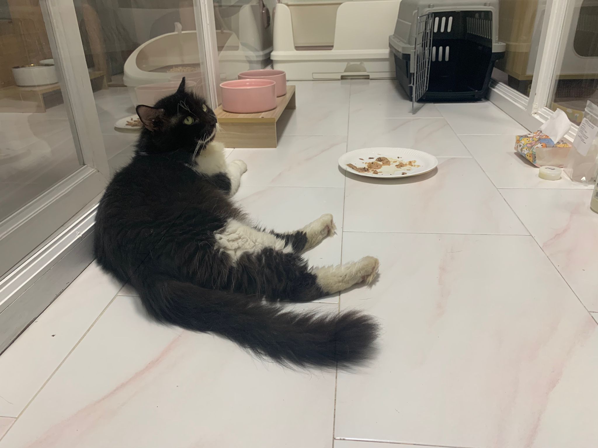 Today I let him roam whole day. I still want to catch his poo to send out for testing sooooo stay overnight in room B. I weigh him n I forgot the weight ha I’m brain dead tired, but I think he gain lots of weight / muscle. Ha without the fur still heavier. wound didn’t heal as well as I thought it would, no choice felv is like that. The final part takes long.