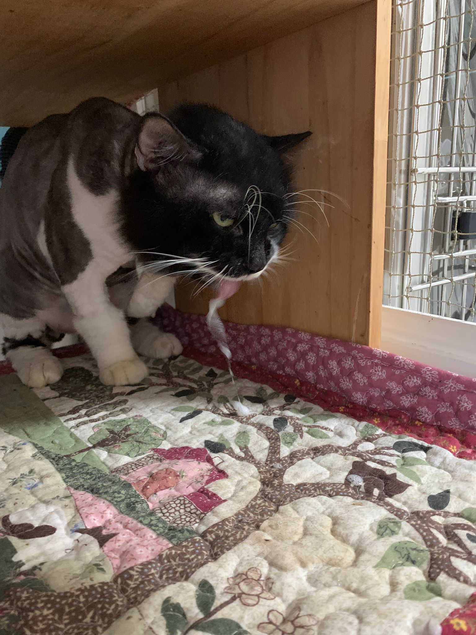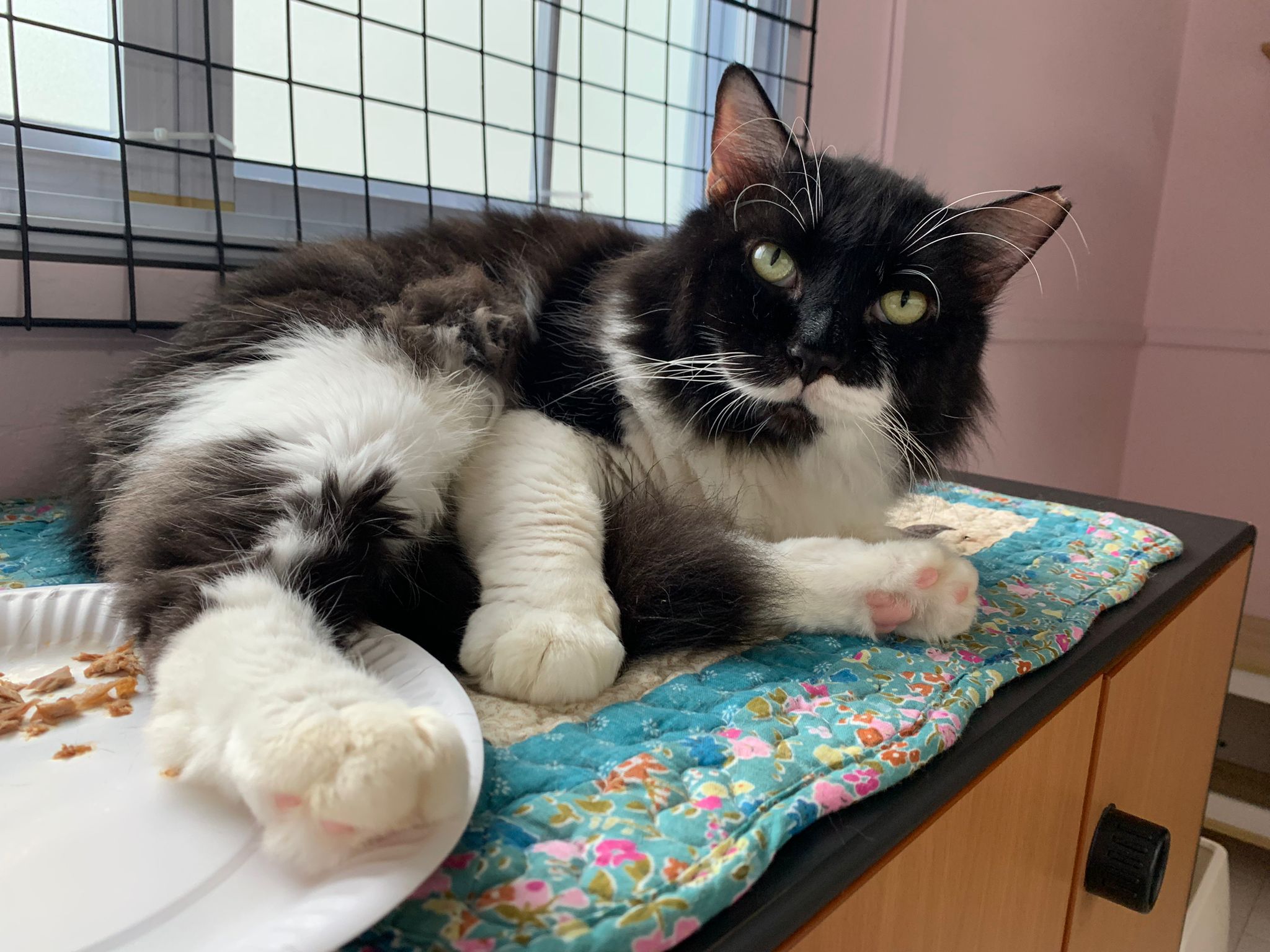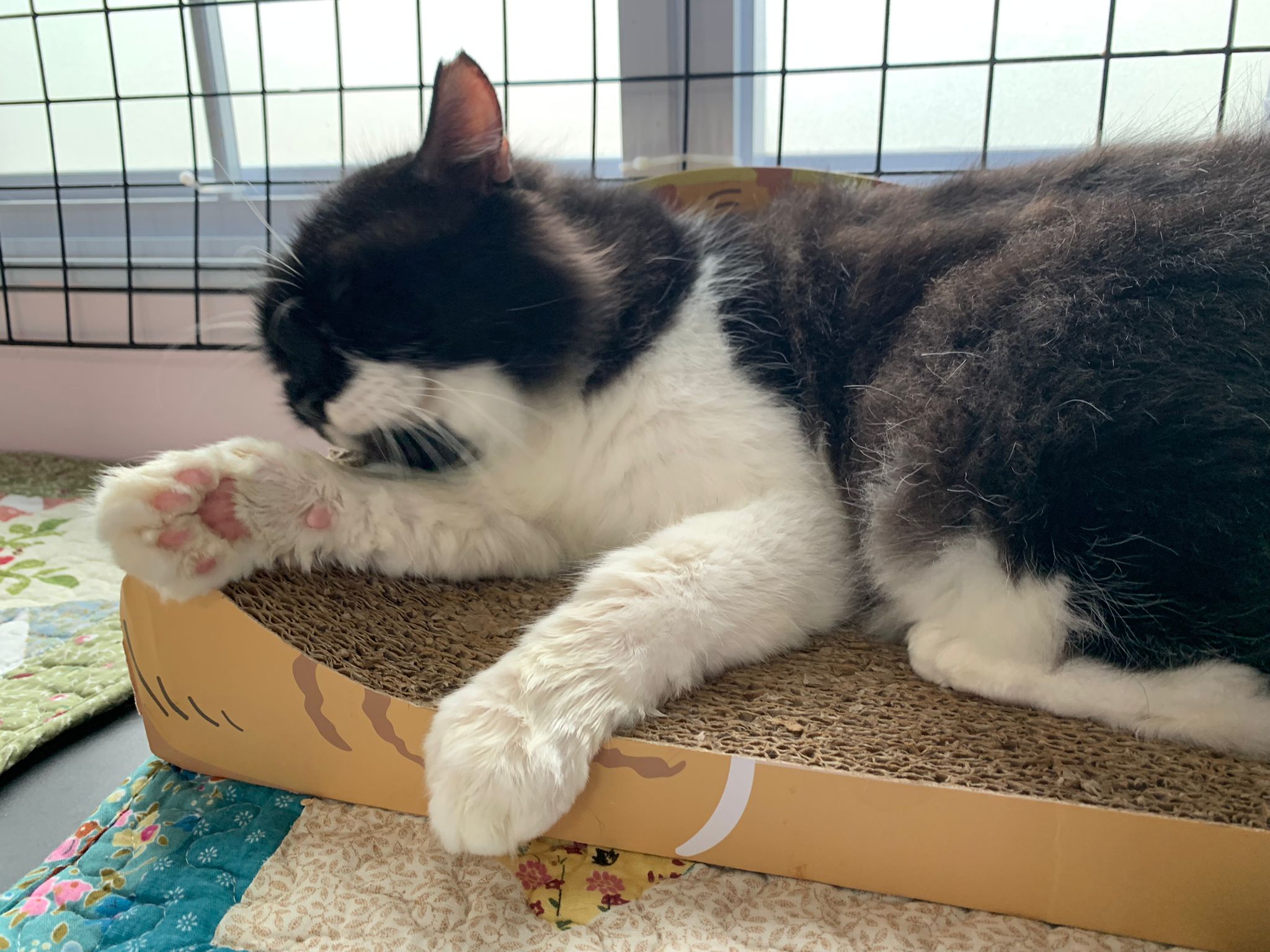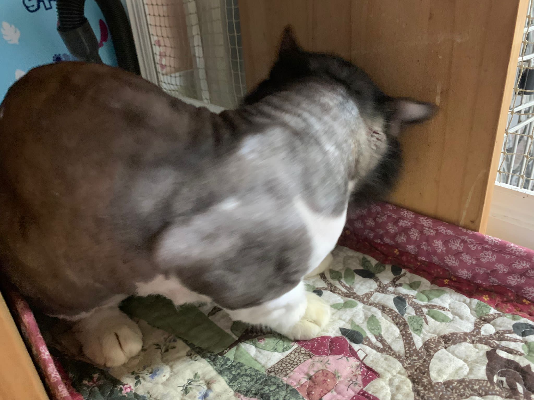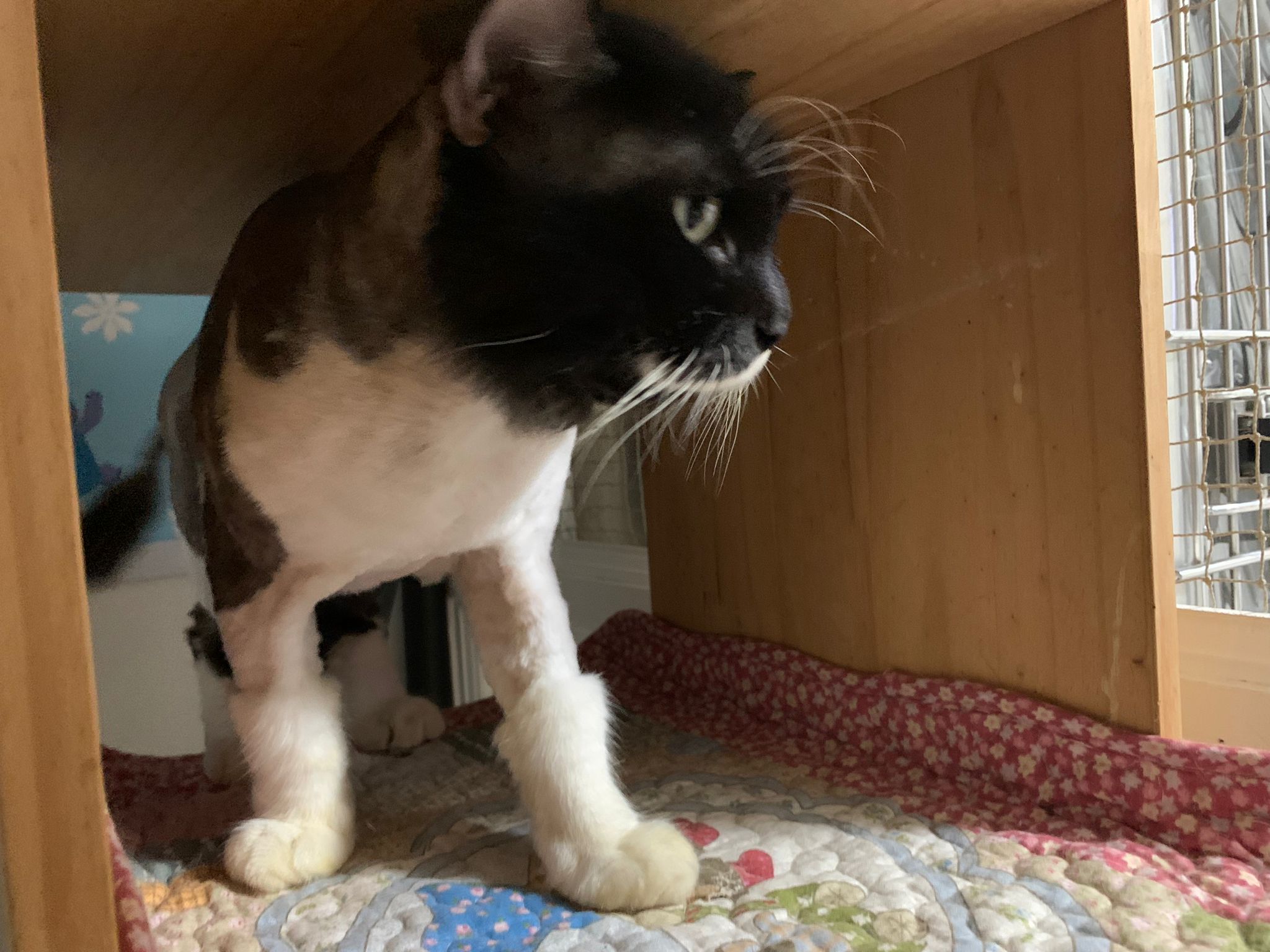 Today I let him roam whole day. I still want to catch his poo to send out for testing sooooo stay overnight in room B. I weigh him n I forgot the weight ha I’m brain dead tired, but I think he gain lots of weight / muscle. Ha without the fur still heavier. wound didn’t heal as well as I thought it would, no choice felv is like that. The final part takes long.