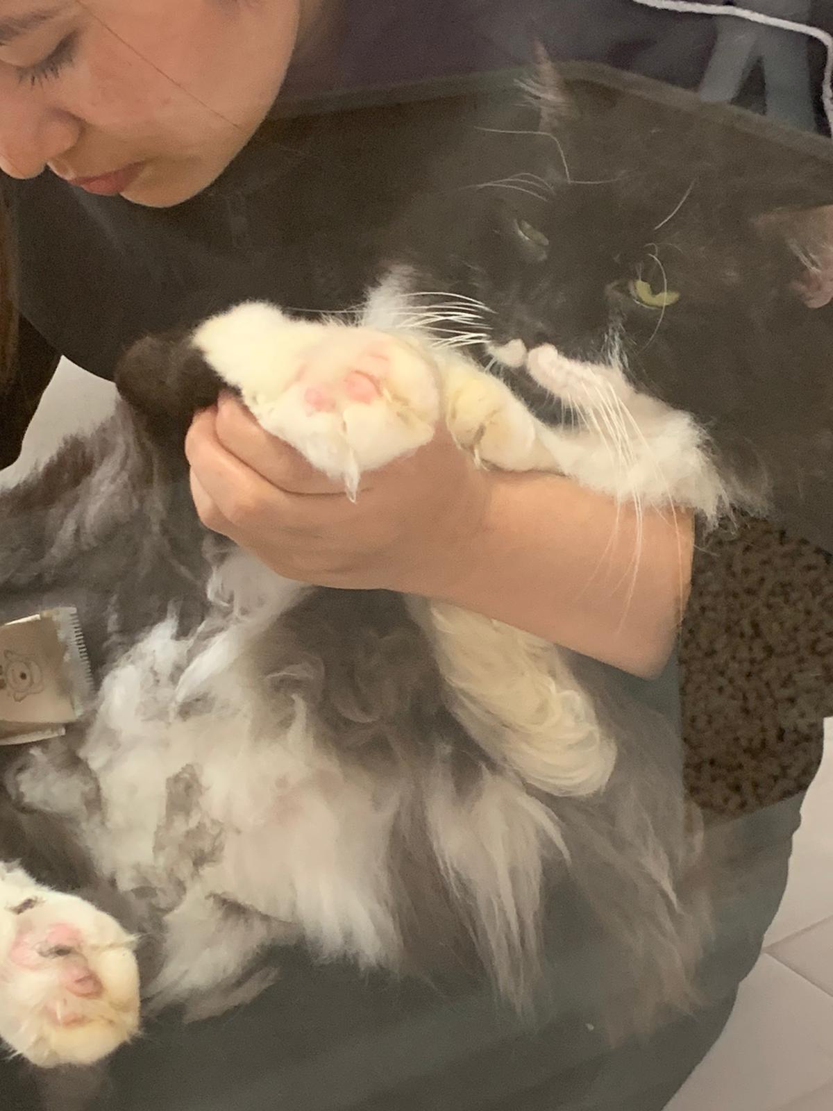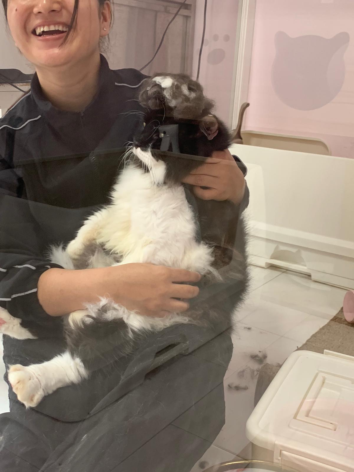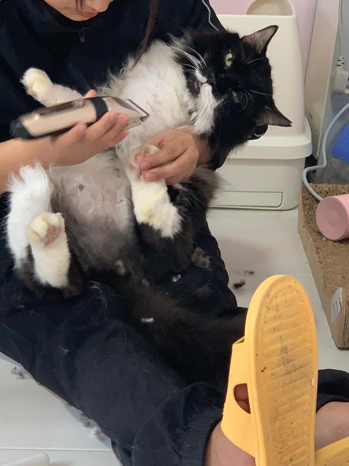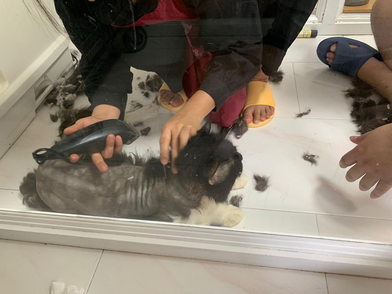 1209pm: haha shaving takes long, lost patient alr. Nip groomer. once n a soft one. Like to run away