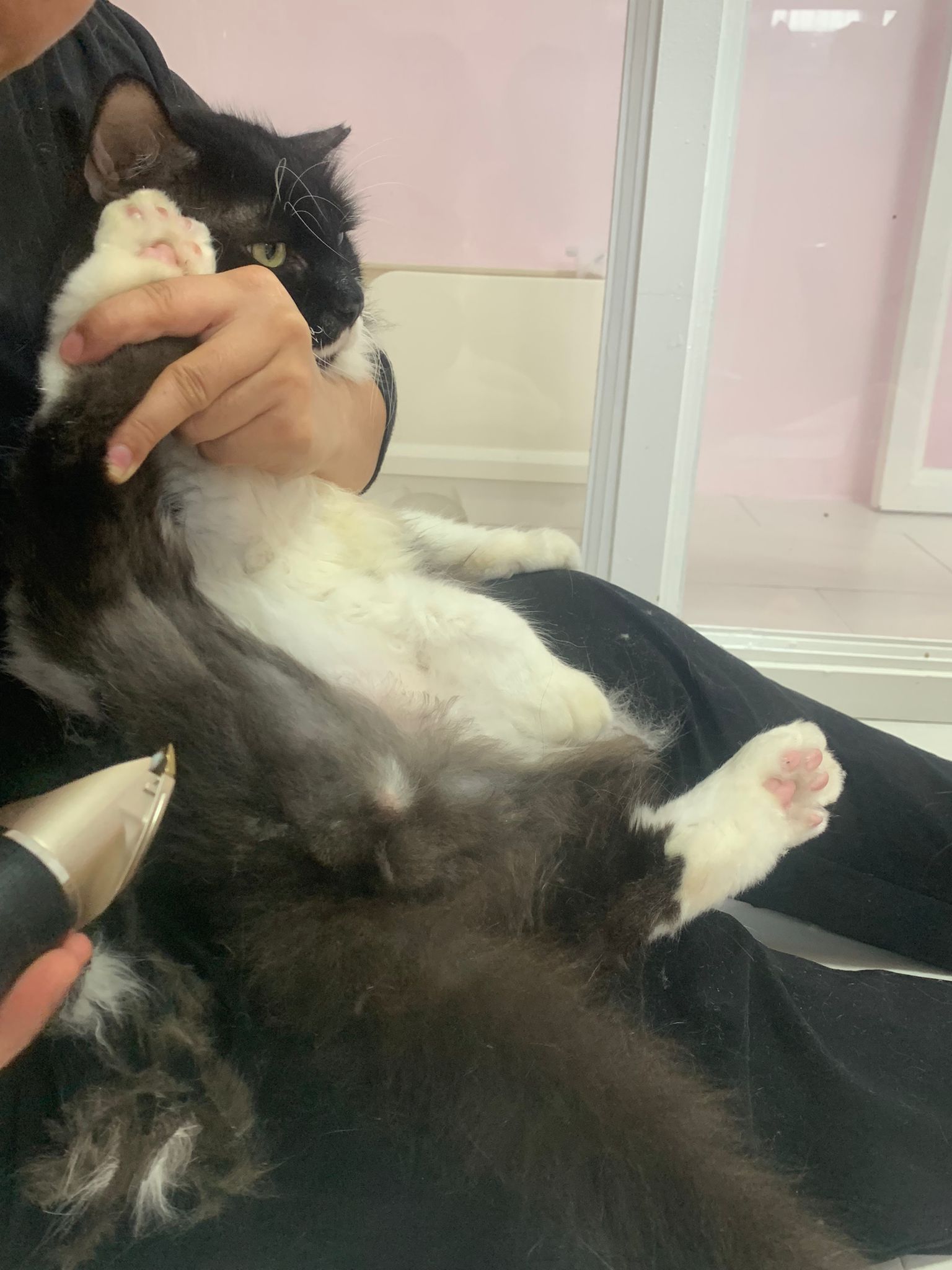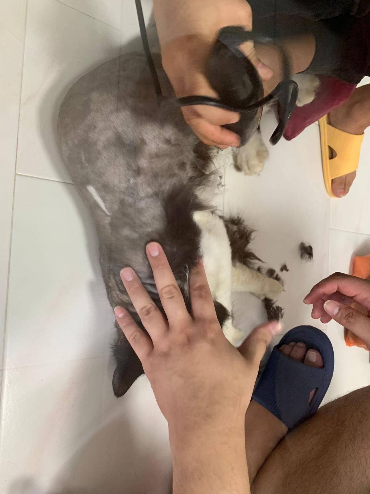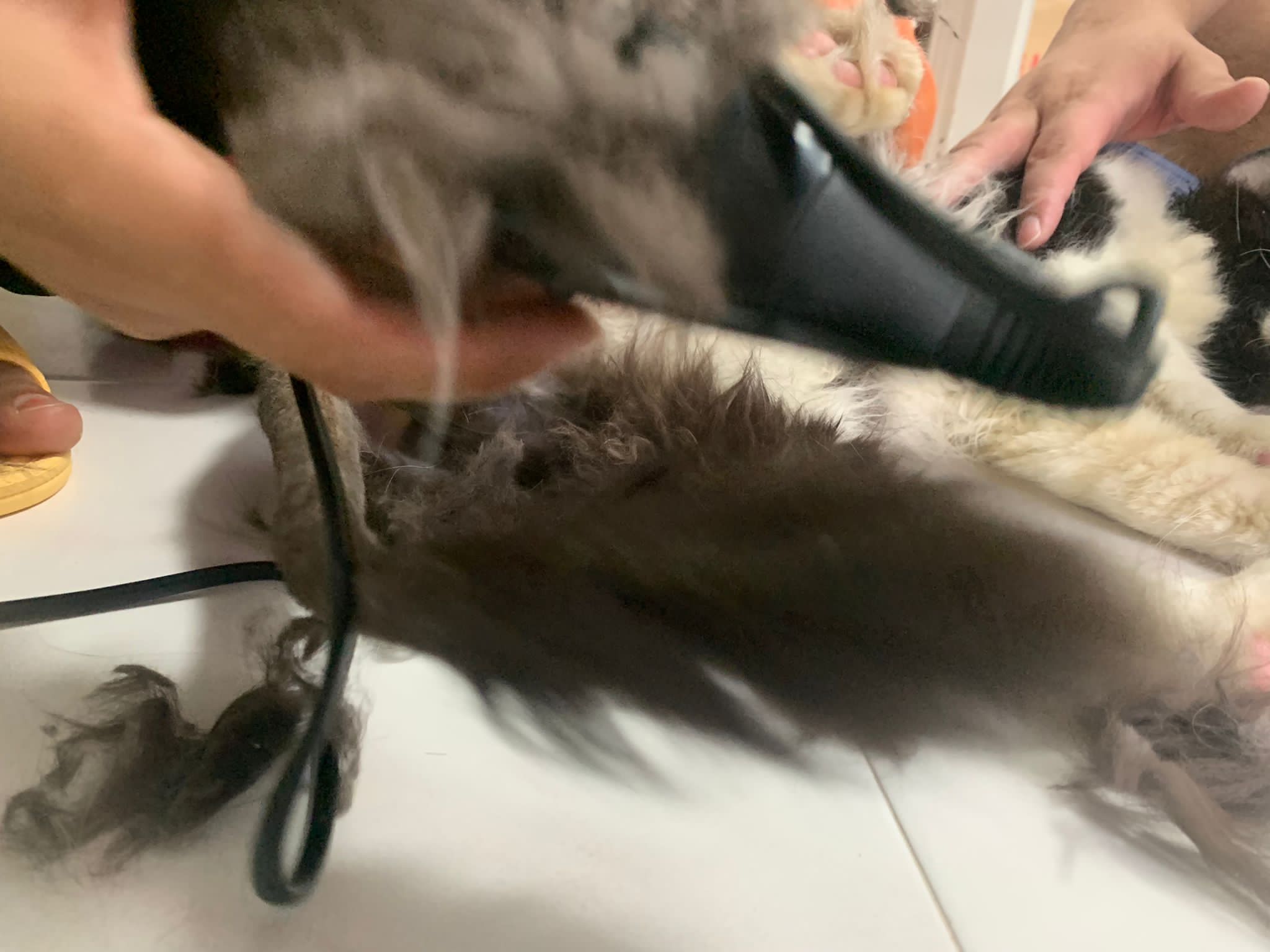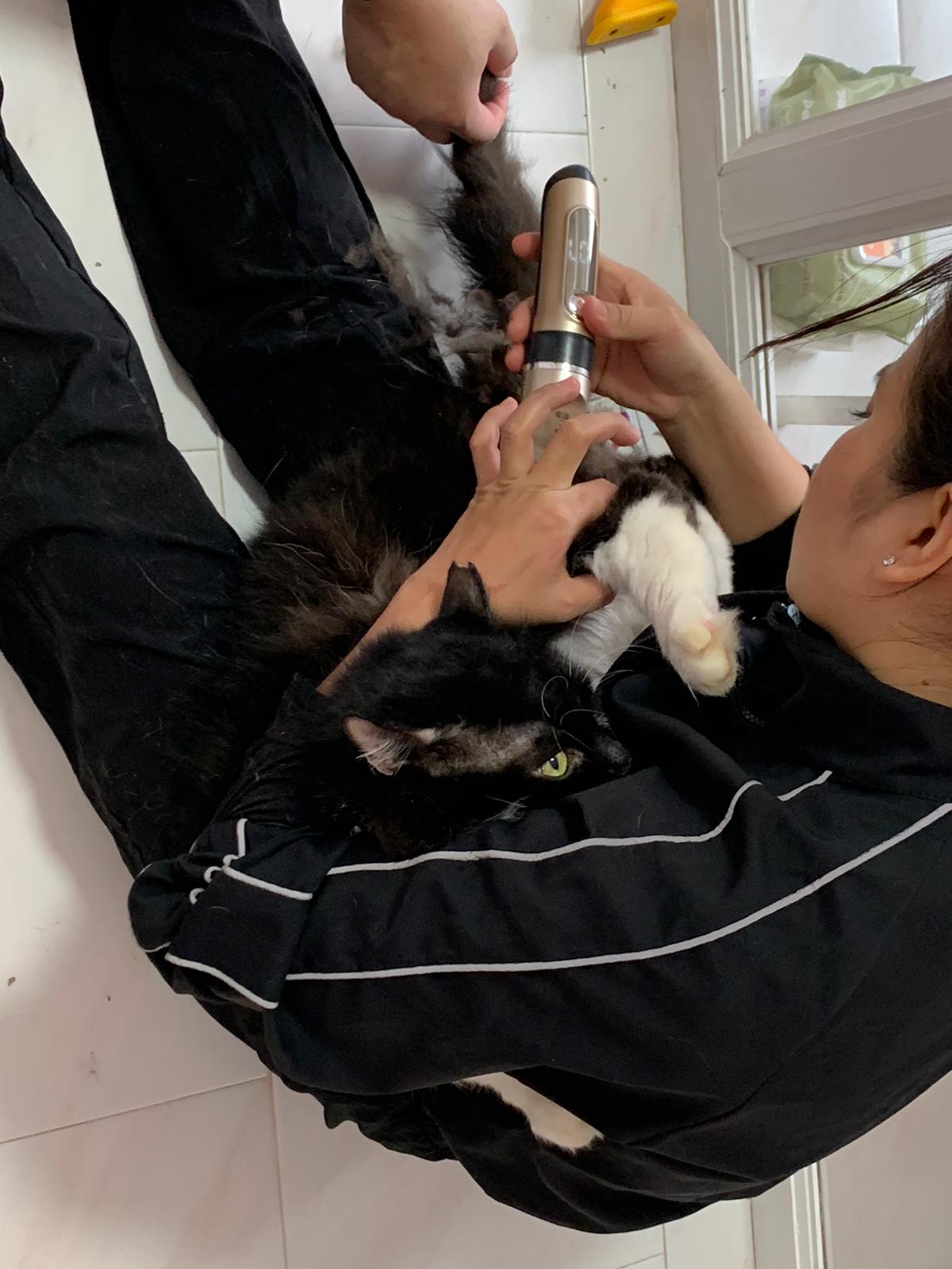 1209pm: haha shaving takes long, lost patient alr. Nip groomer. once n a soft one. Like to run away