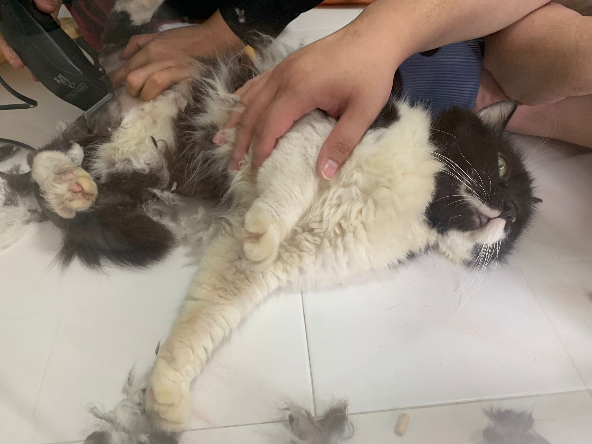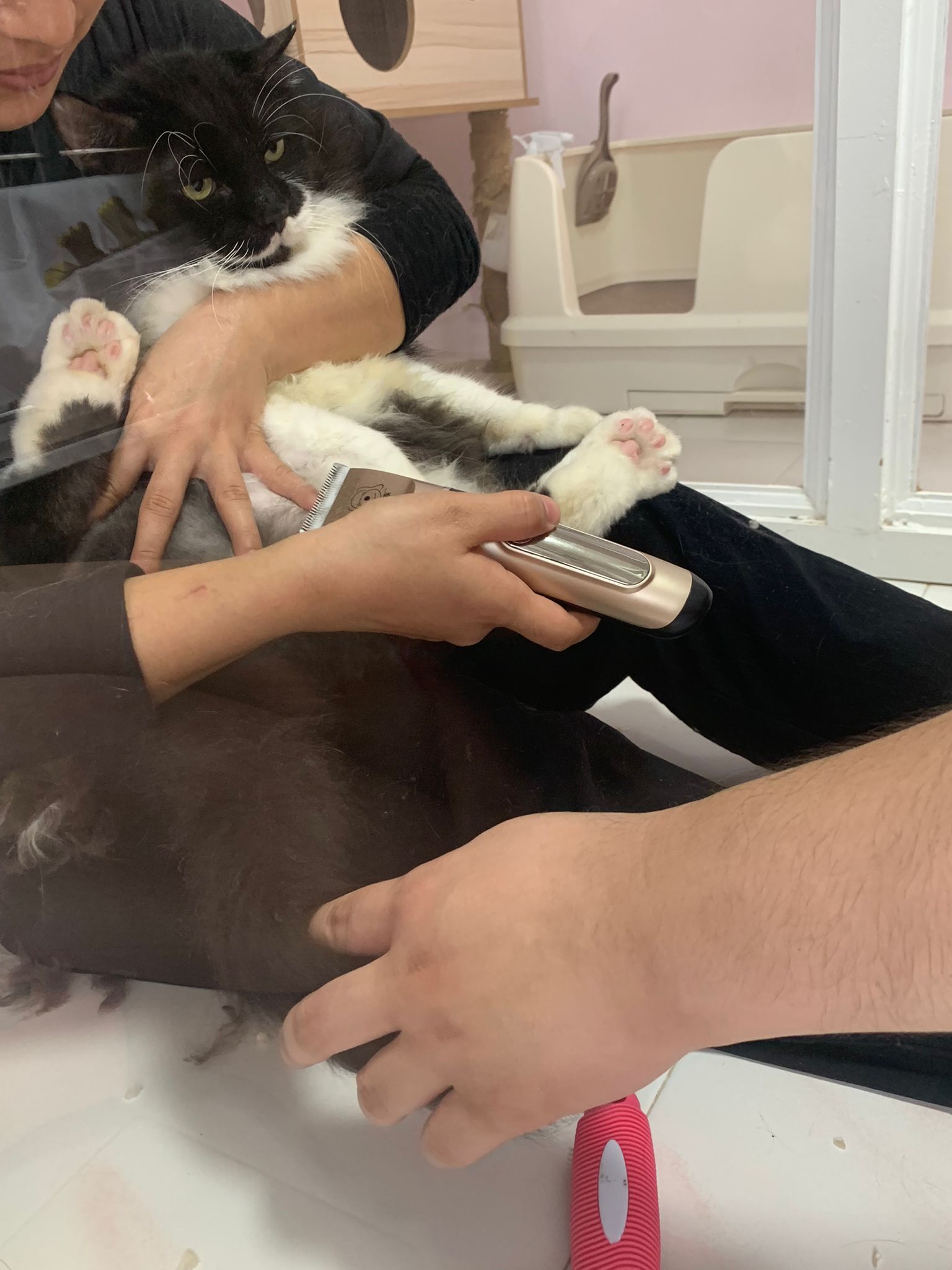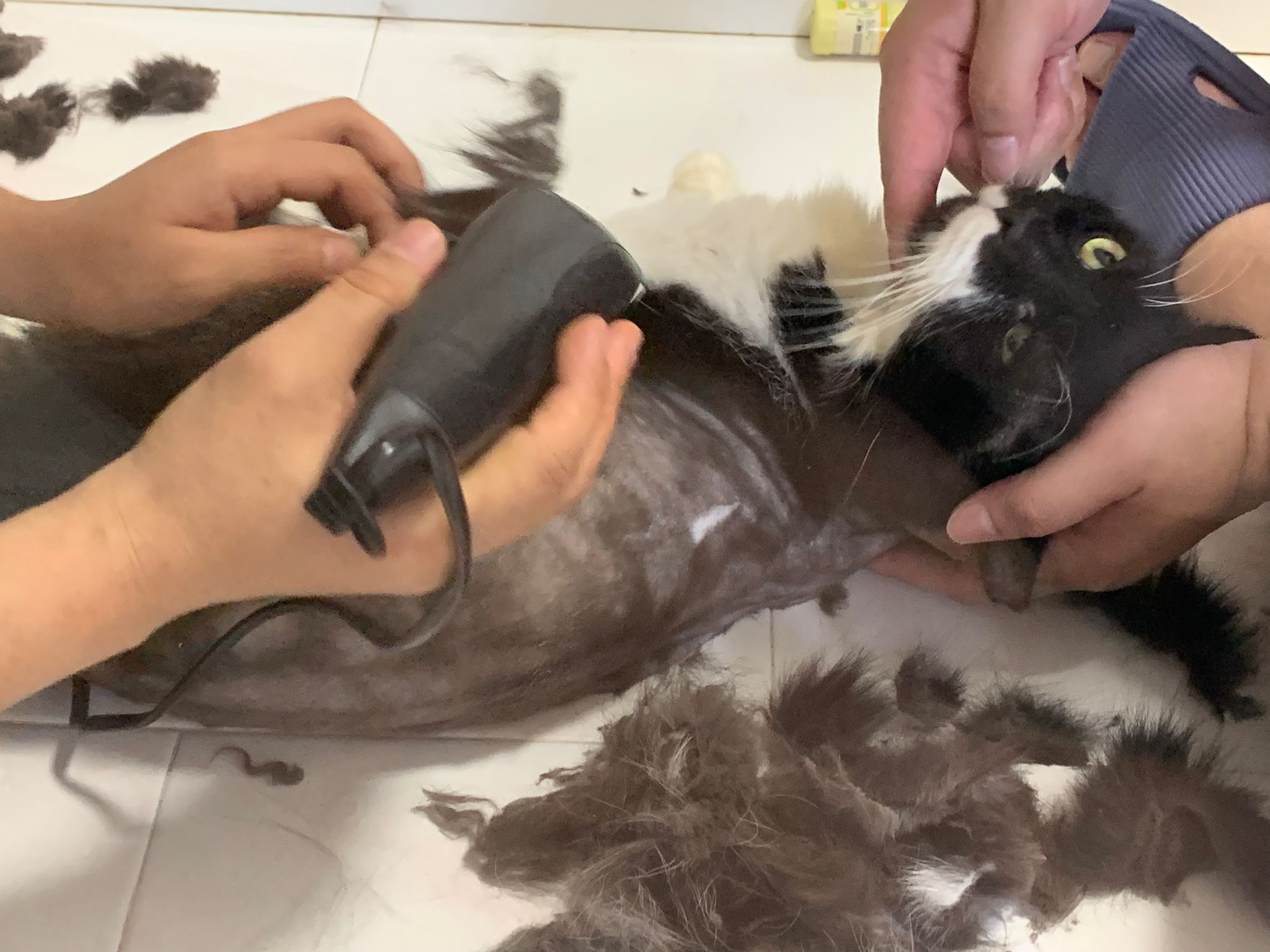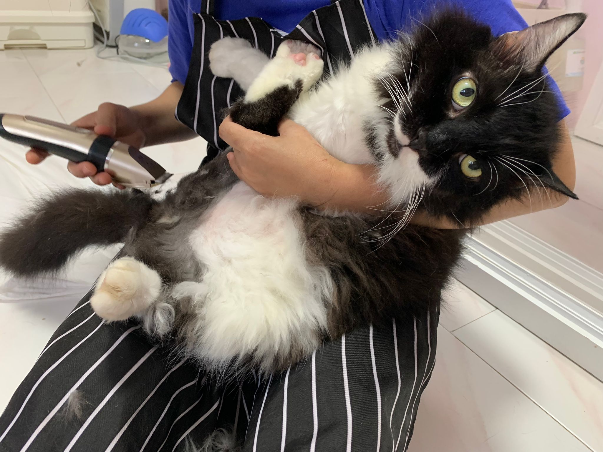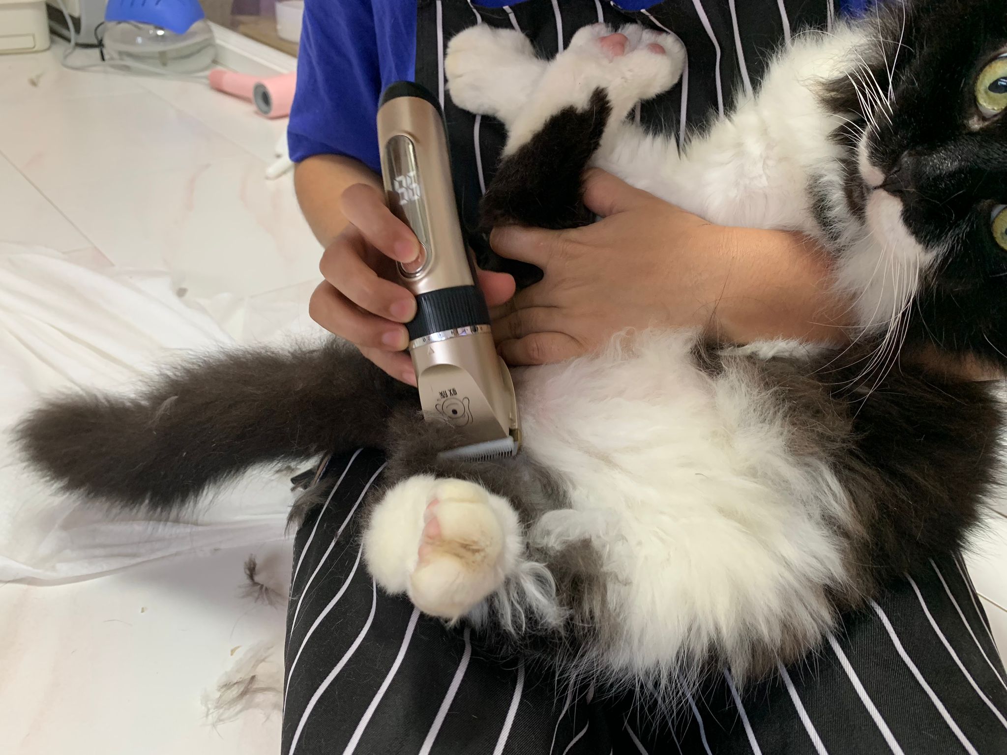 1209pm: haha shaving takes long, lost patient alr. Nip groomer. once n a soft one. Like to run away