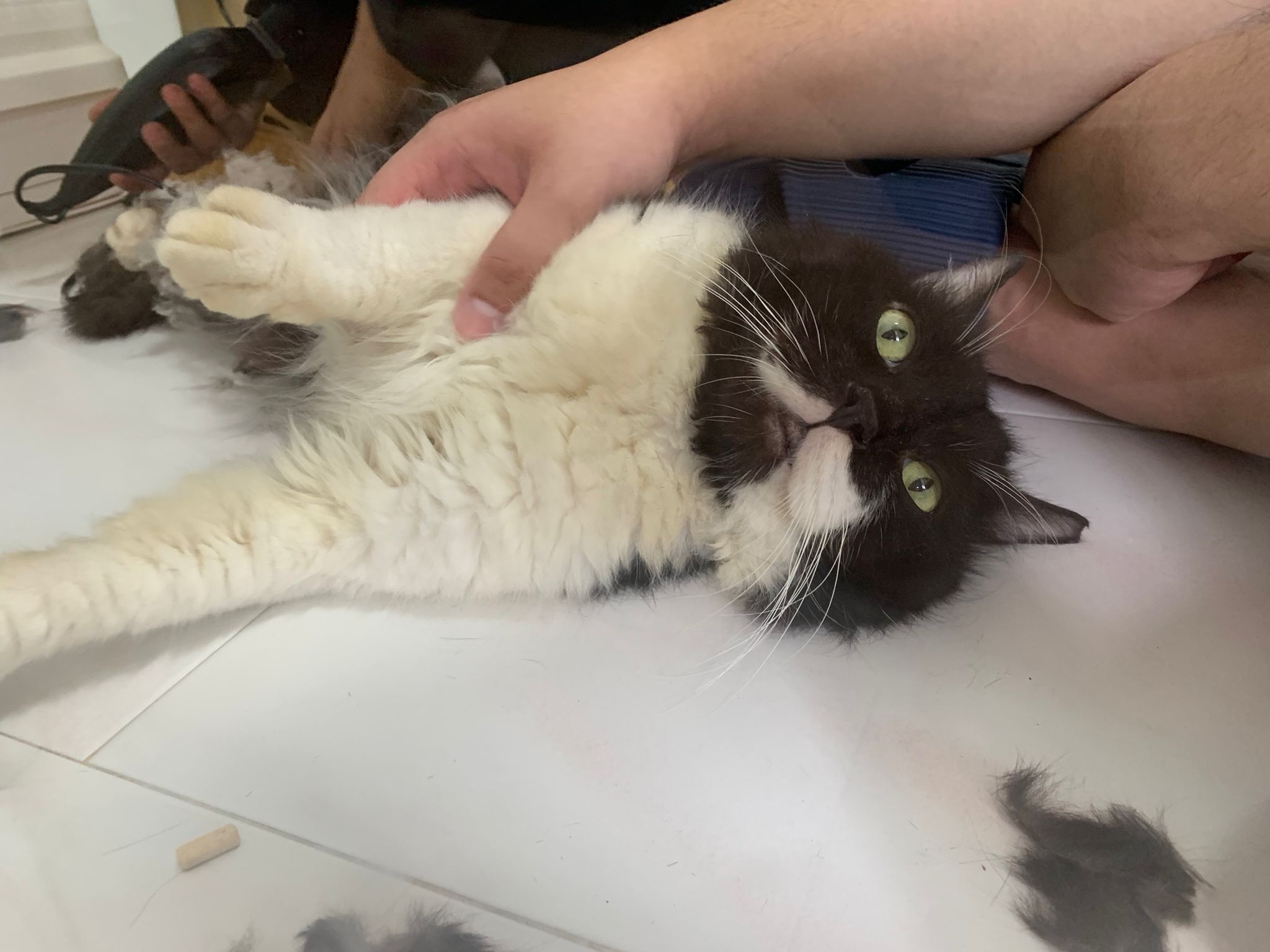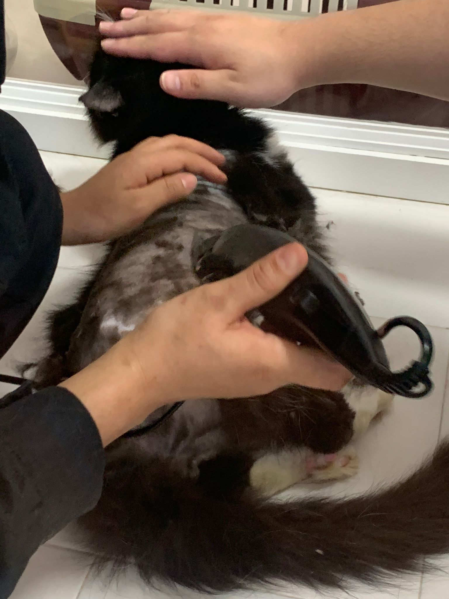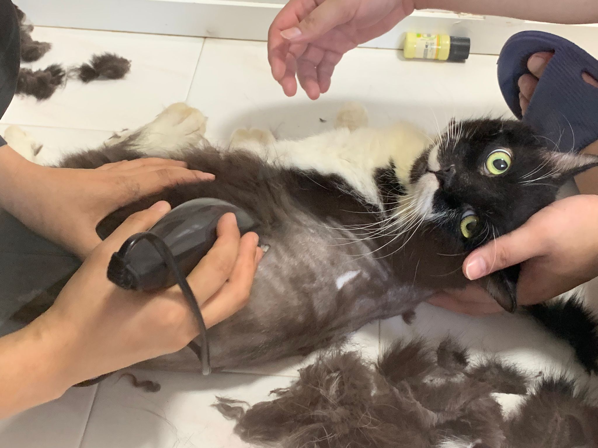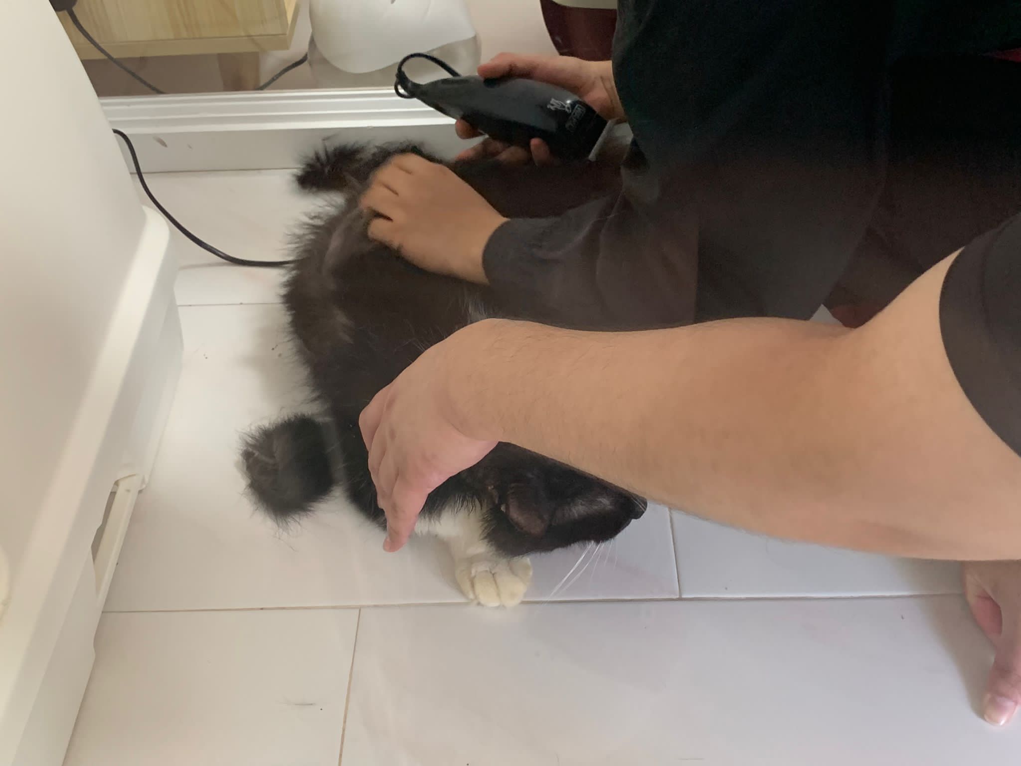 1209pm: haha shaving takes long, lost patient alr. Nip groomer. once n a soft one. Like to run away