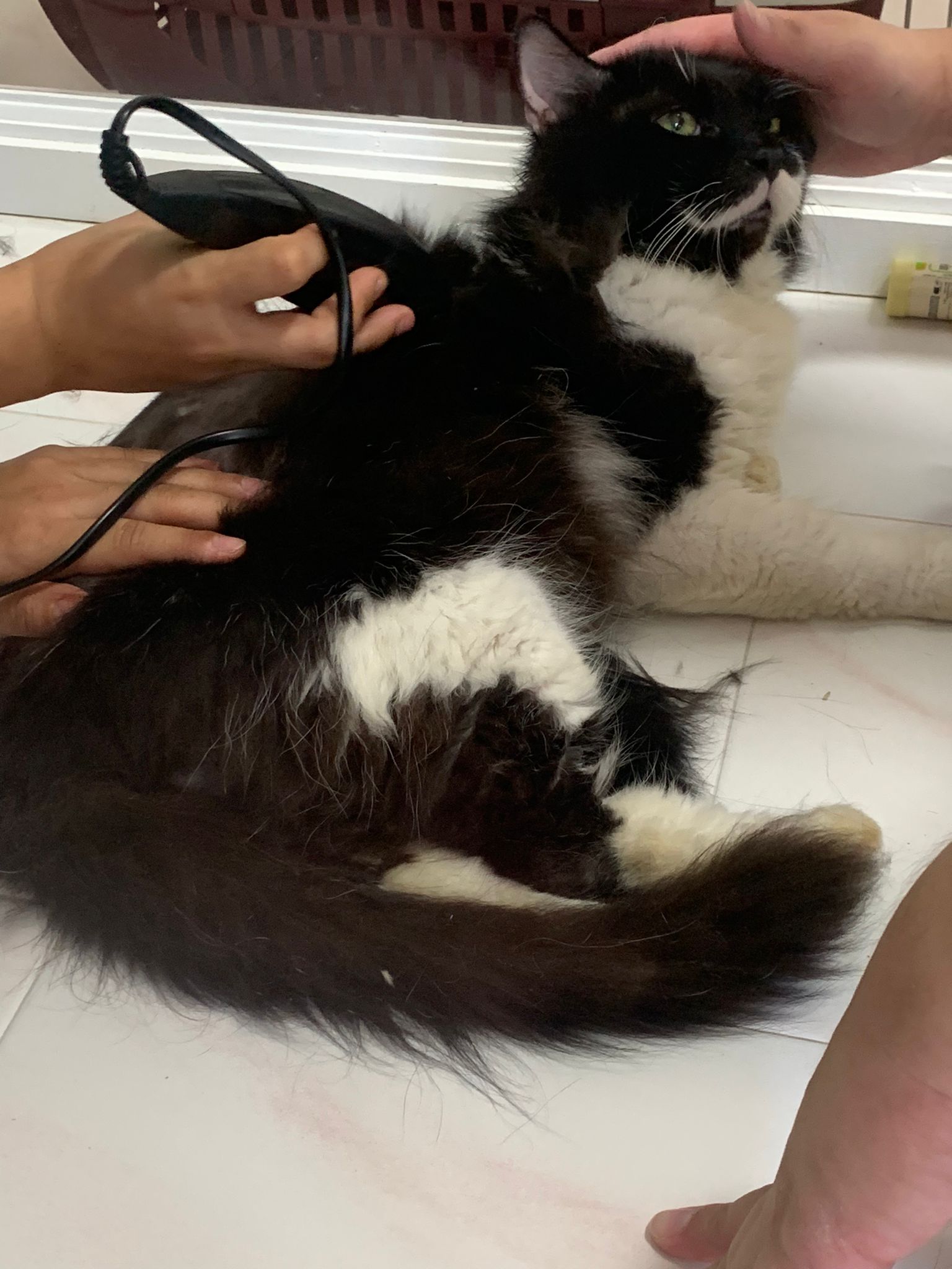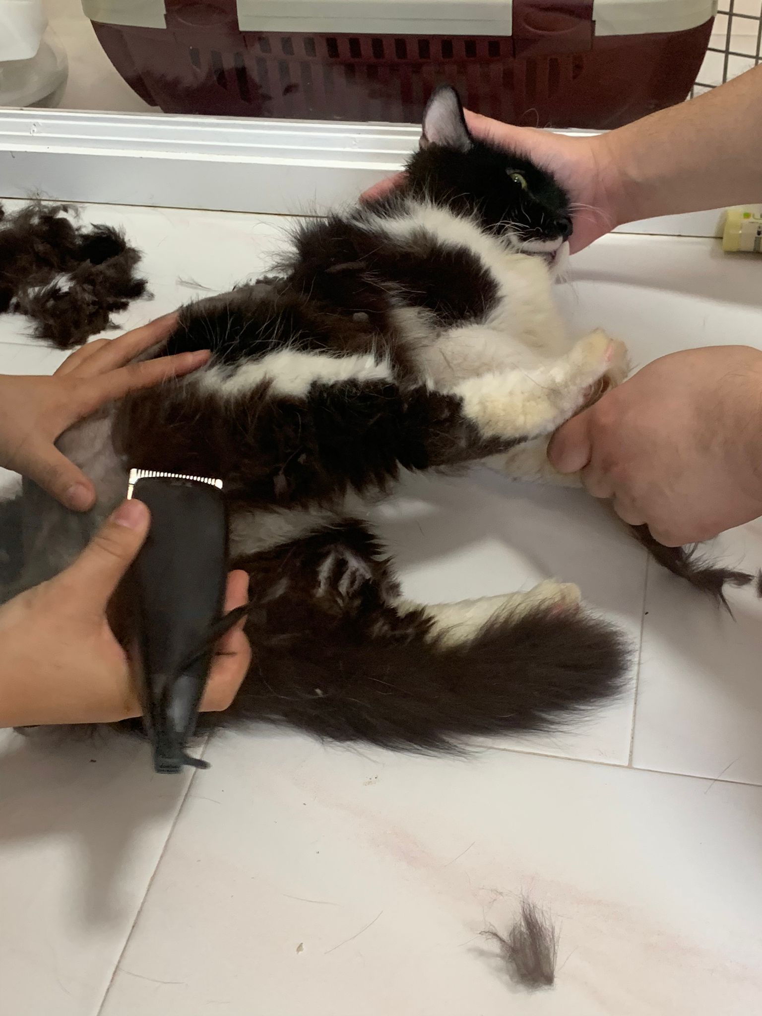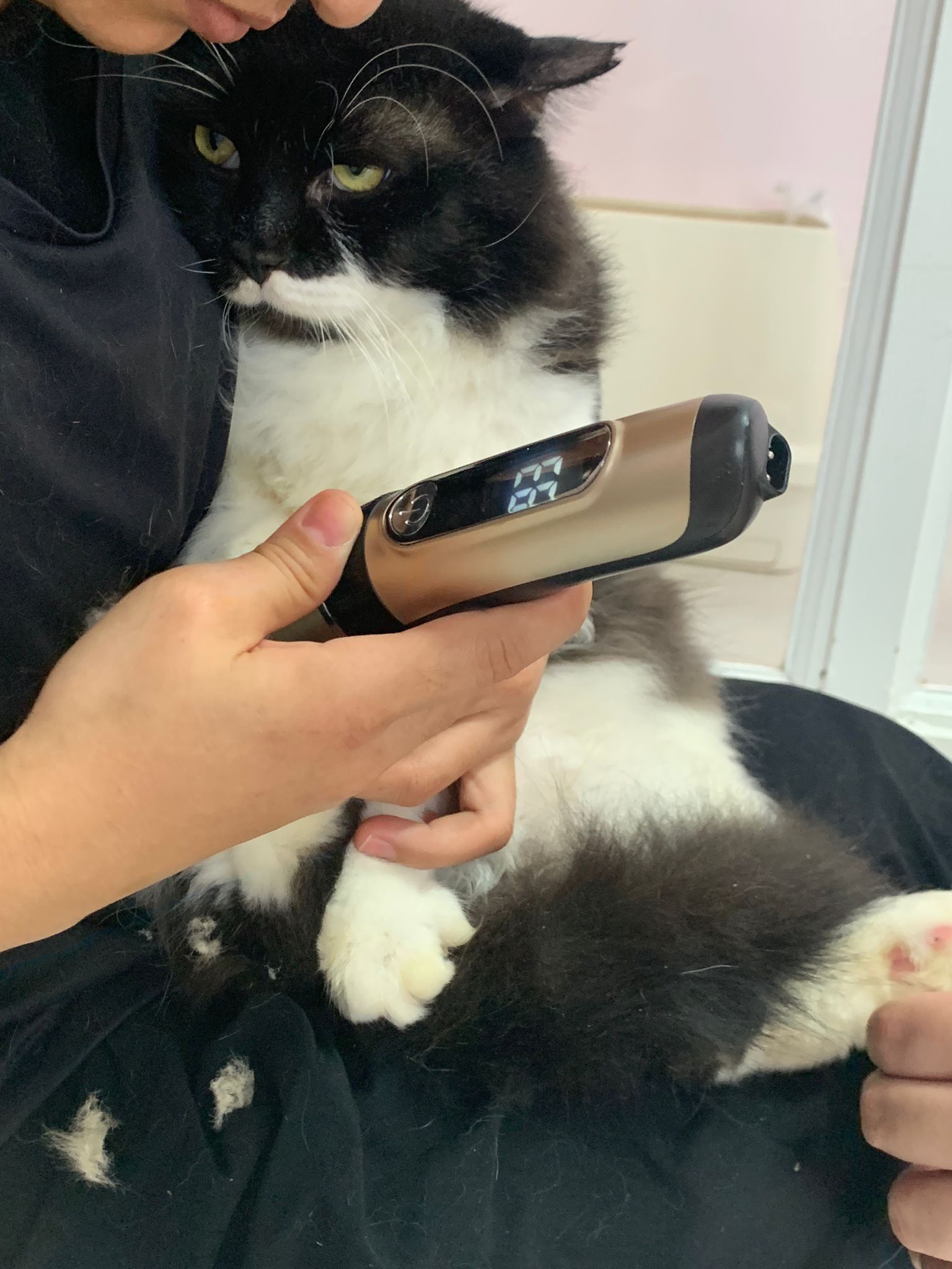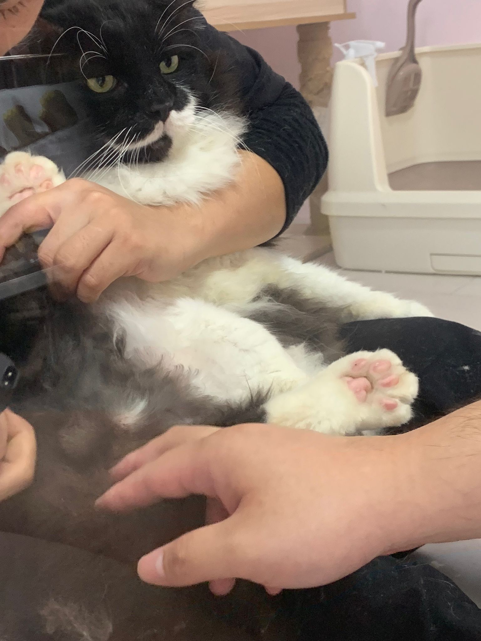 1209pm: haha shaving takes long, lost patient alr. Nip groomer. once n a soft one. Like to run away