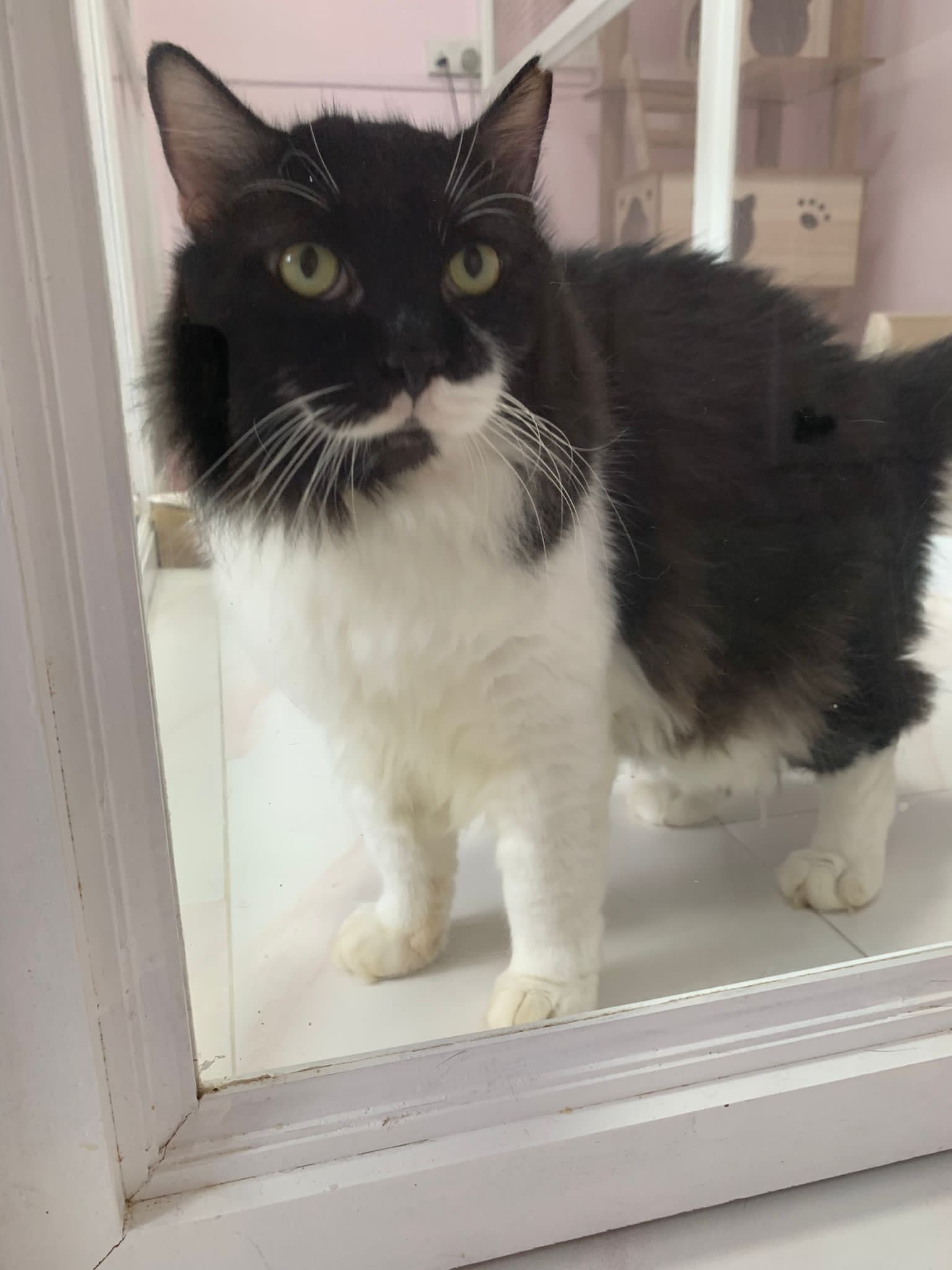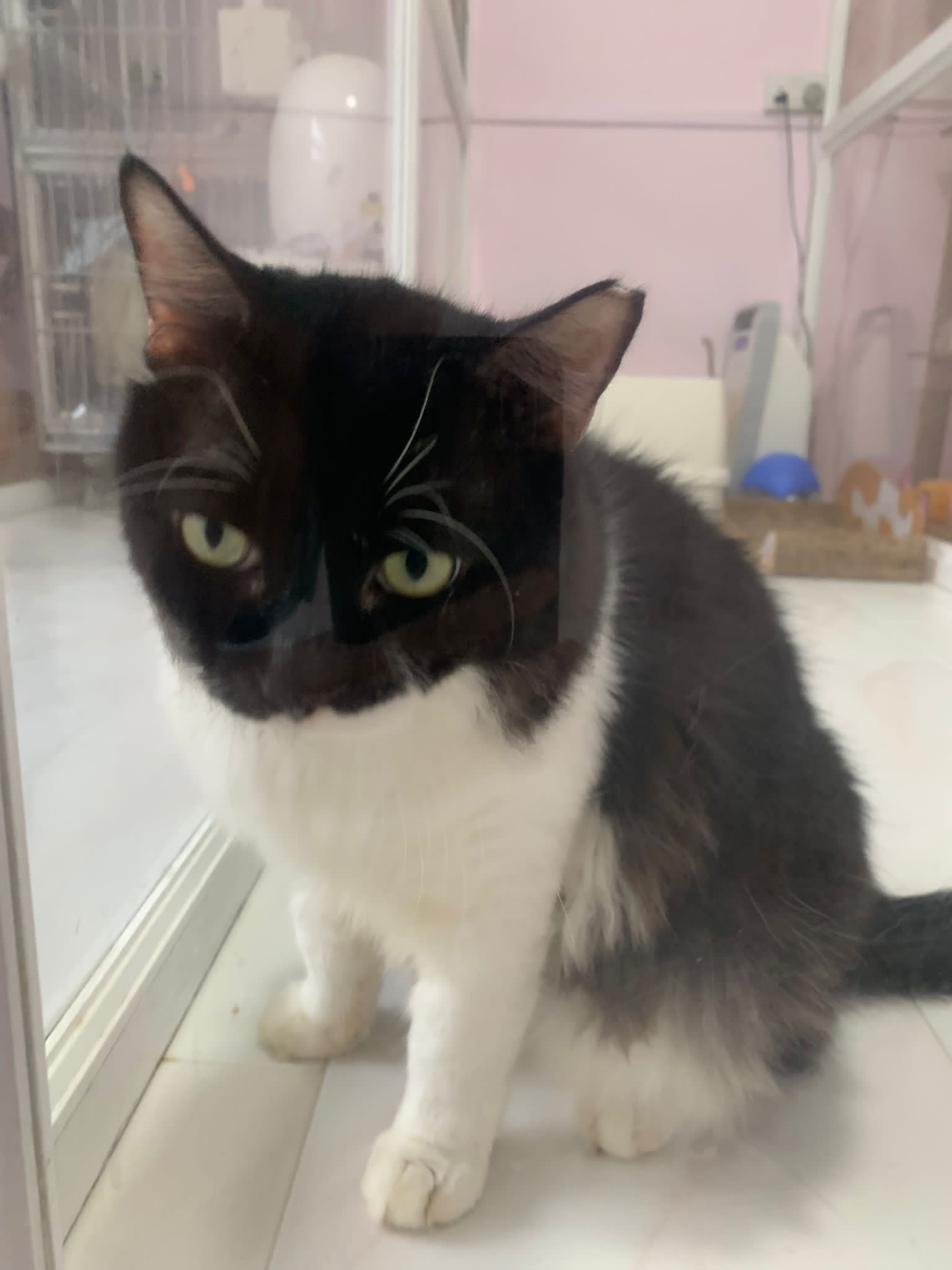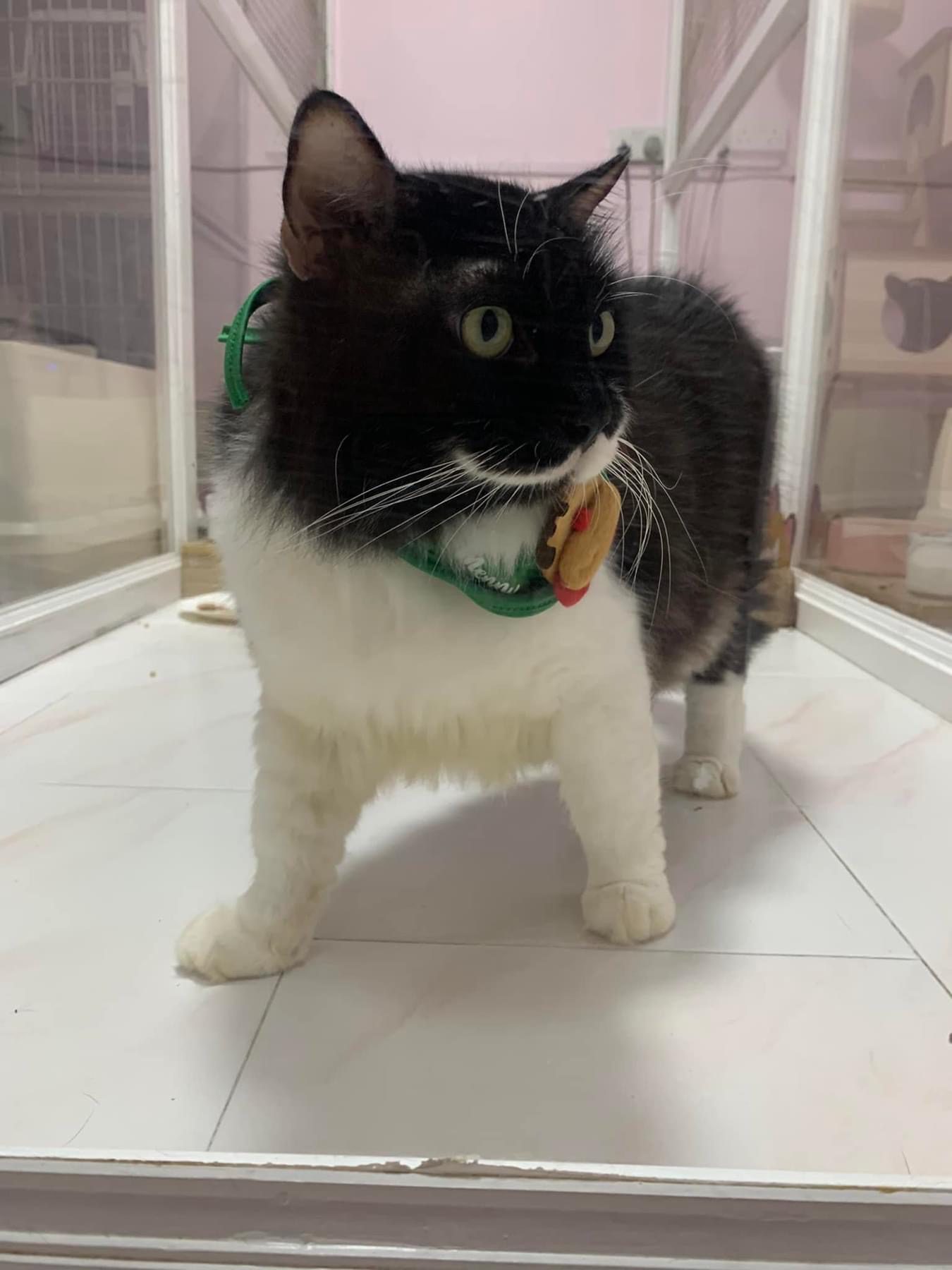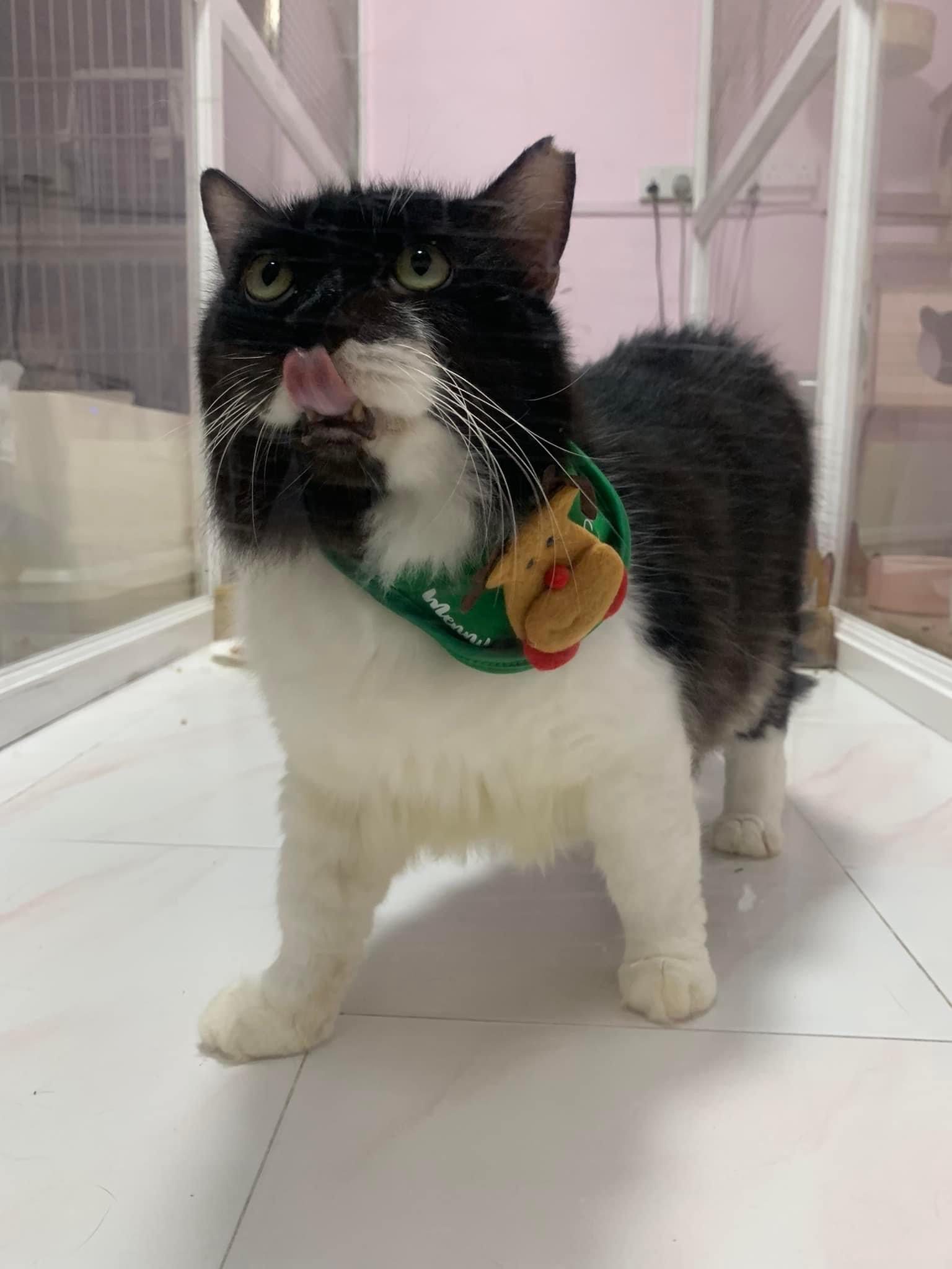 A cat that Amy rescued. open up the option to stay in 猫房 to buy time since he is felv+ cos he need to leave clinic le. so hope he can leave 猫房 asap.