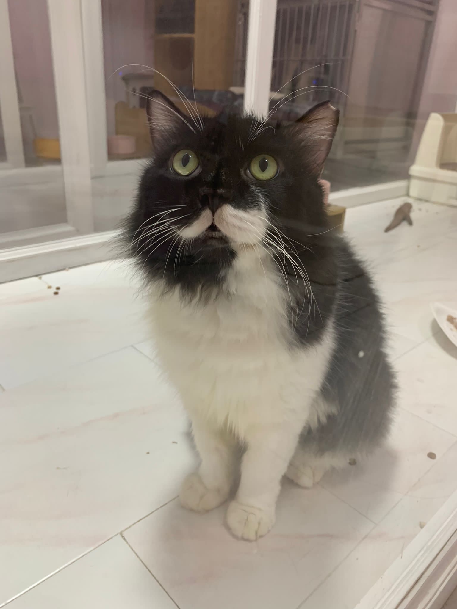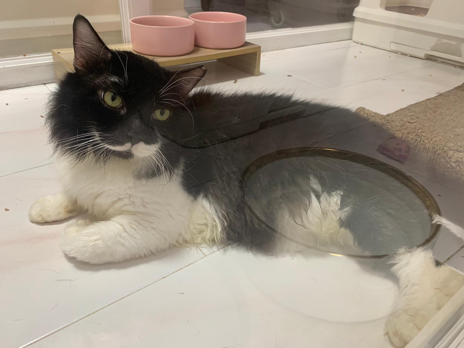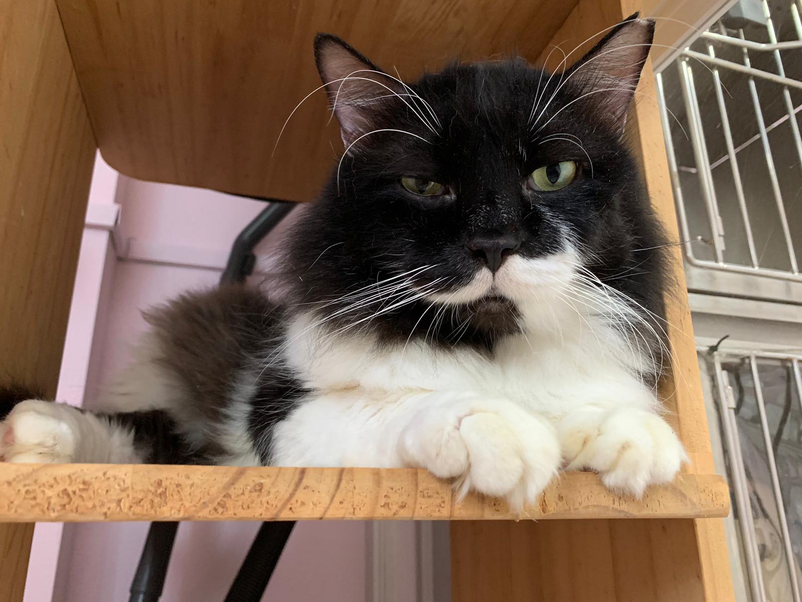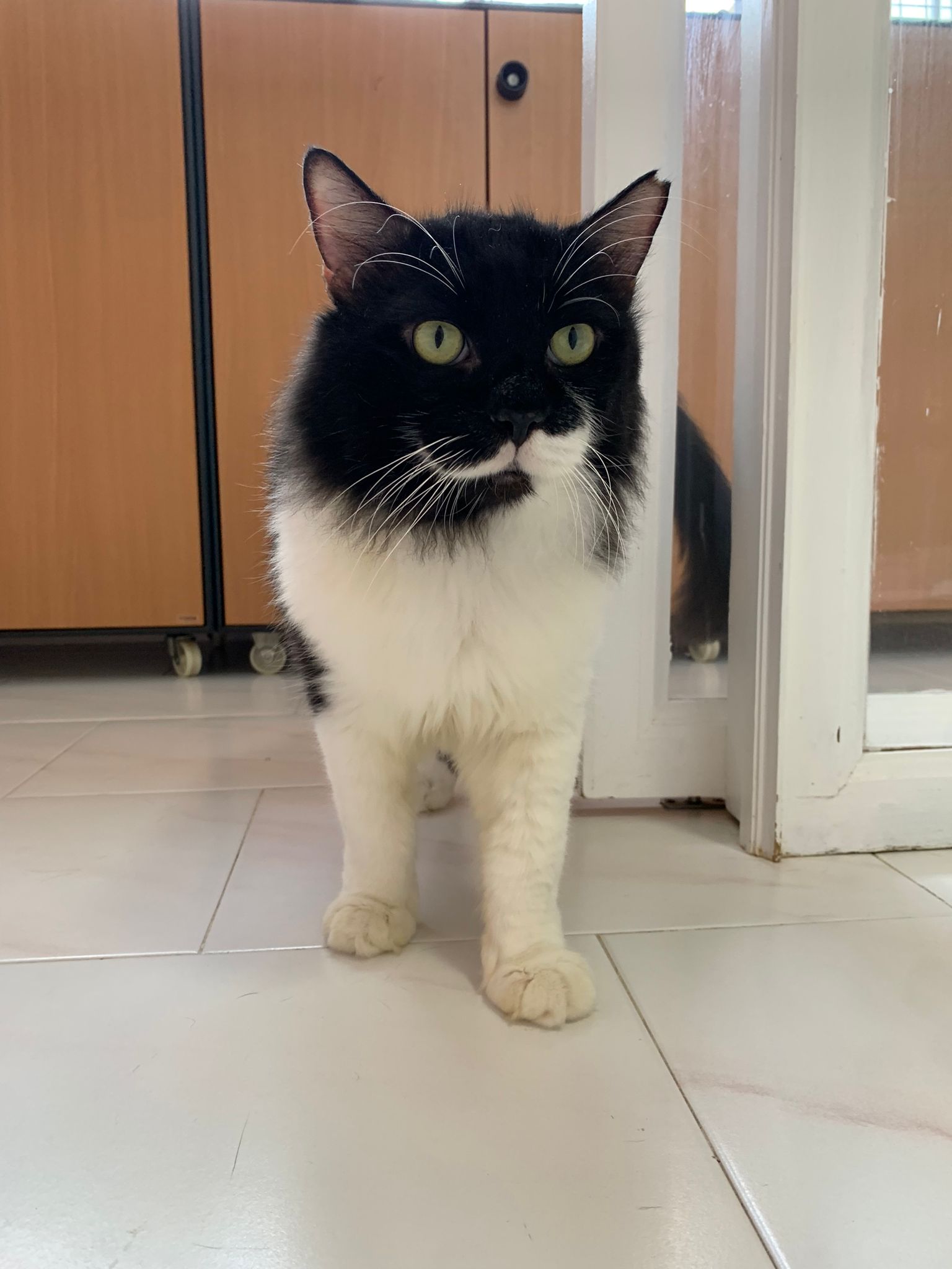 A cat that Amy rescued. open up the option to stay in 猫房 to buy time since he is felv+ cos he need to leave clinic le. so hope he can leave 猫房 asap.