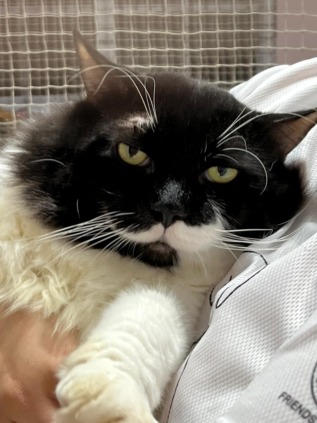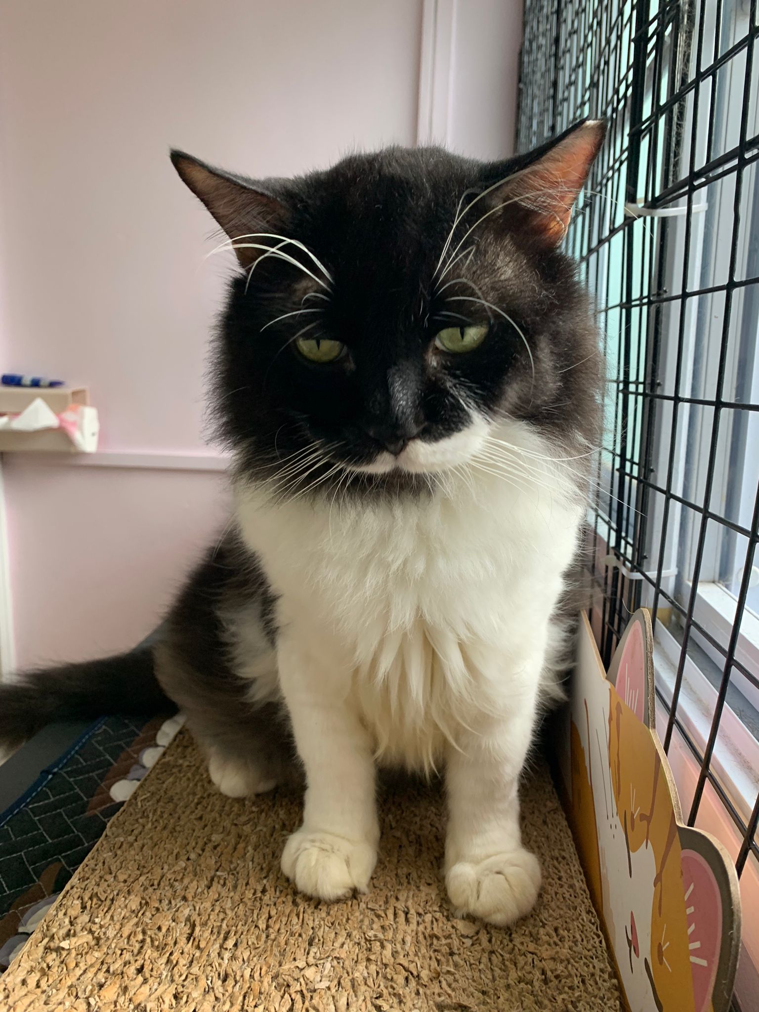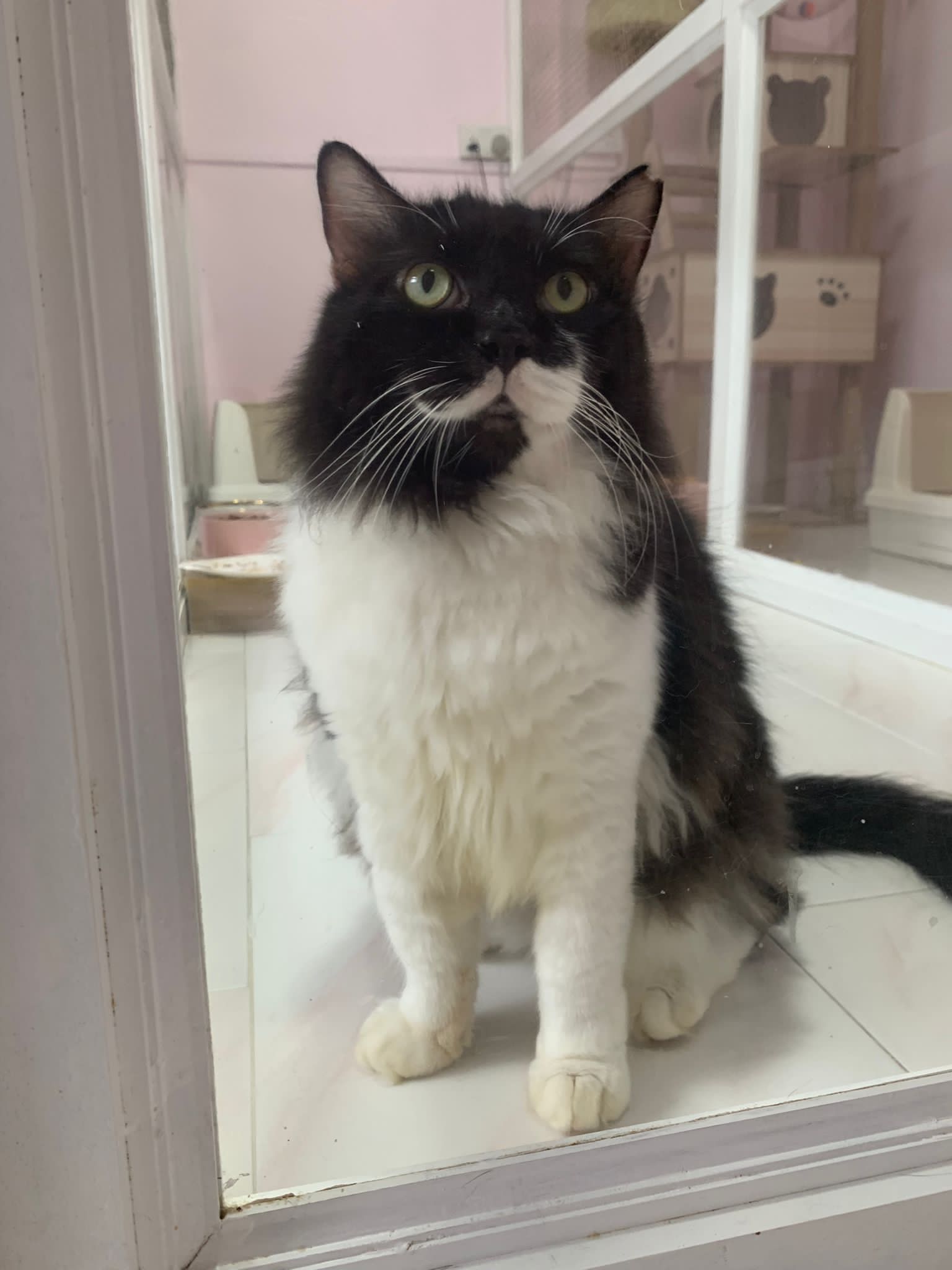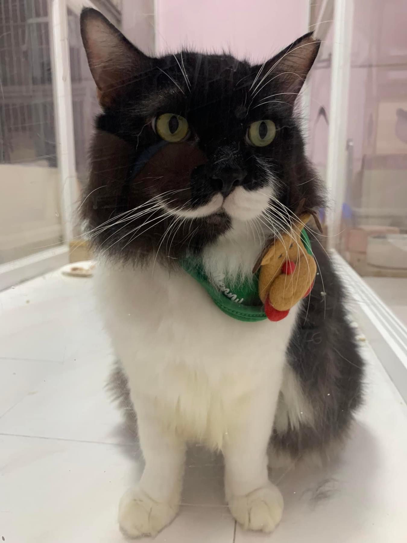 A cat that Amy rescued. open up the option to stay in 猫房 to buy time since he is felv+ cos he need to leave clinic le. so hope he can leave 猫房 asap.