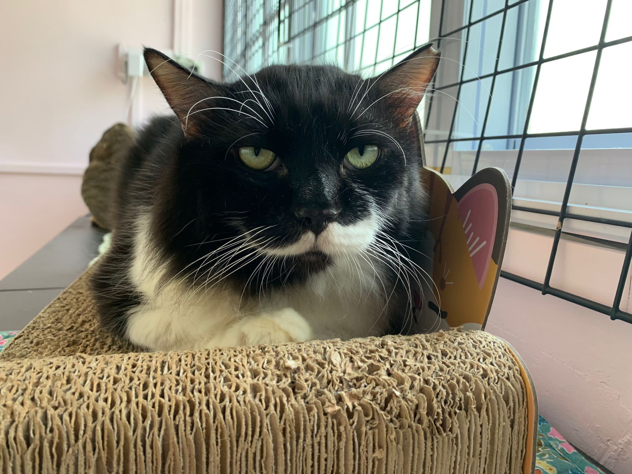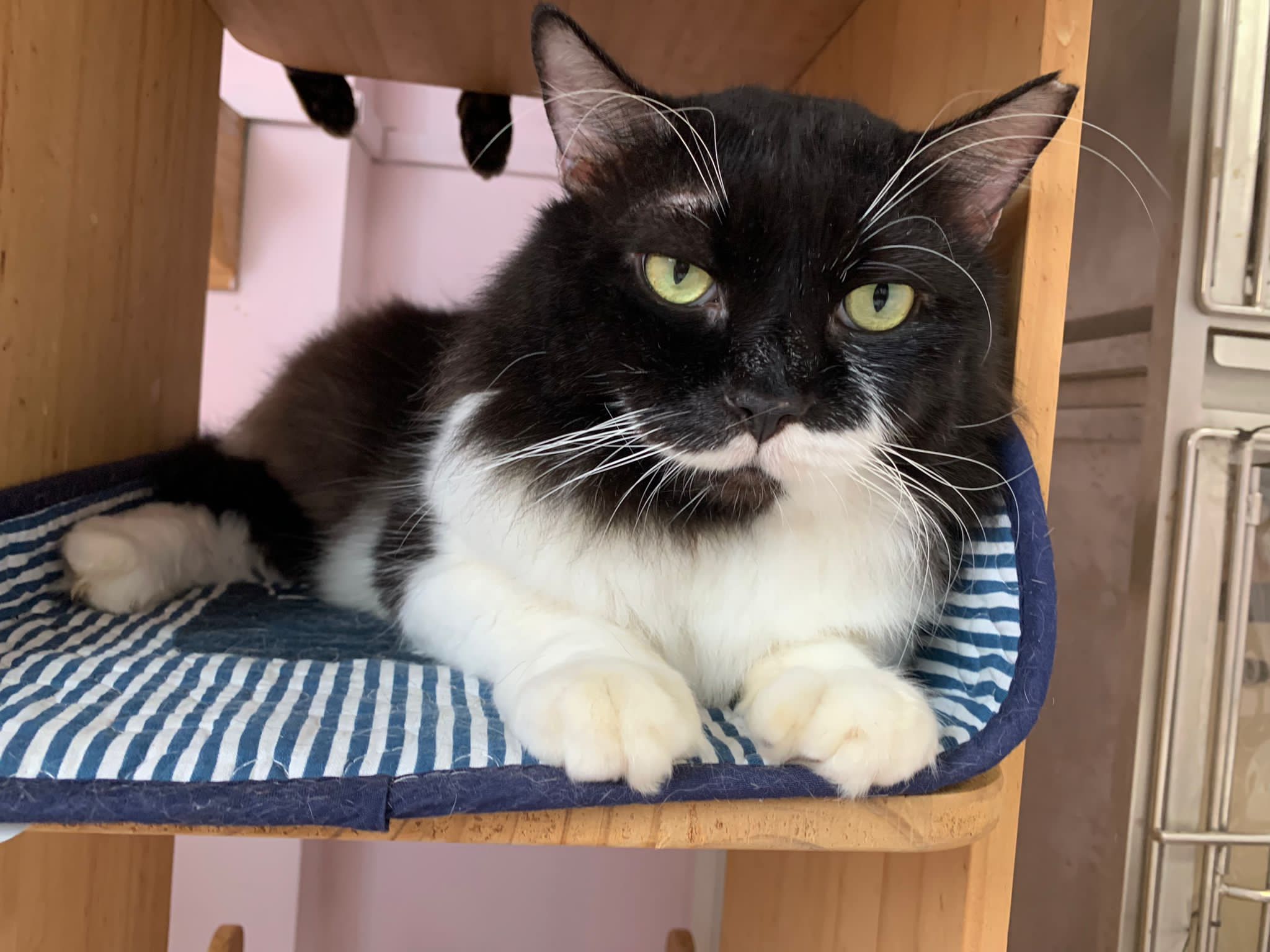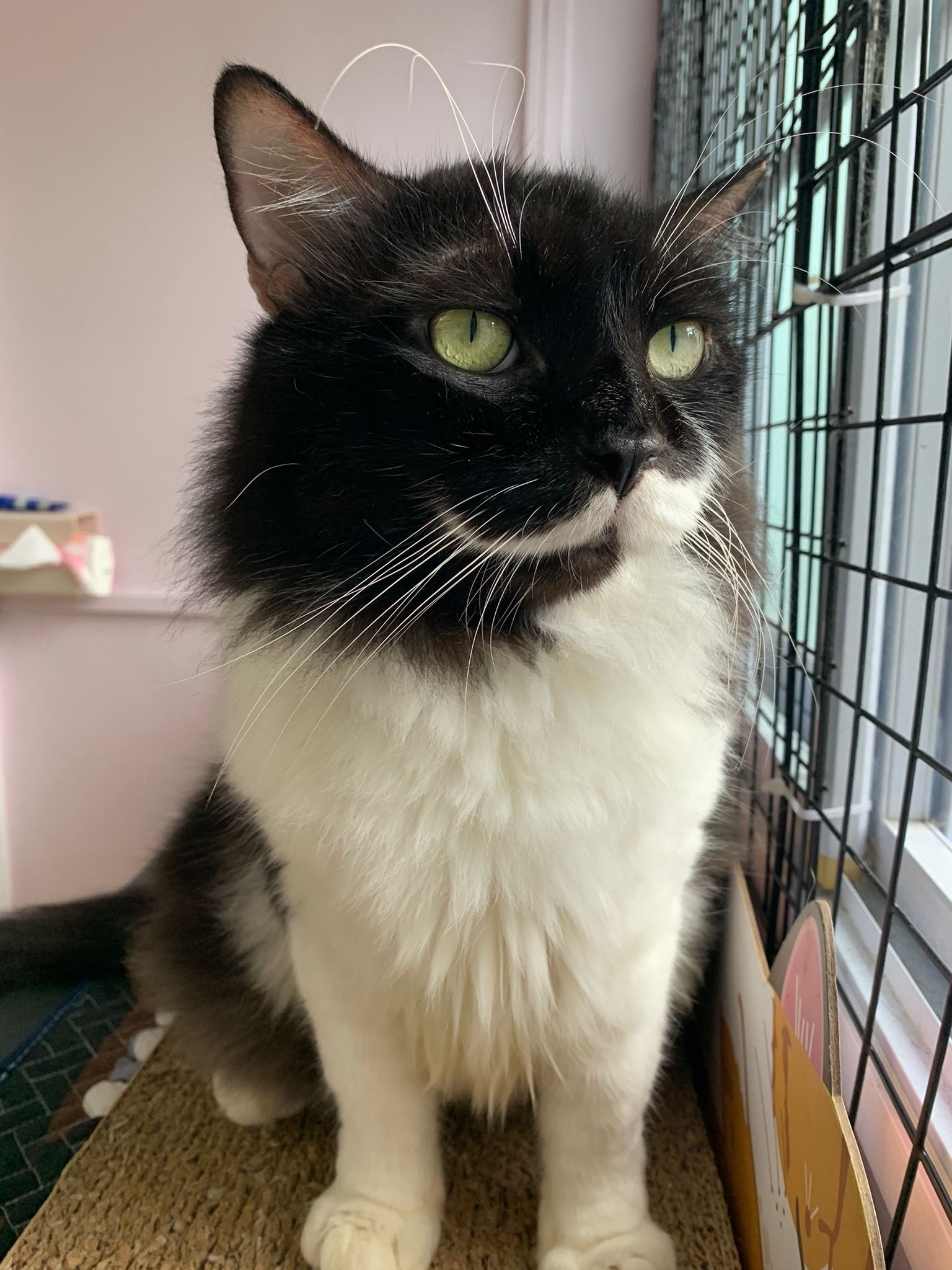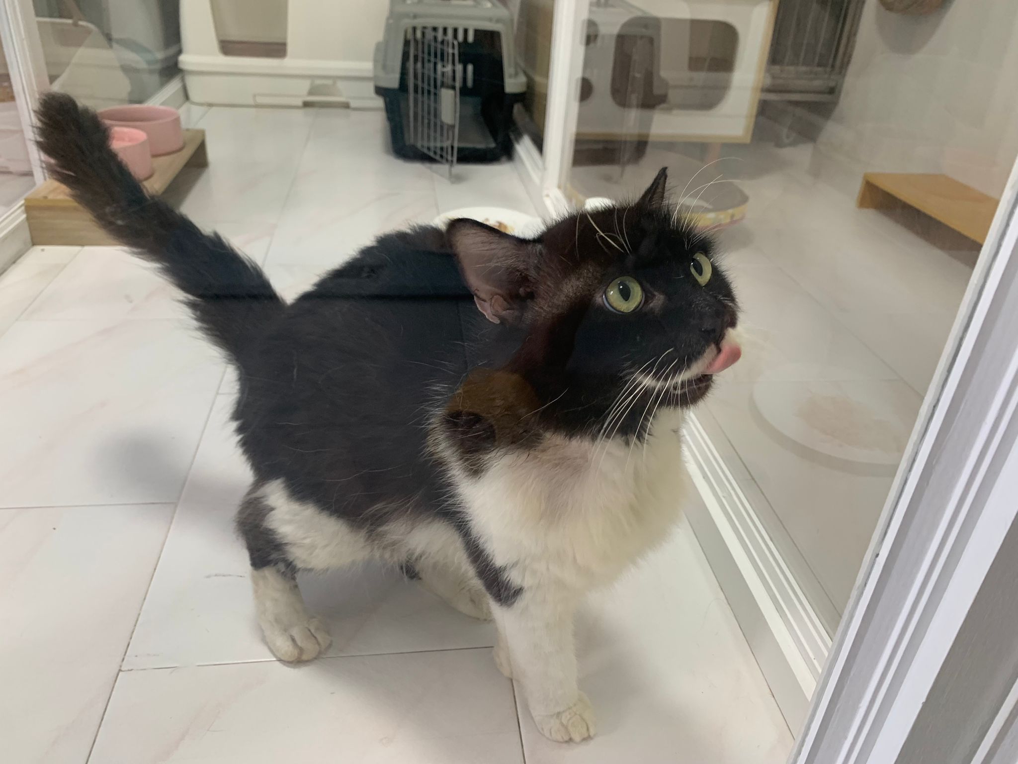 A cat that Amy rescued. open up the option to stay in 猫房 to buy time since he is felv+ cos he need to leave clinic le. so hope he can leave 猫房 asap.