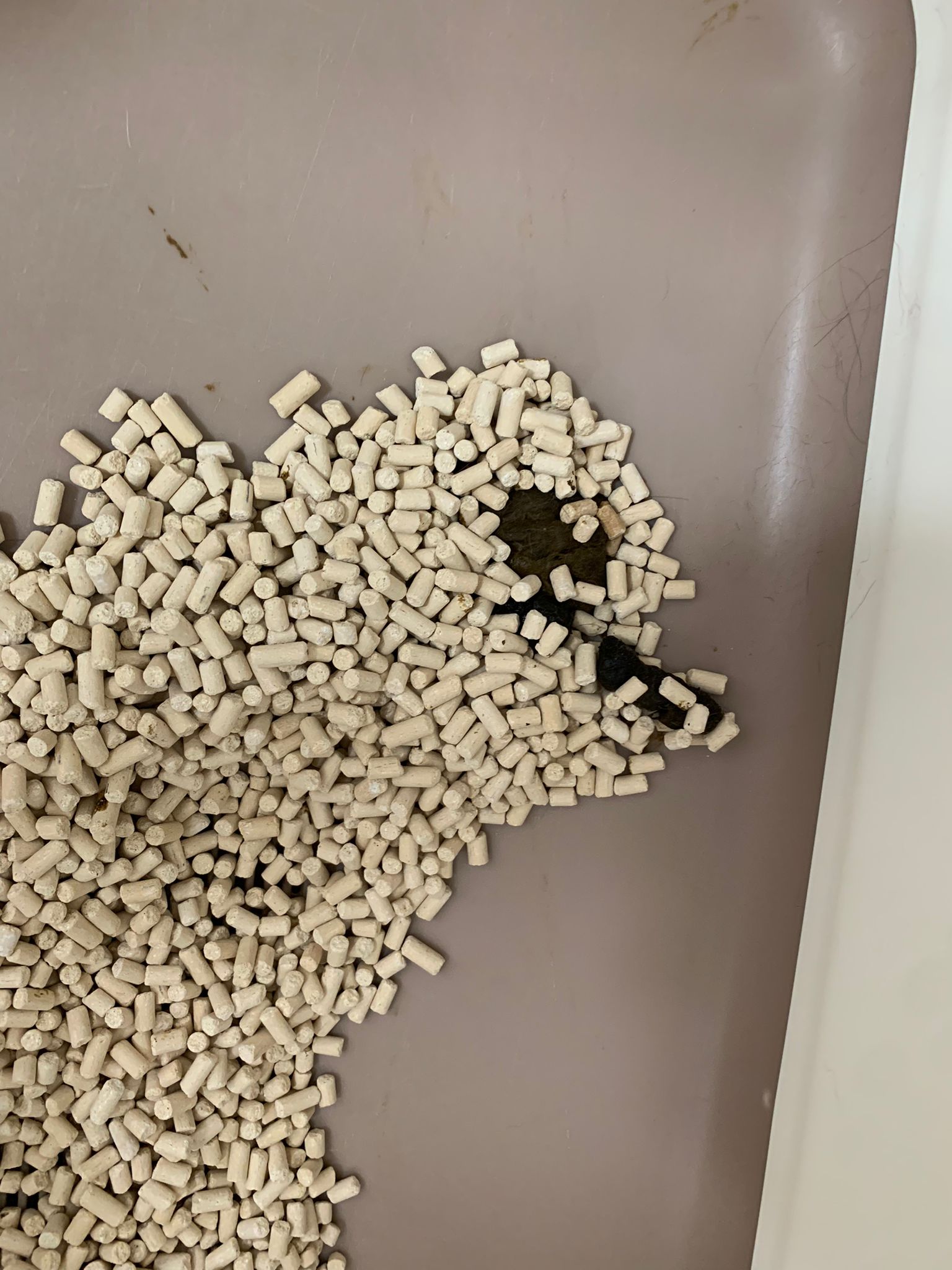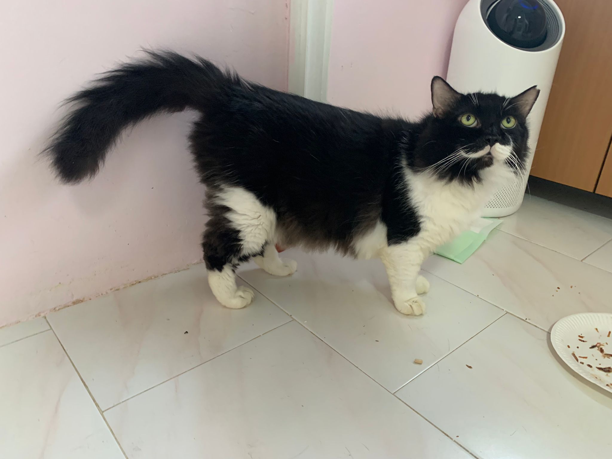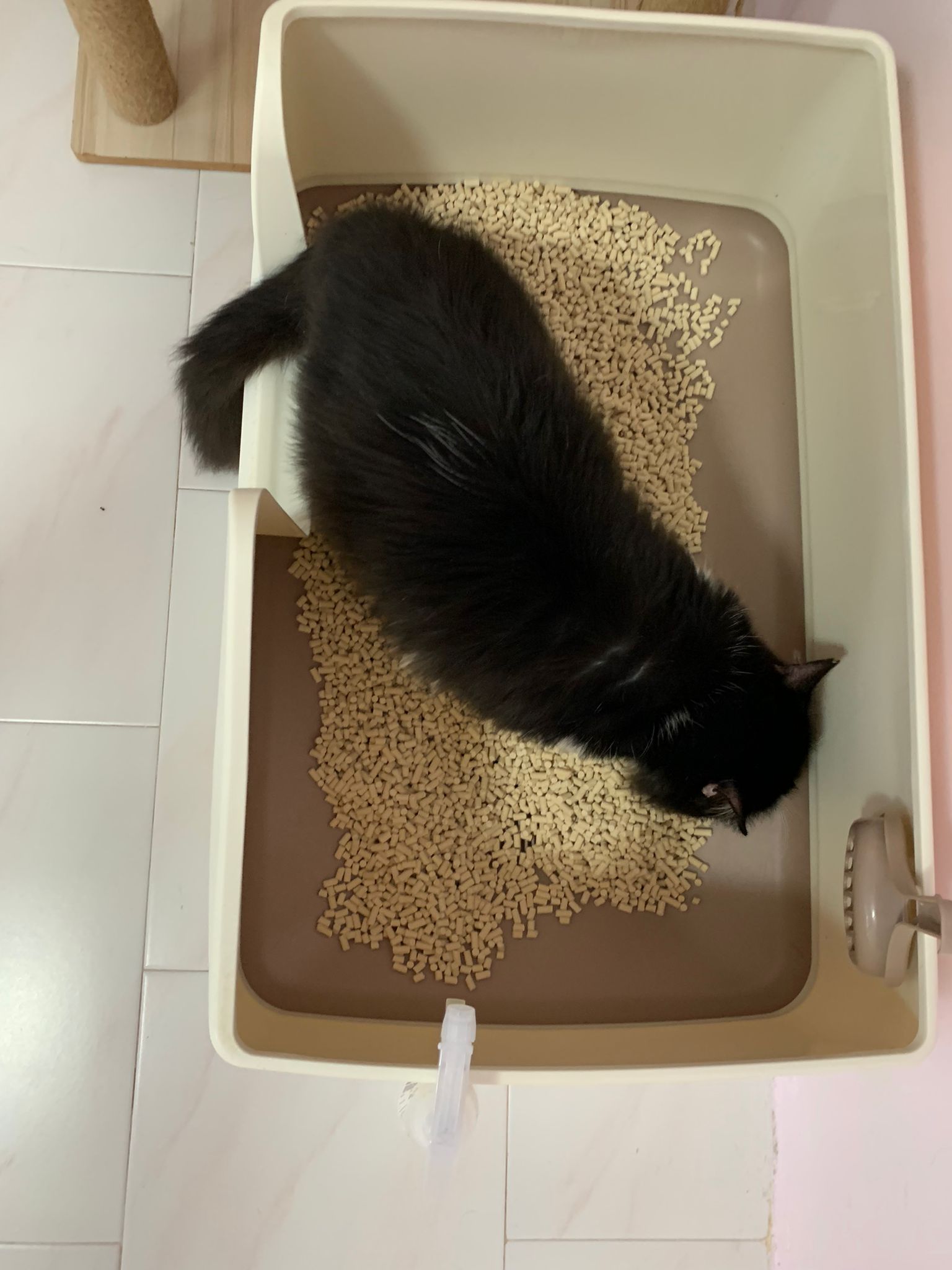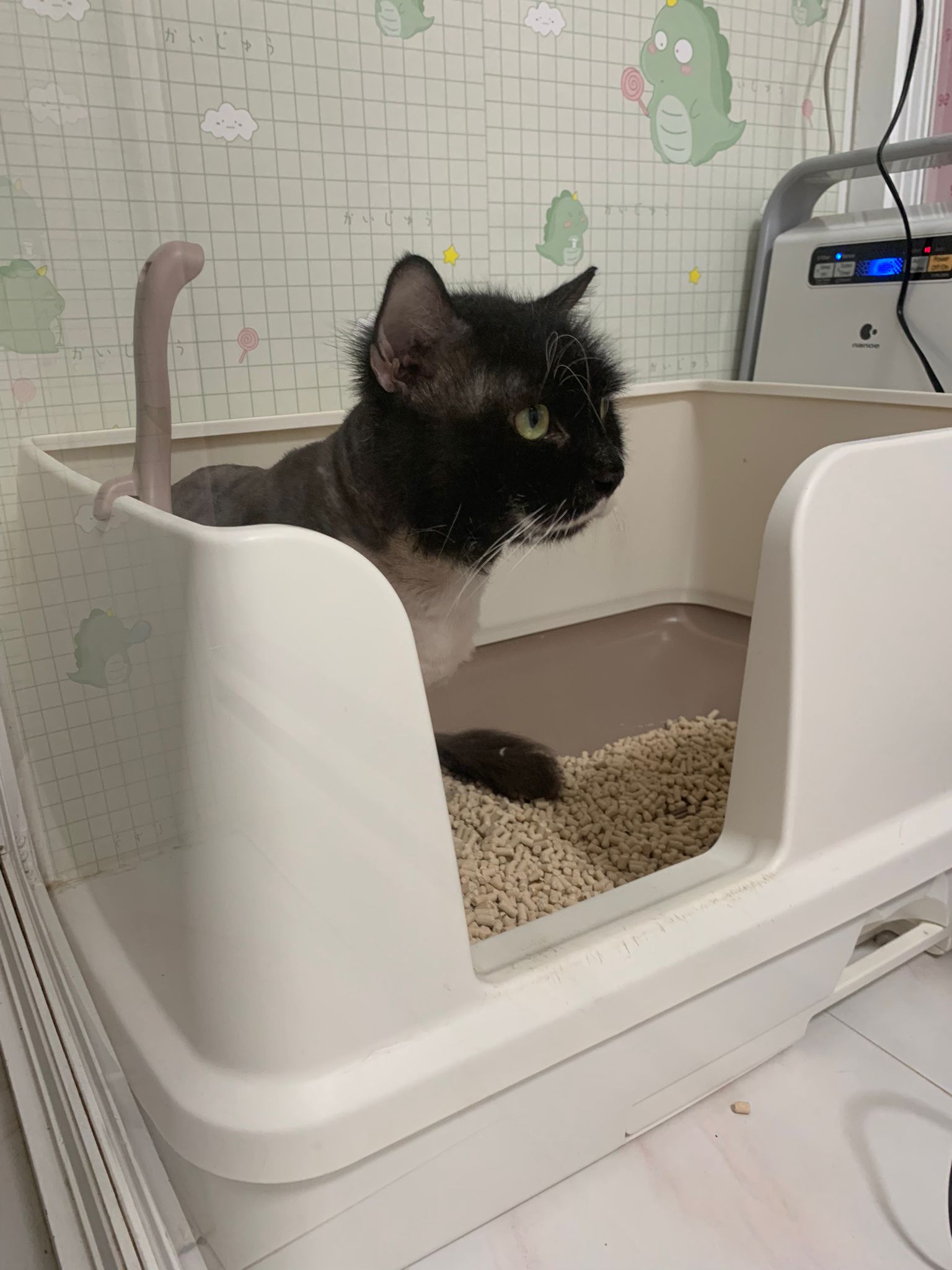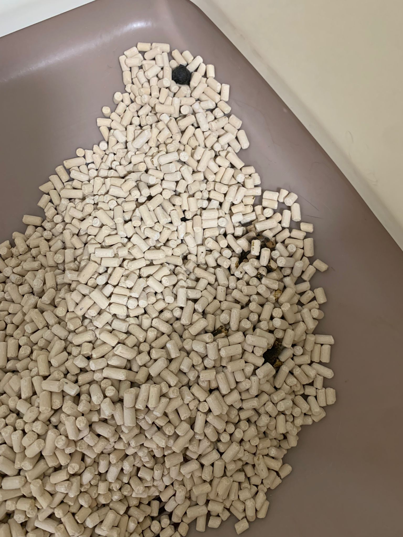 1214pm: haha no wonder soooo much agitated – he want to pee la!! He went straight to the bin . White fur are yellowish