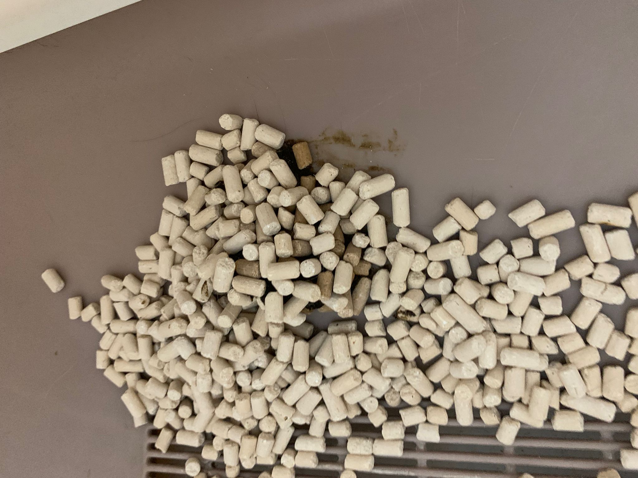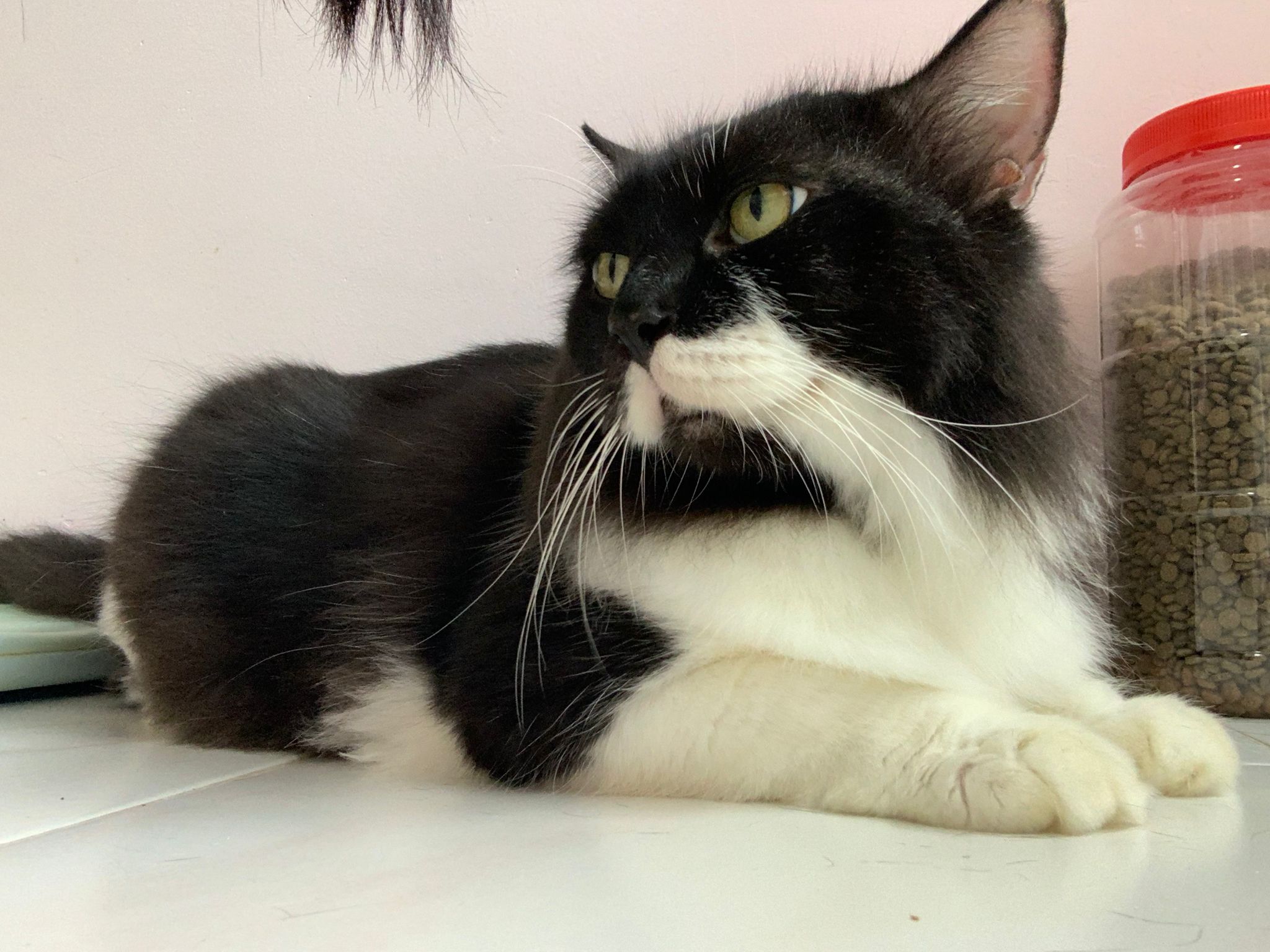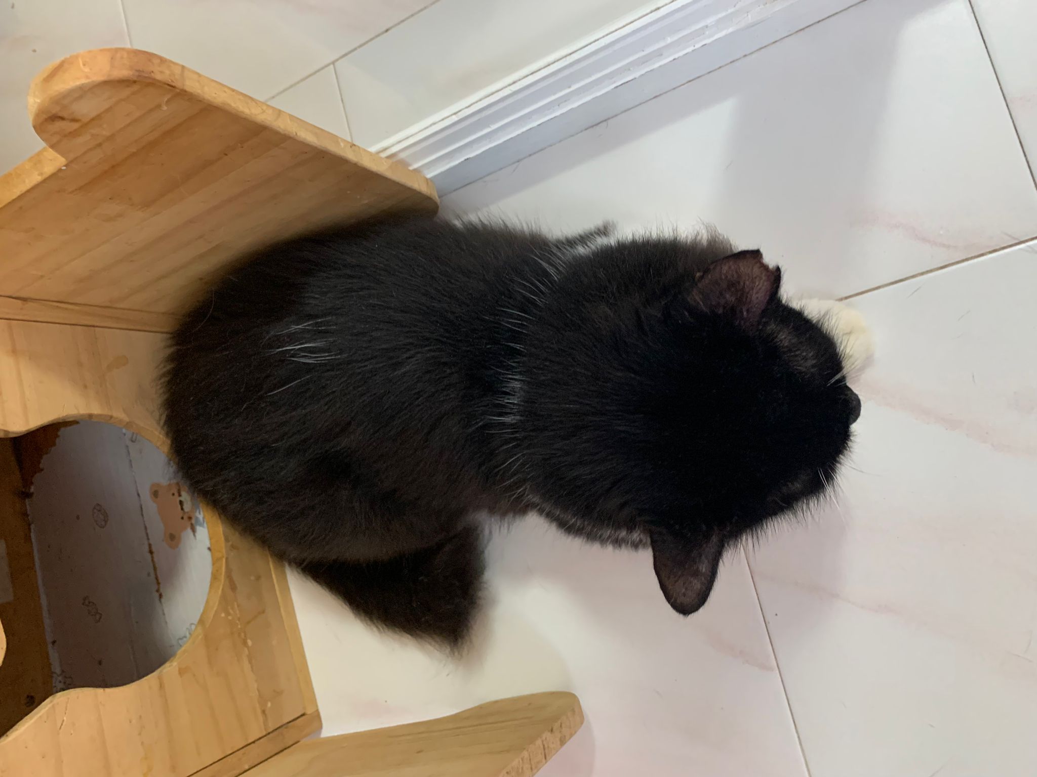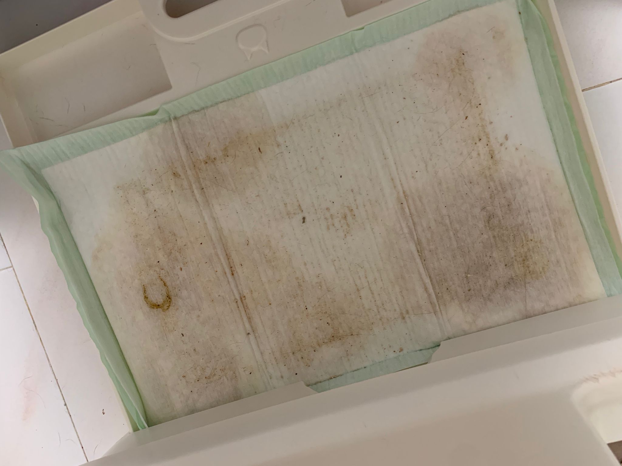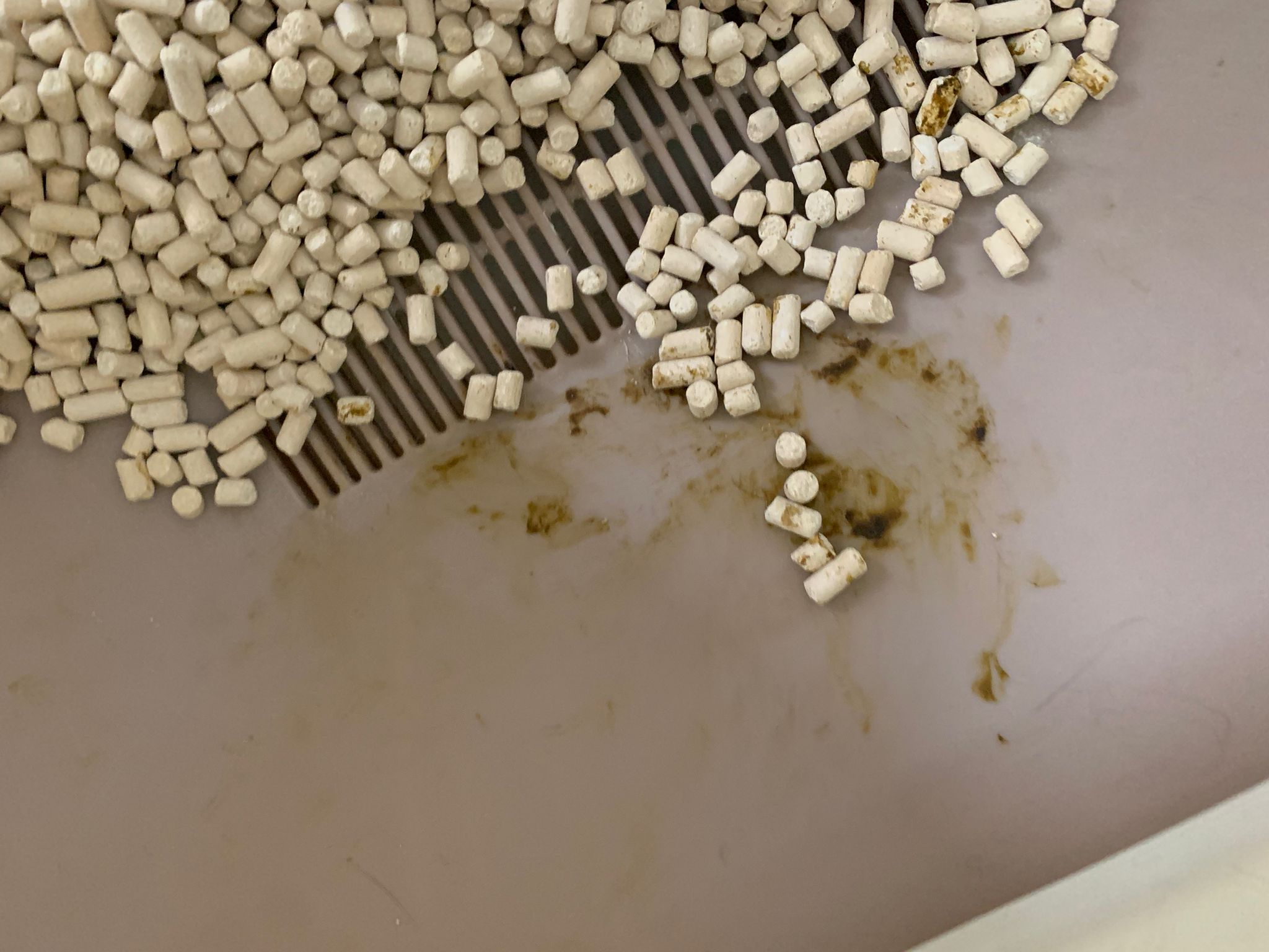 1214pm: haha no wonder soooo much agitated – he want to pee la!! He went straight to the bin . White fur are yellowish