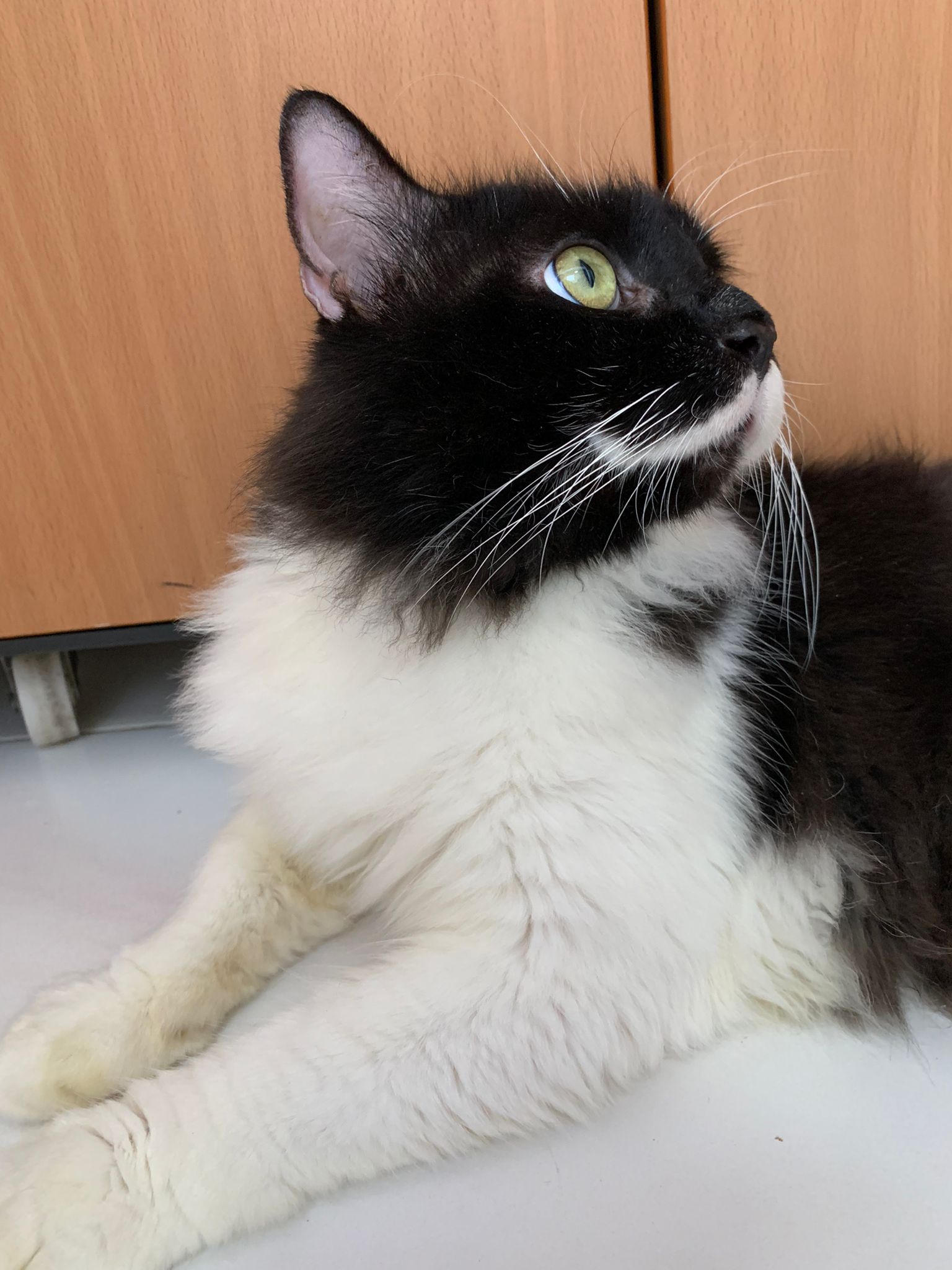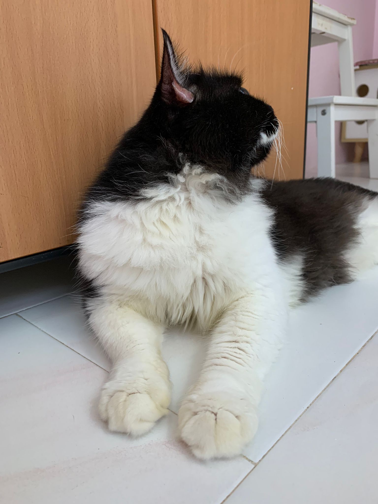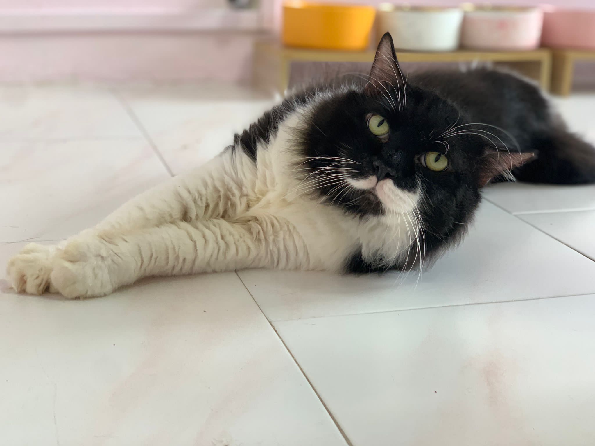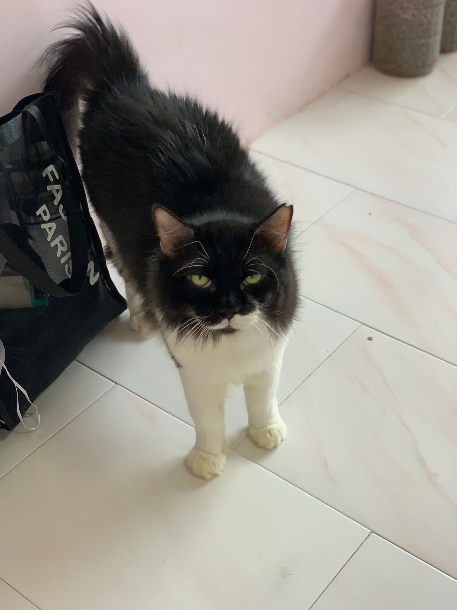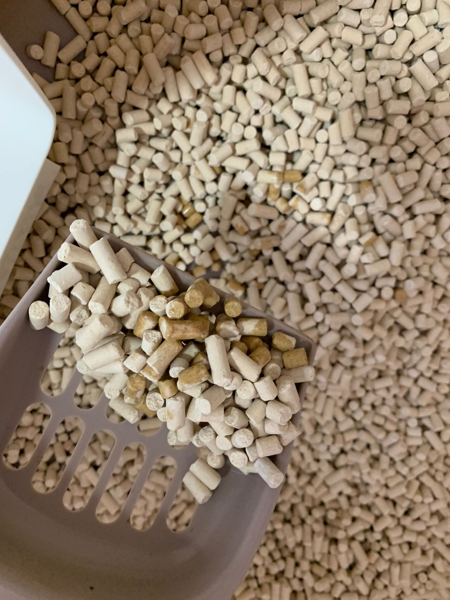 1214pm: haha no wonder soooo much agitated – he want to pee la!! He went straight to the bin . White fur are yellowish