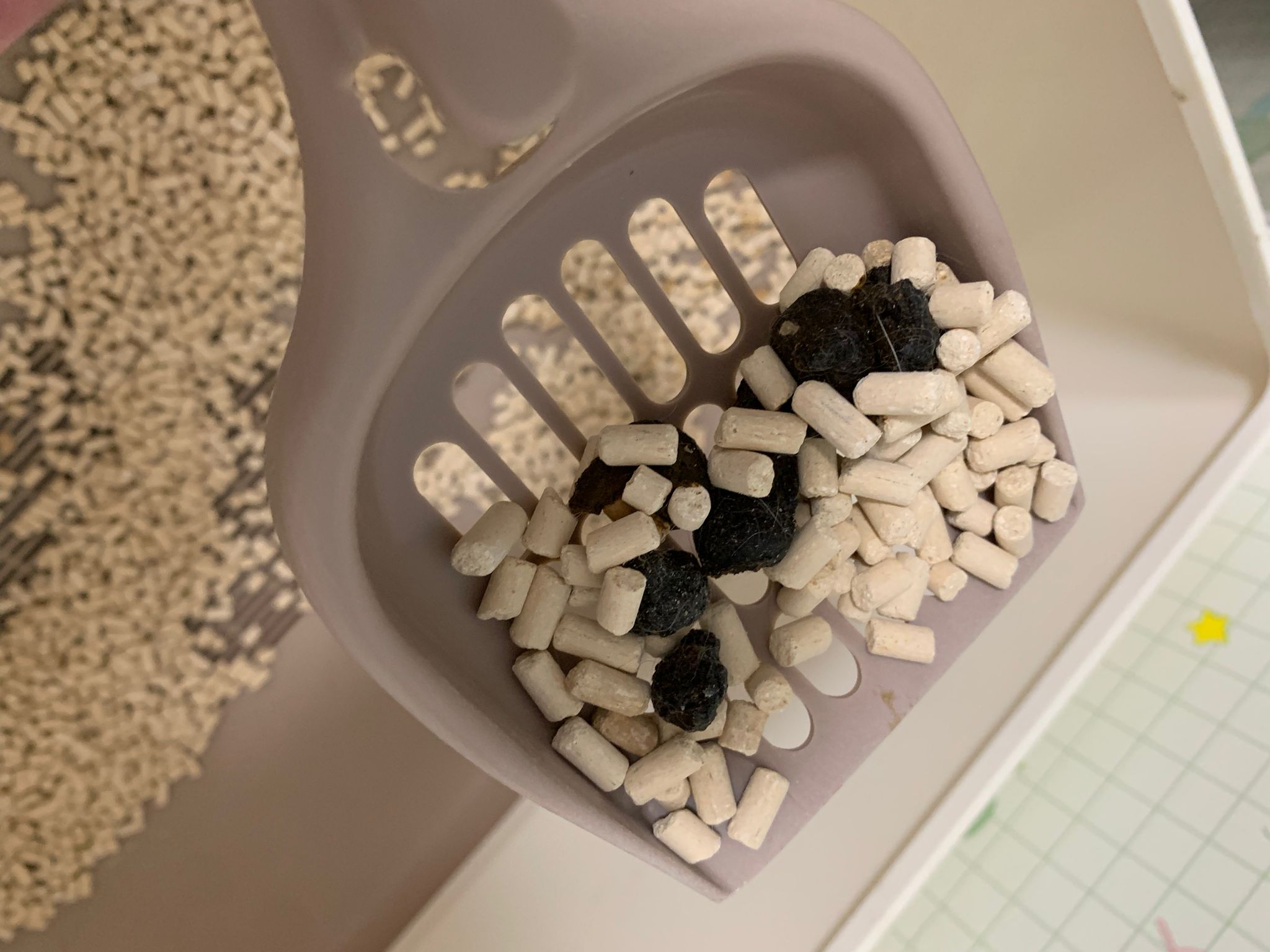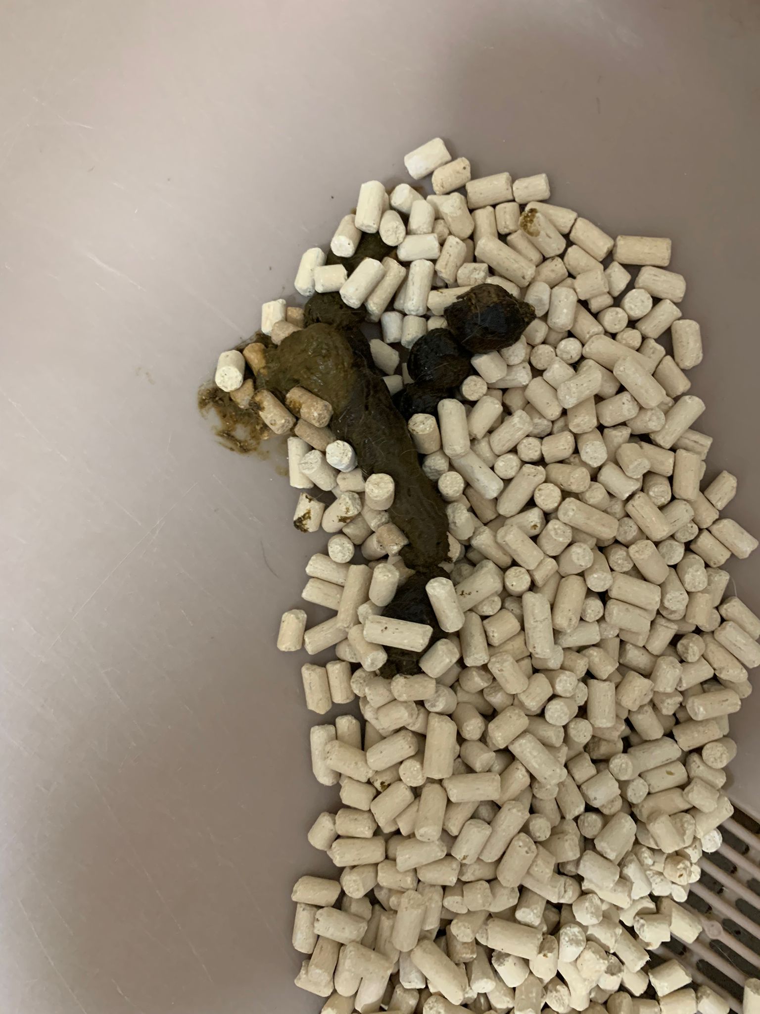 Poo 3+5/10, slight improvement. Food cleared.