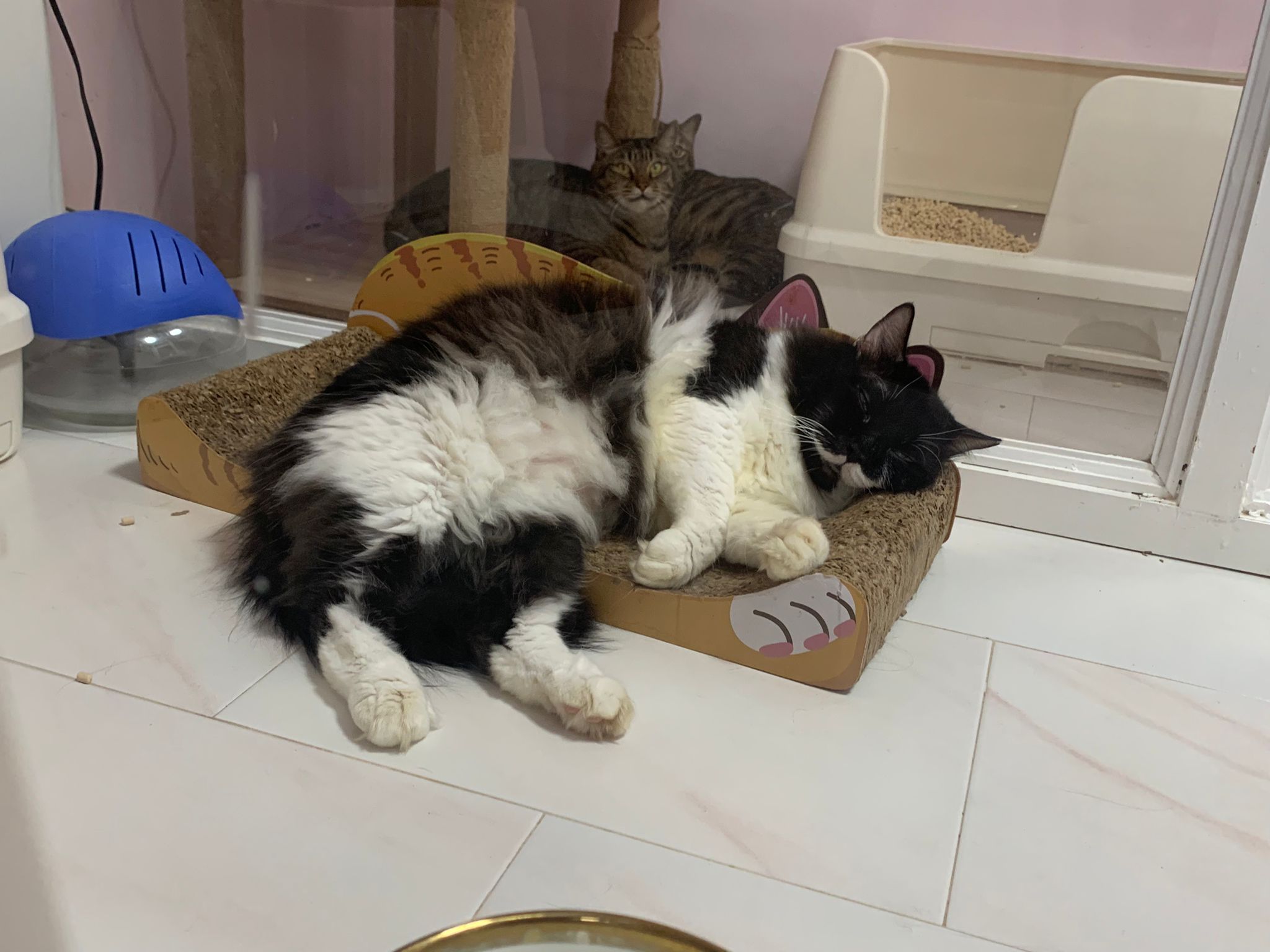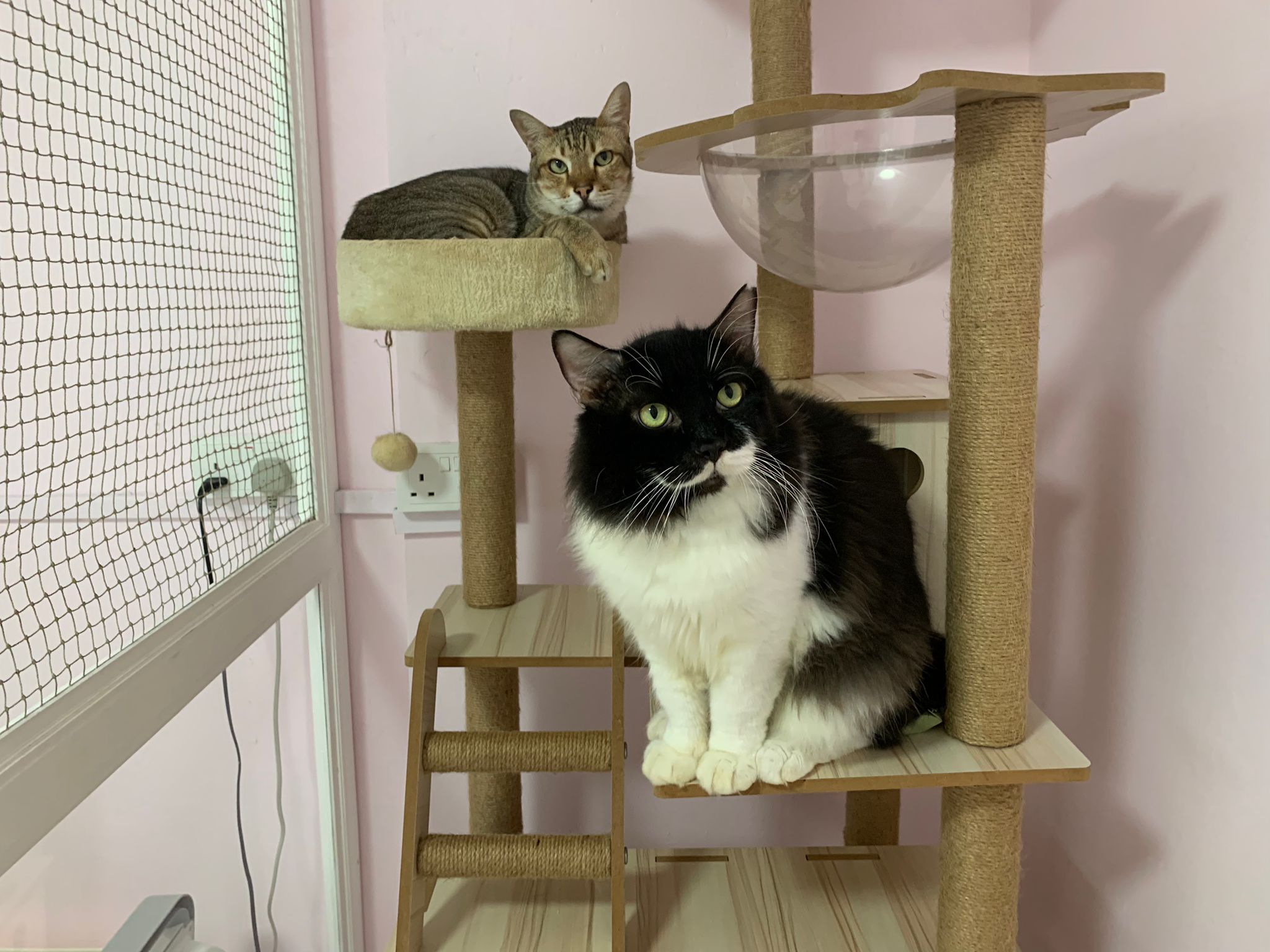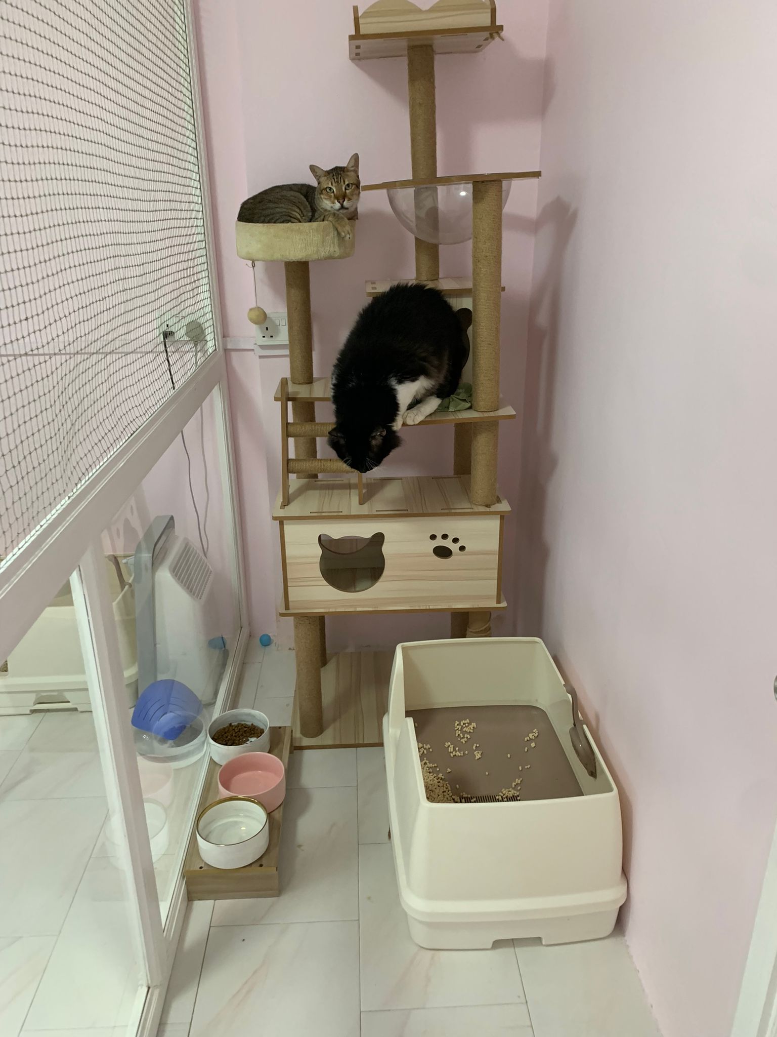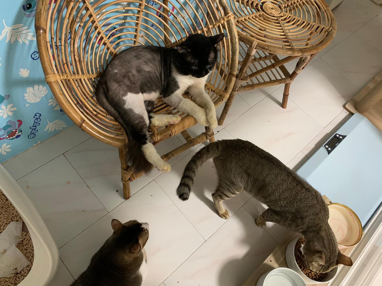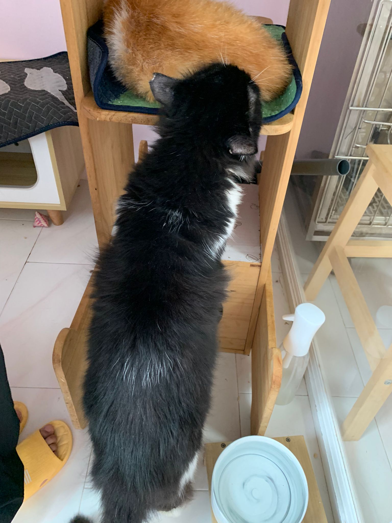 Noon: saw msges that he settle down alr. Think he haven’t see his bro. He got a water dispenser, cat tree and unicharm cafe and a long catnip toy.