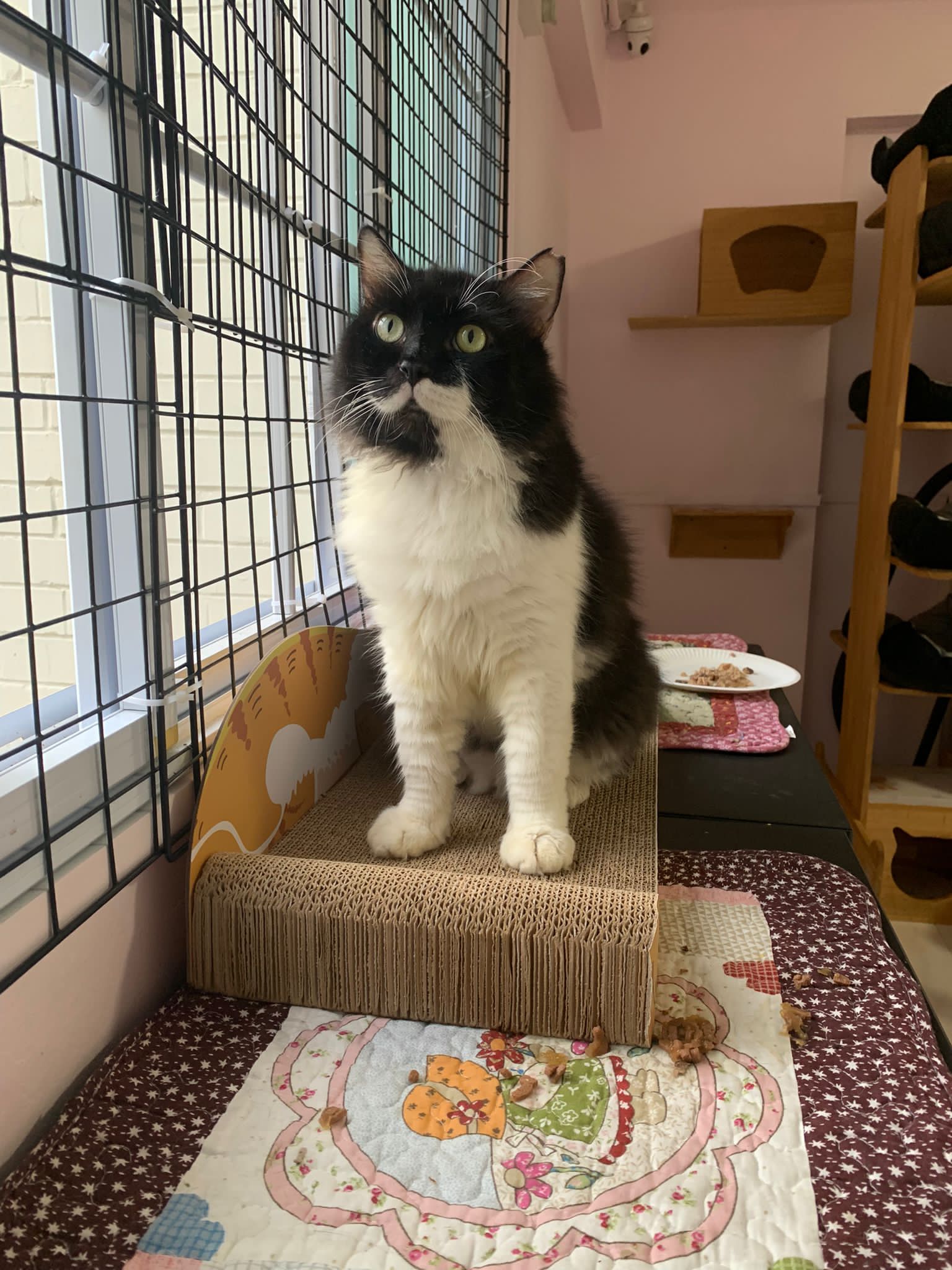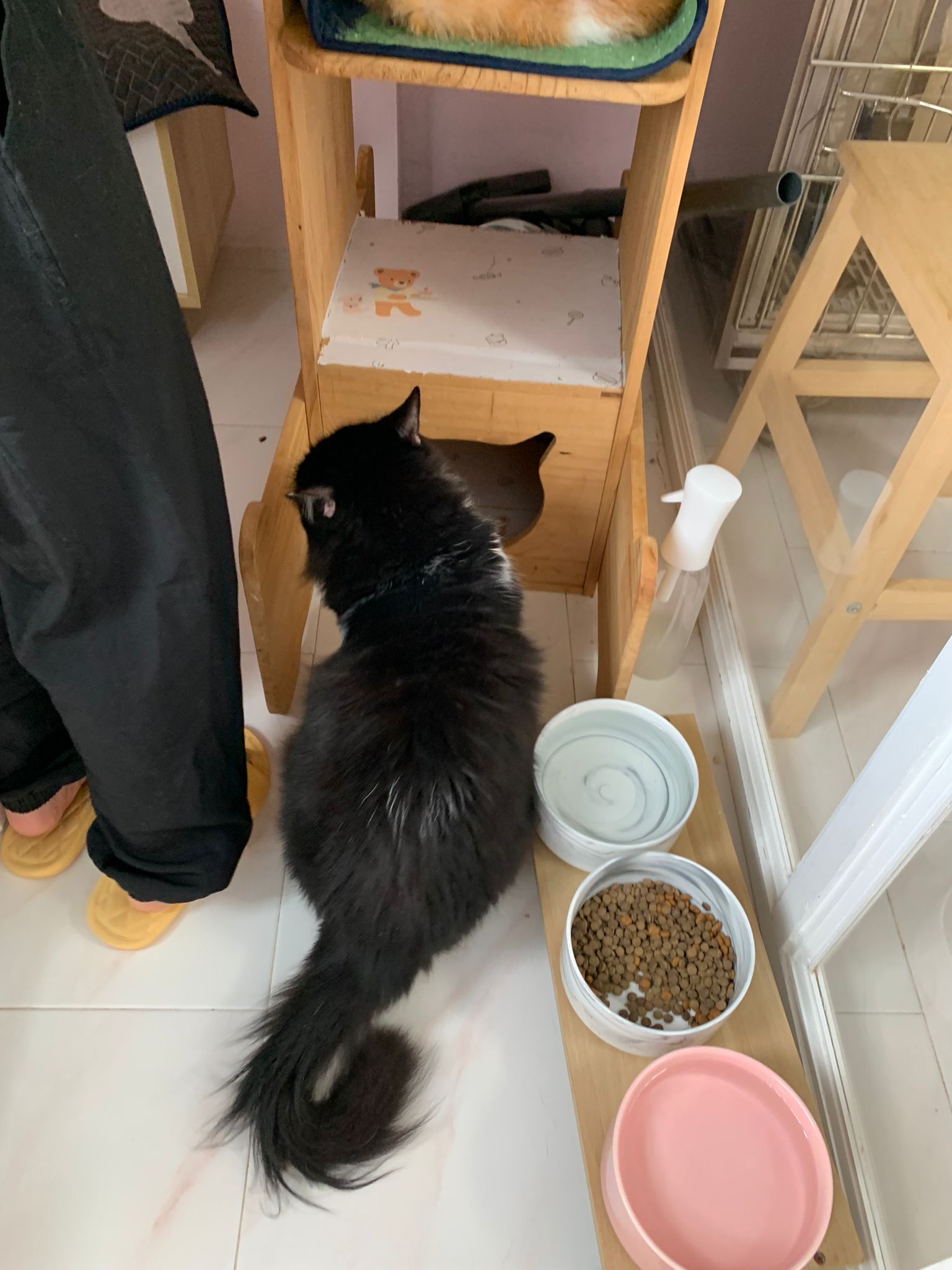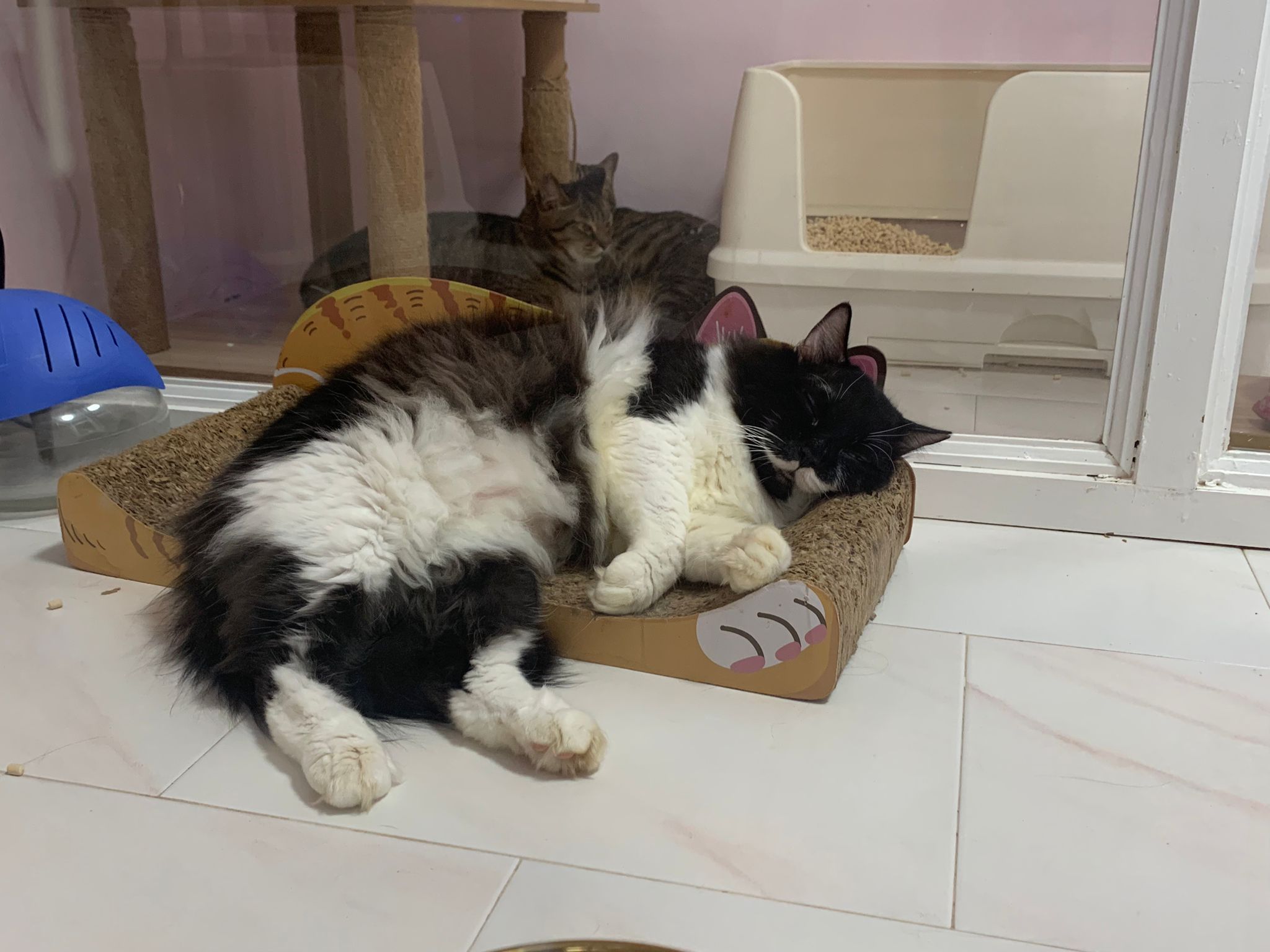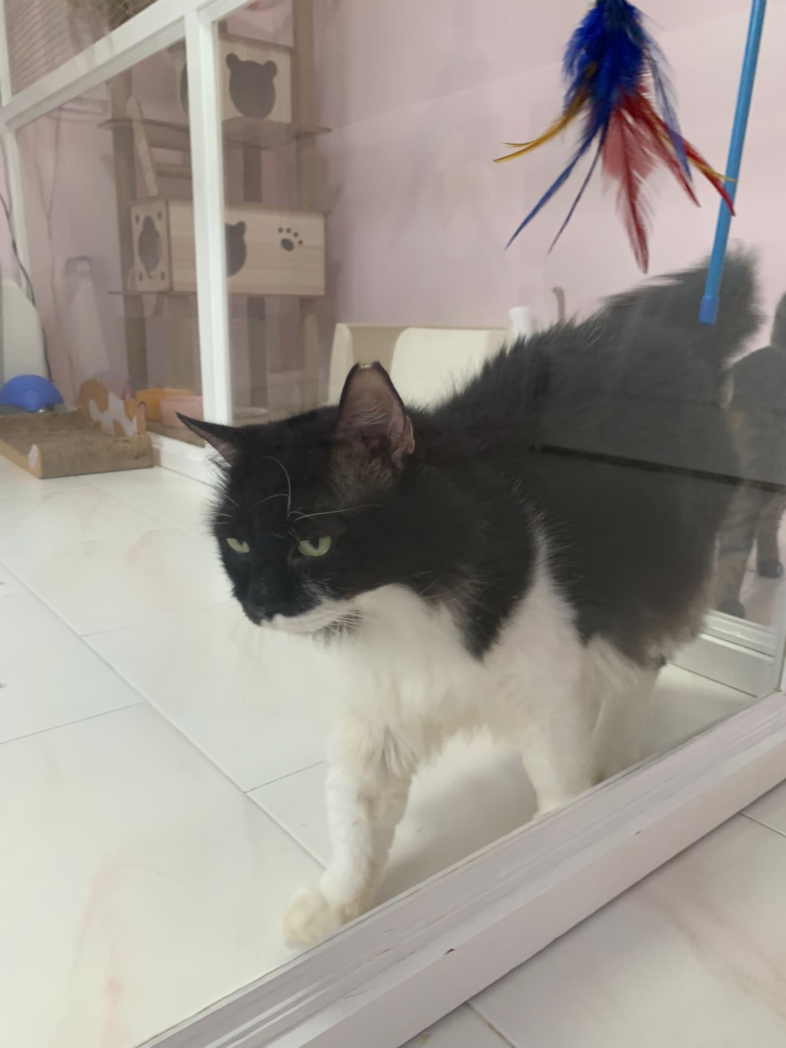 Noon: saw msges that he settle down alr. Think he haven’t see his bro. He got a water dispenser, cat tree and unicharm cafe and a long catnip toy.