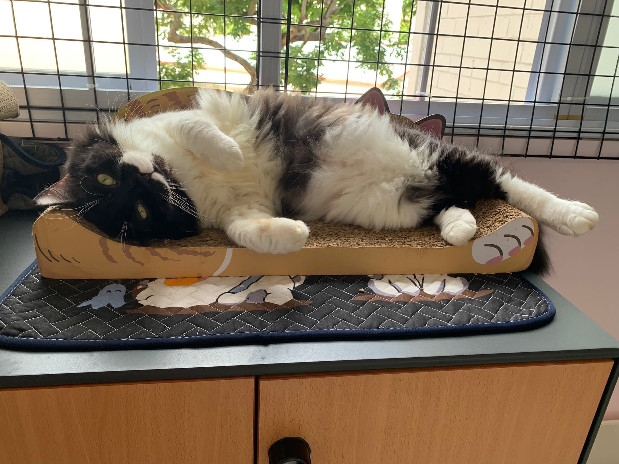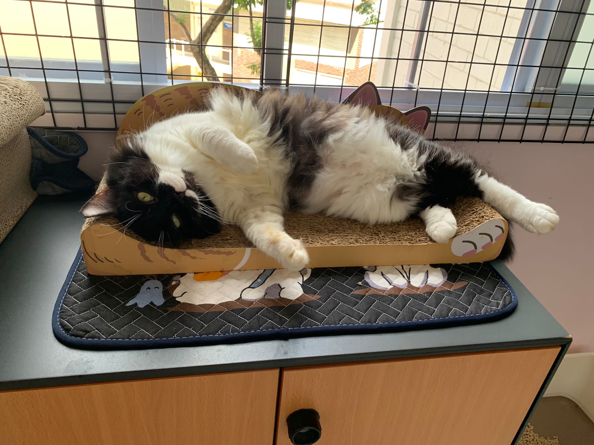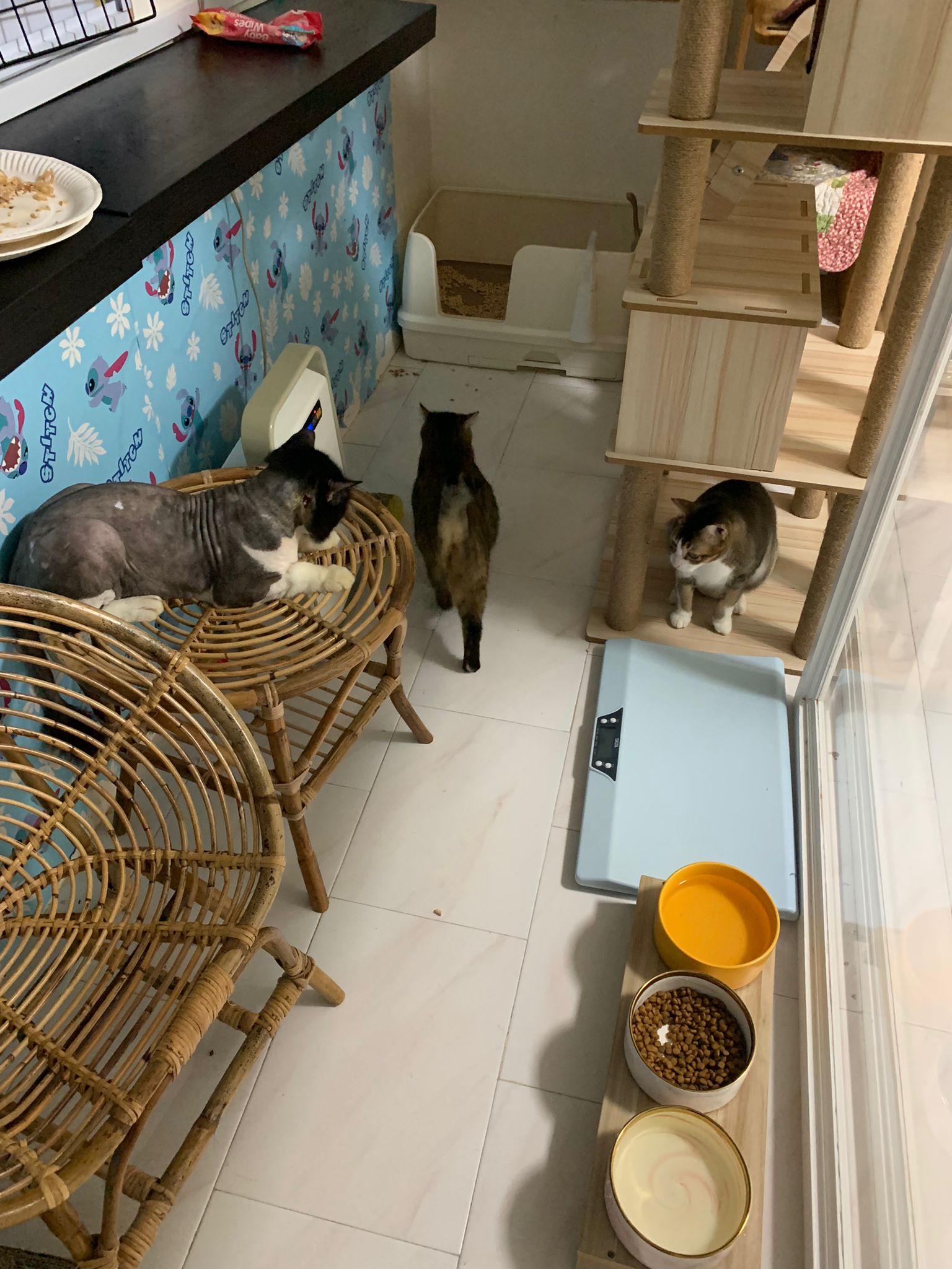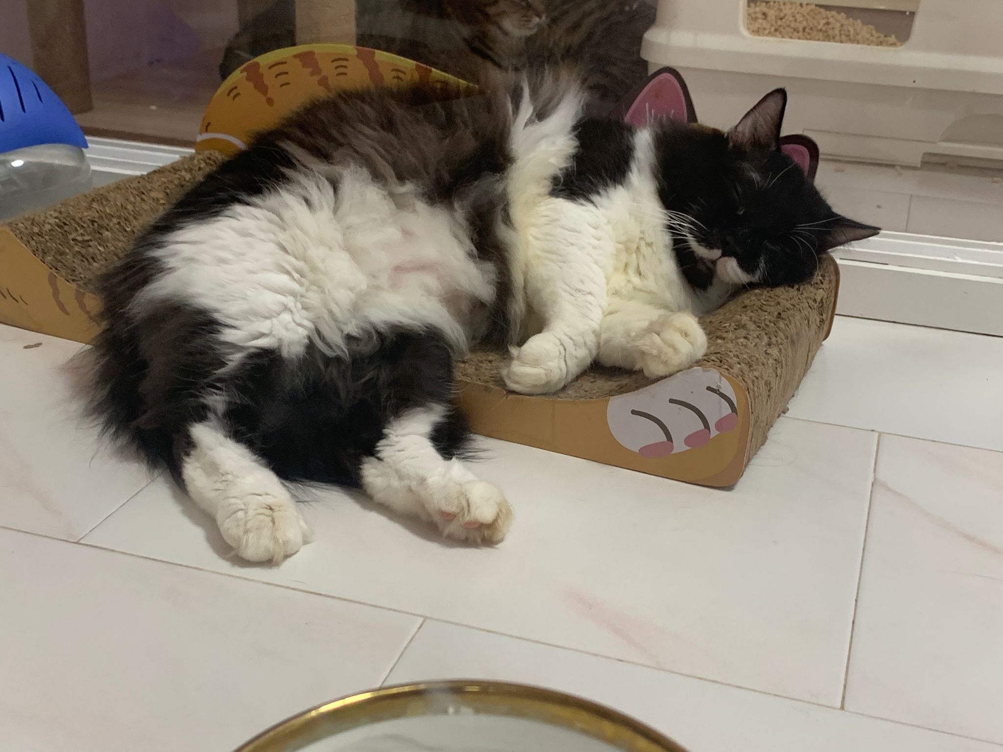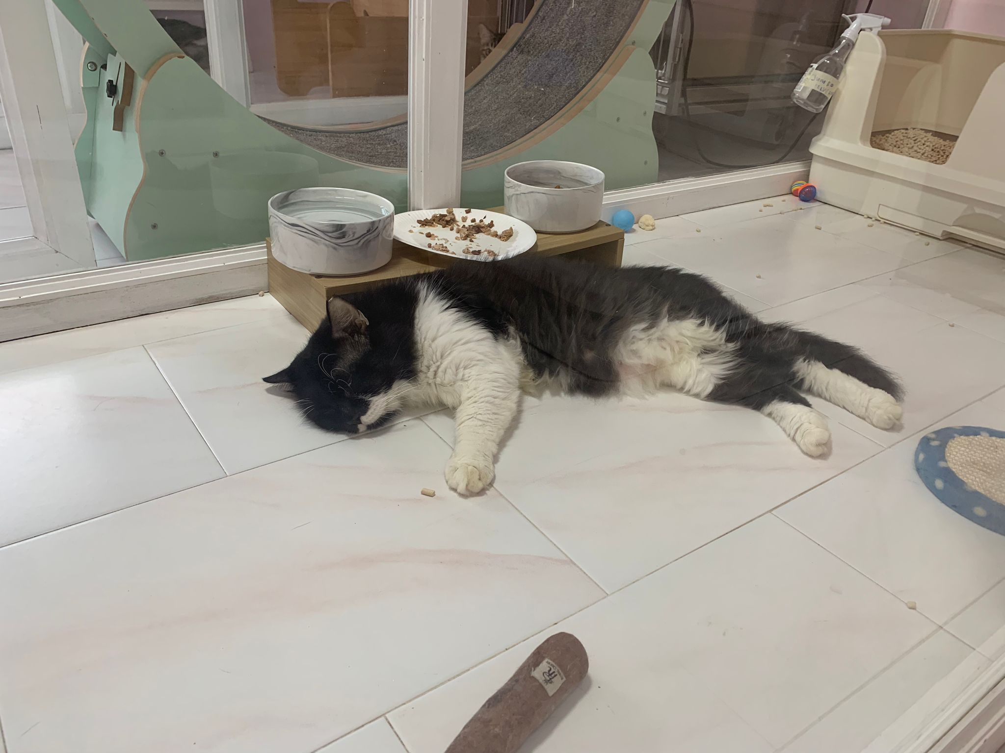 Noon: saw msges that he settle down alr. Think he haven’t see his bro. He got a water dispenser, cat tree and unicharm cafe and a long catnip toy.