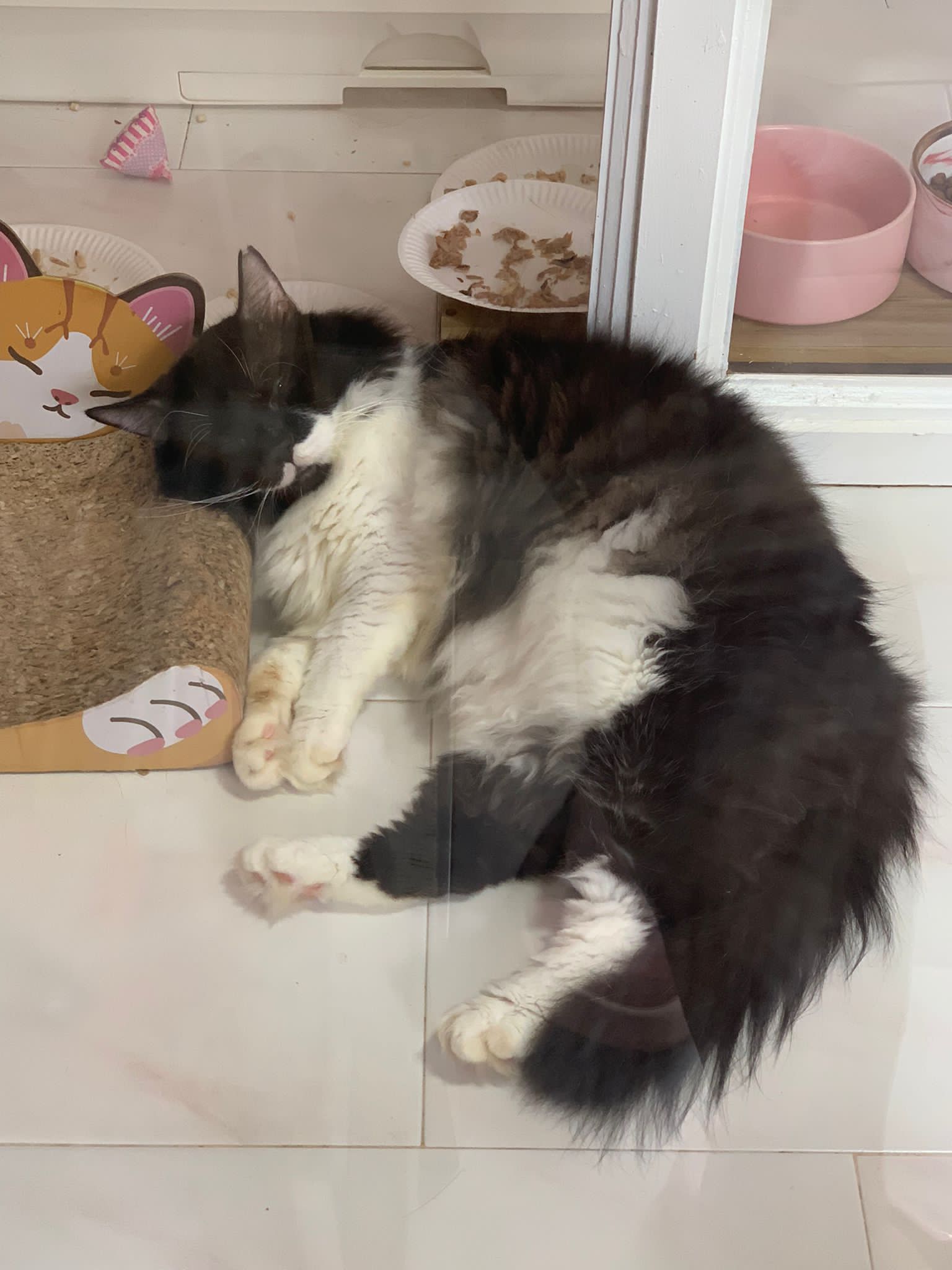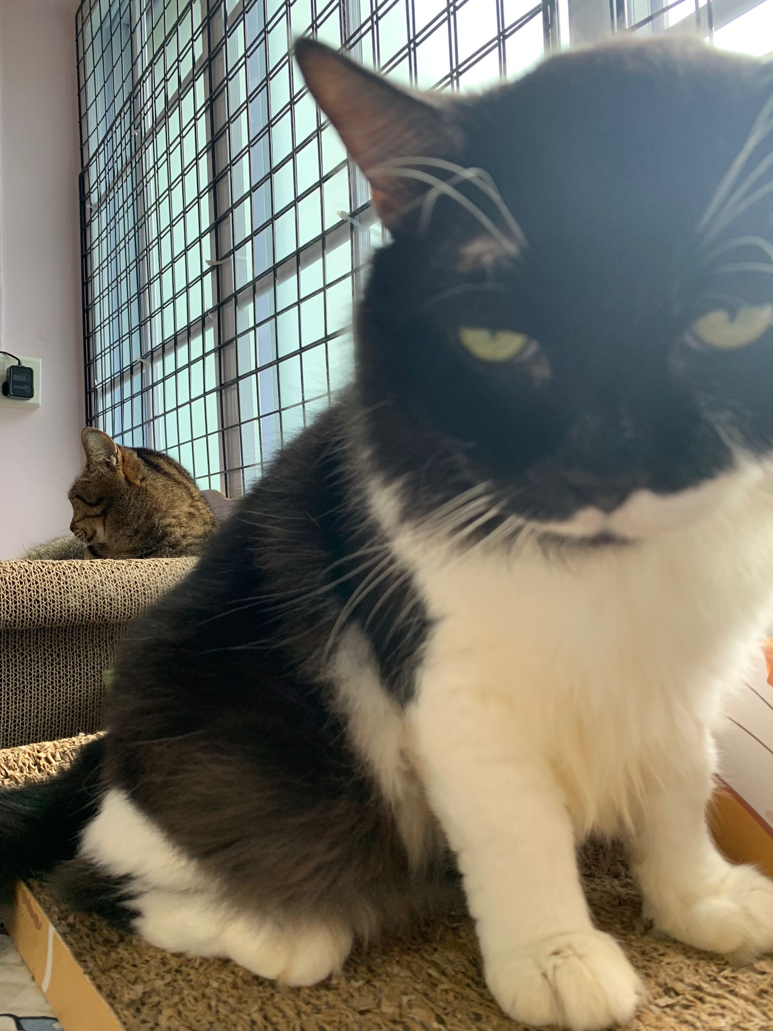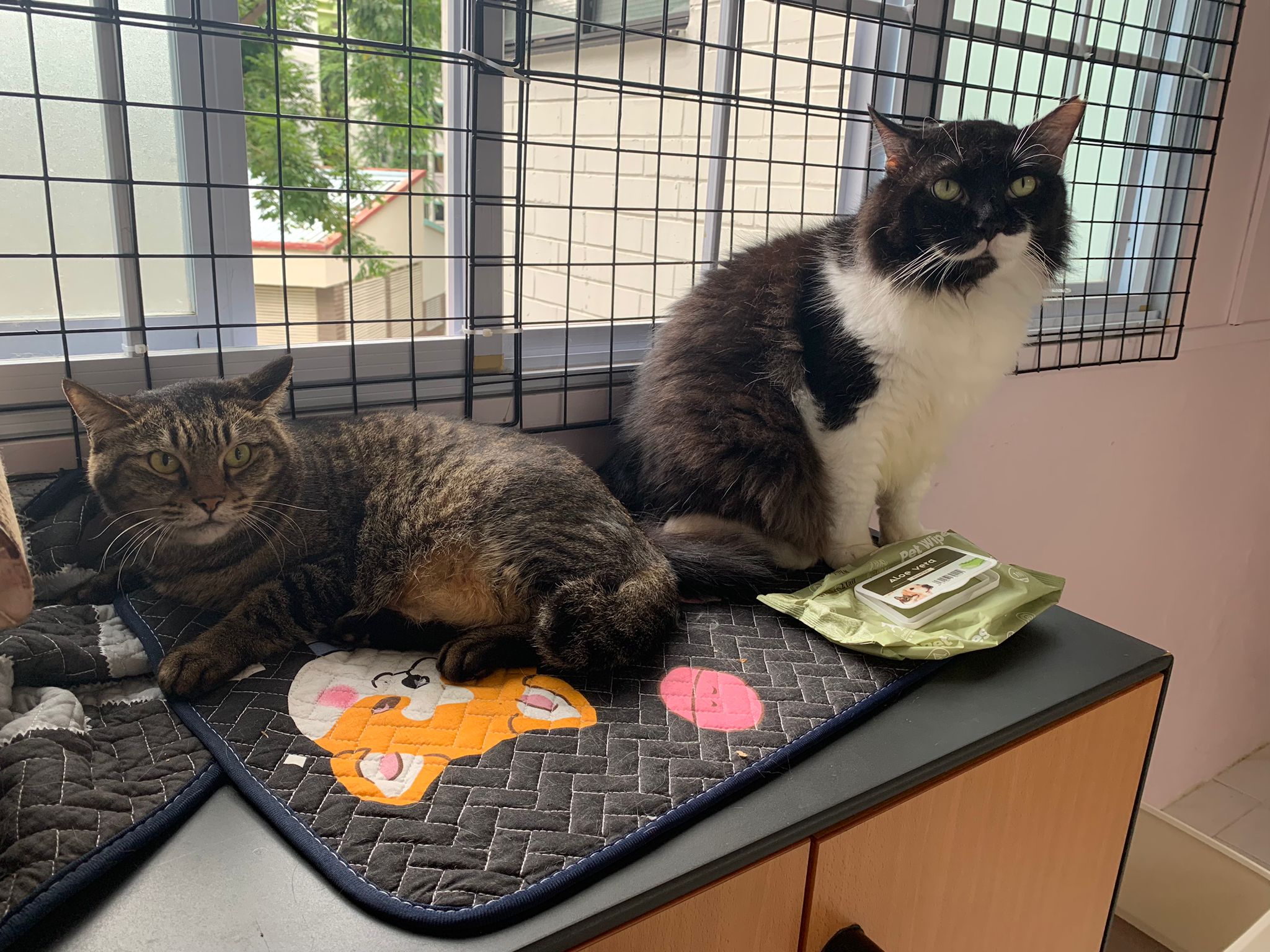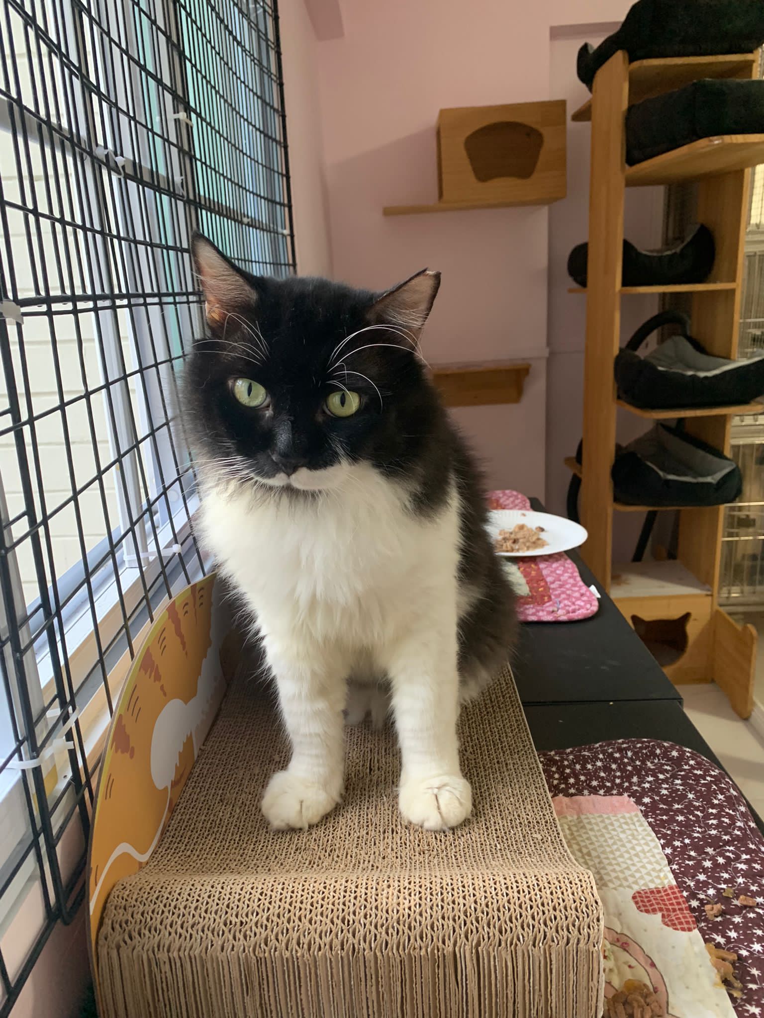 Noon: saw msges that he settle down alr. Think he haven’t see his bro. He got a water dispenser, cat tree and unicharm cafe and a long catnip toy.