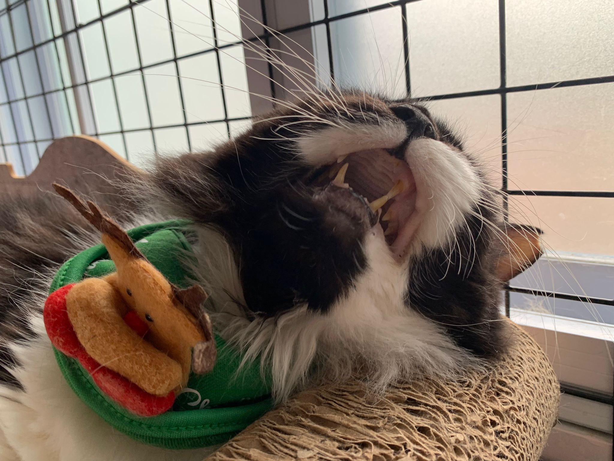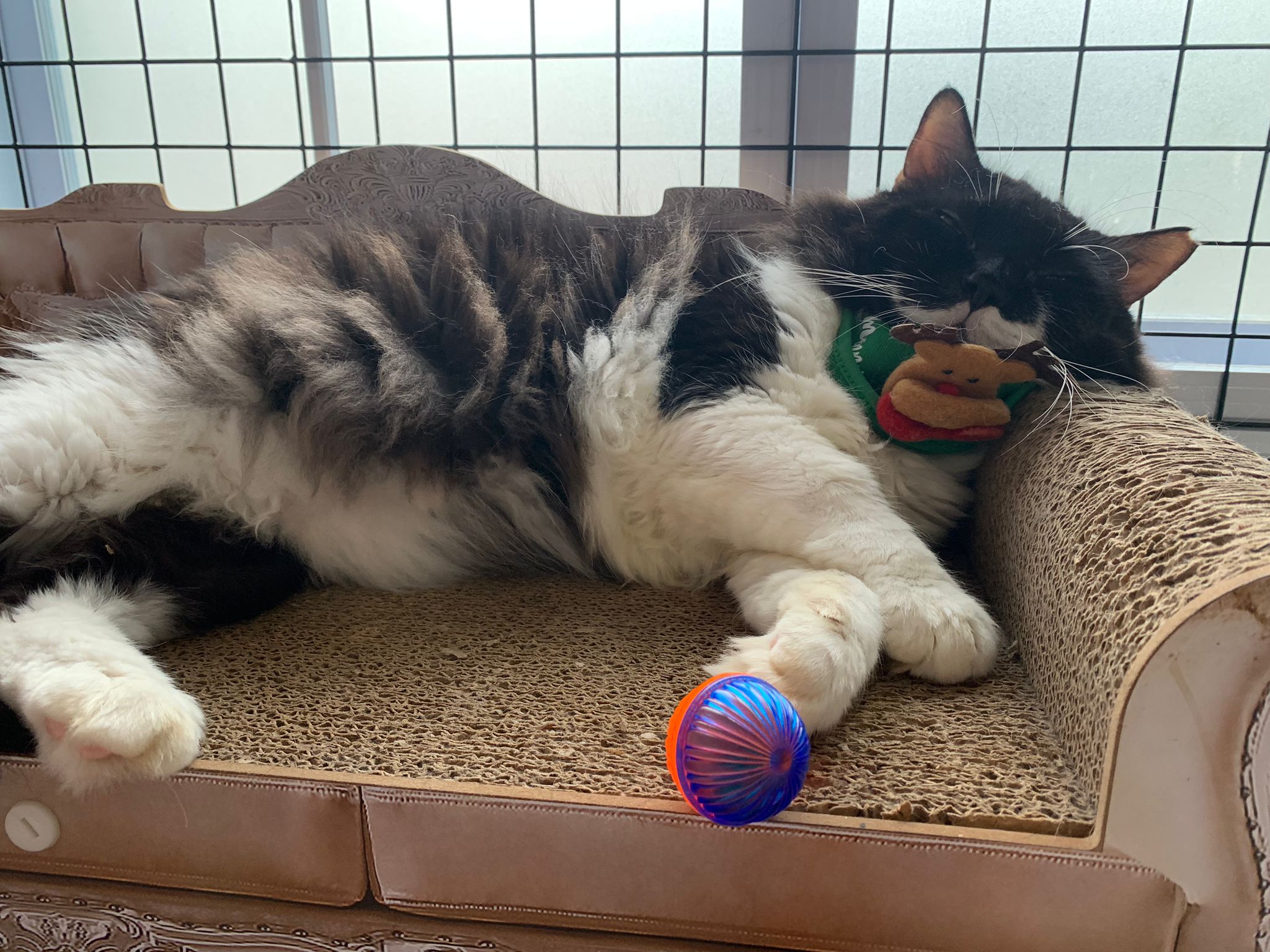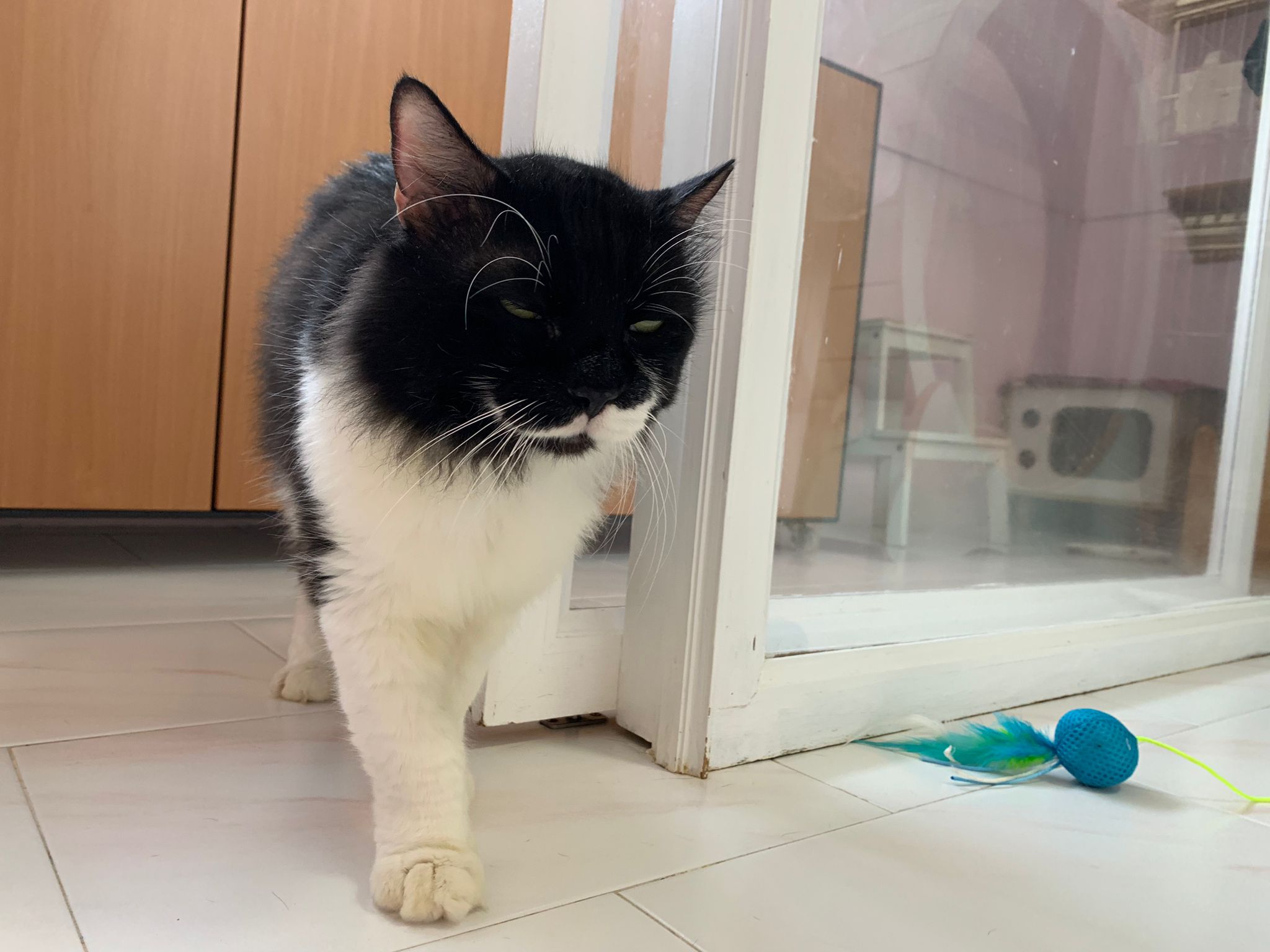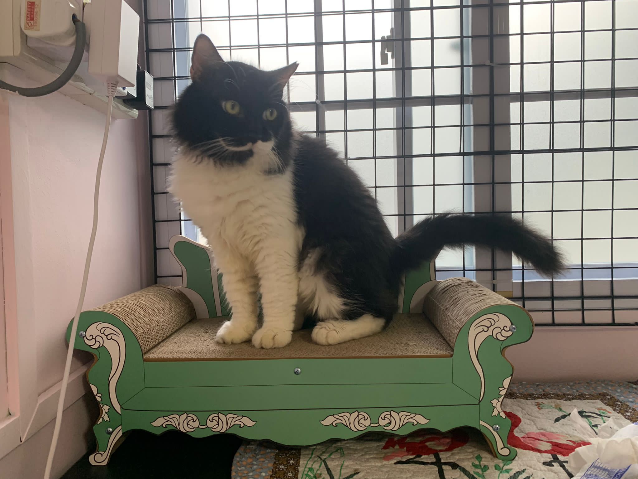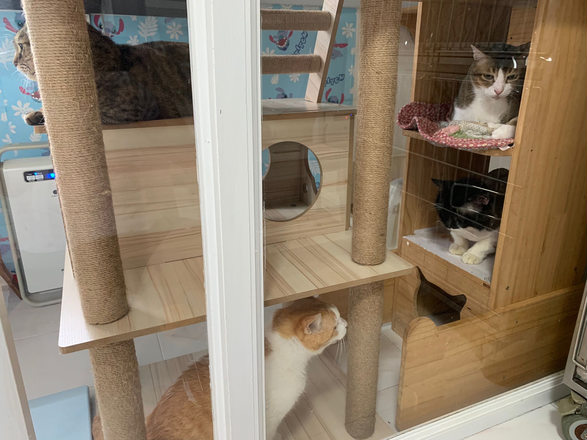 Noon: saw msges that he settle down alr. Think he haven’t see his bro. He got a water dispenser, cat tree and unicharm cafe and a long catnip toy.