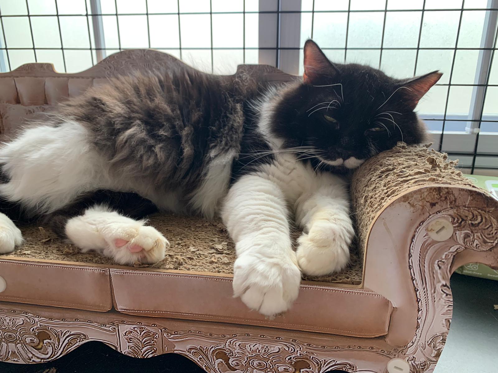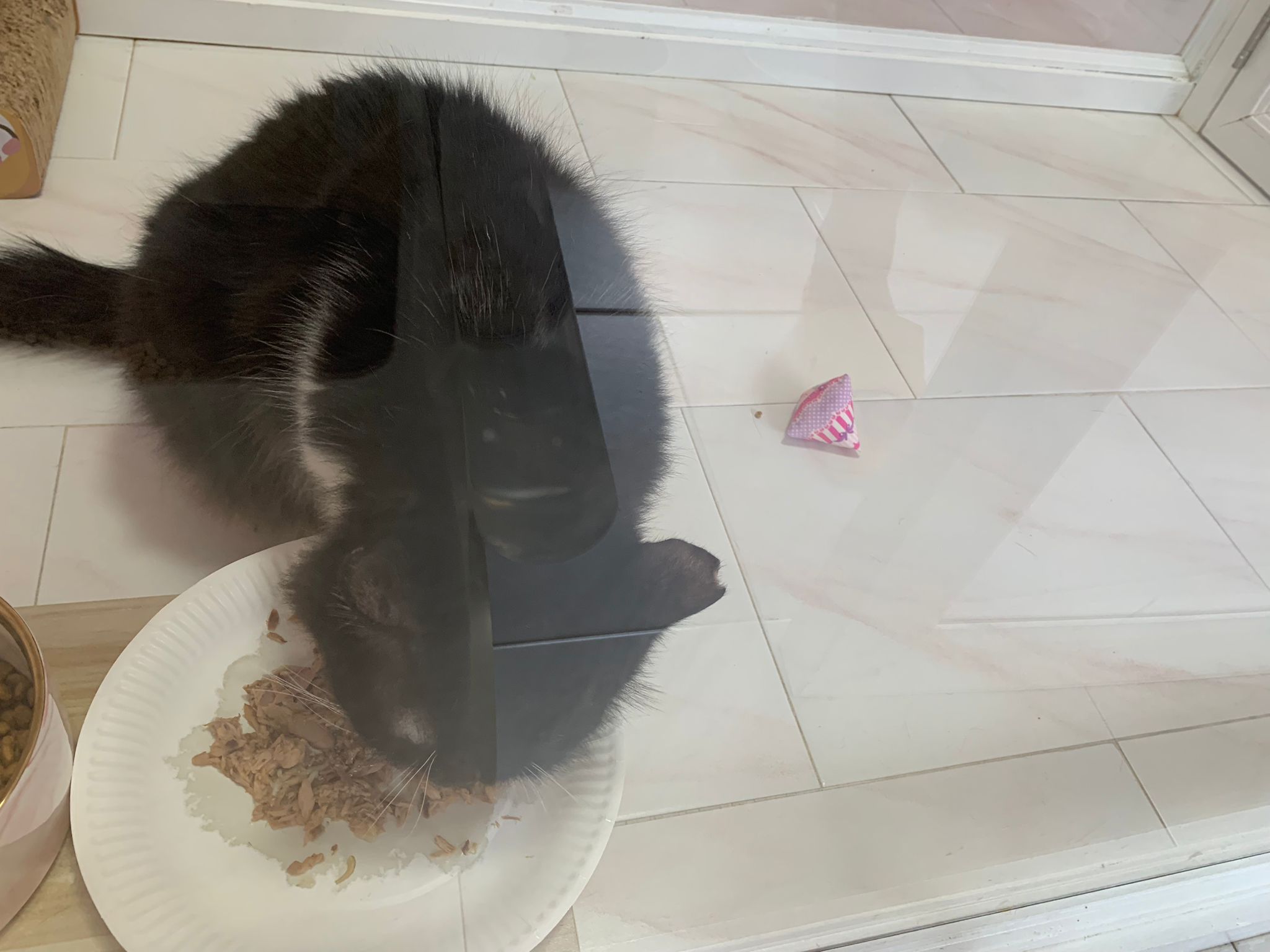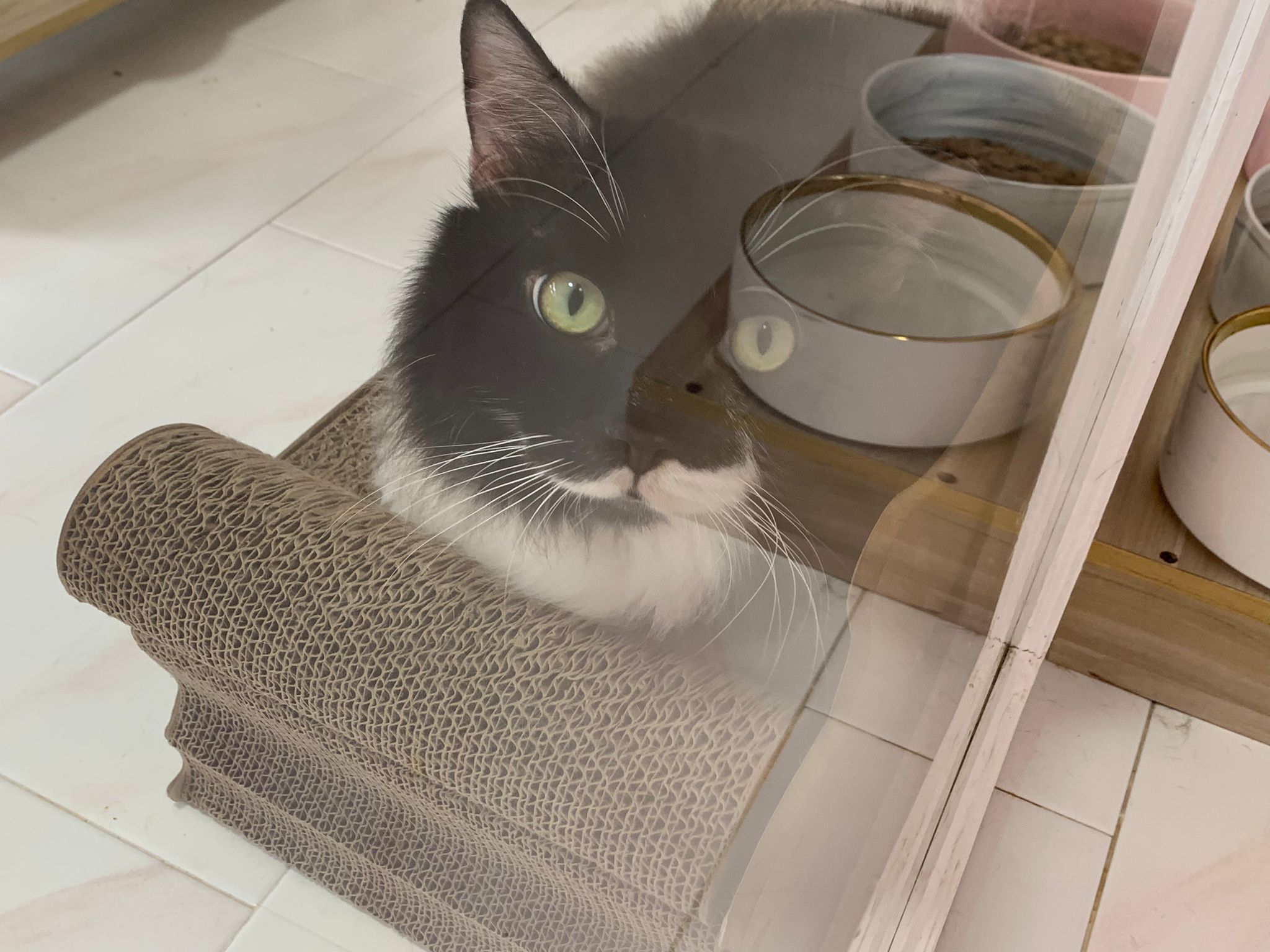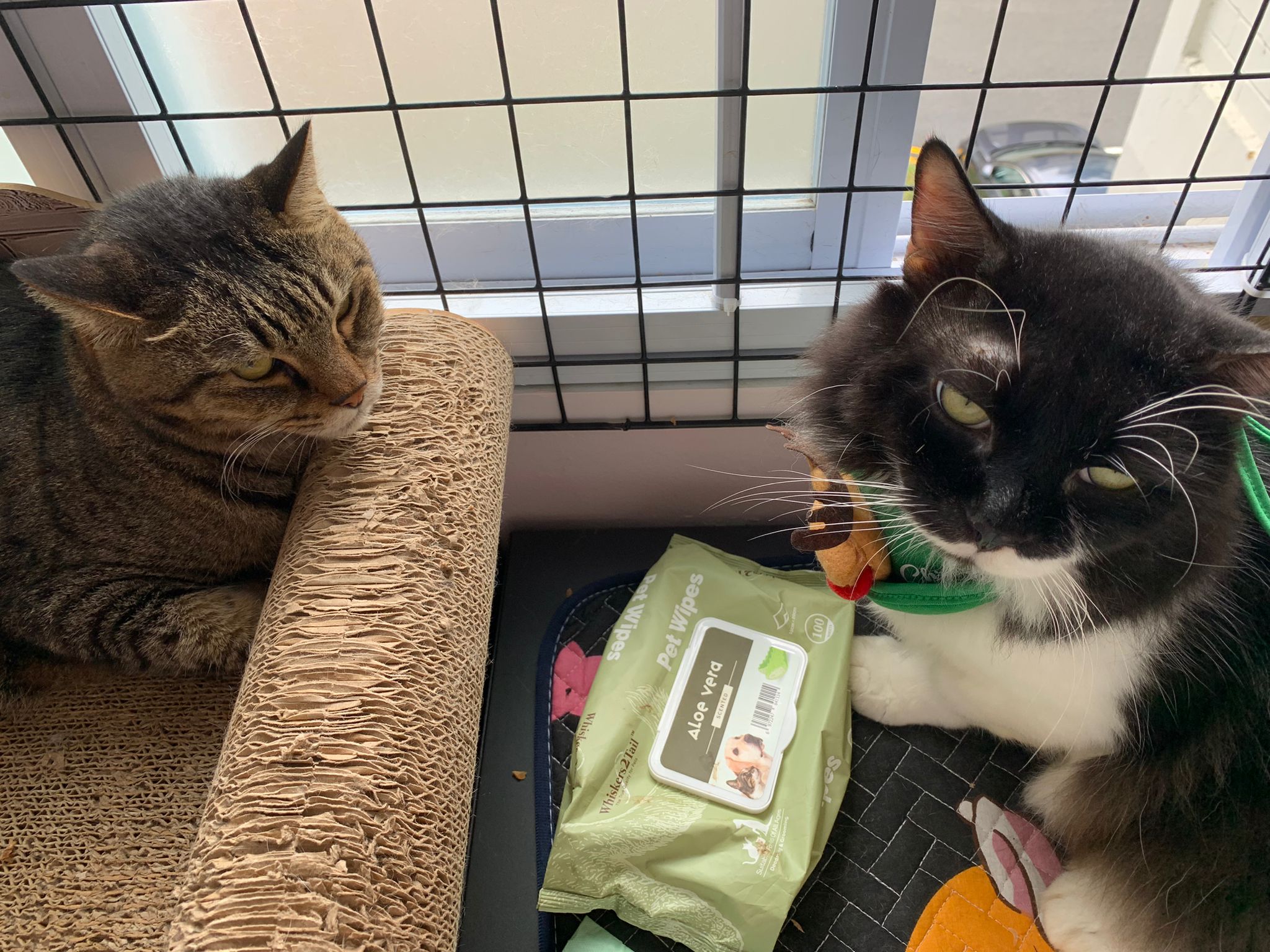 Noon: saw msges that he settle down alr. Think he haven’t see his bro. He got a water dispenser, cat tree and unicharm cafe and a long catnip toy.