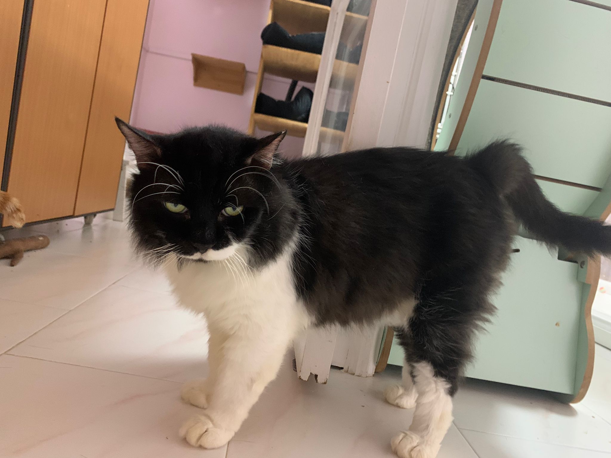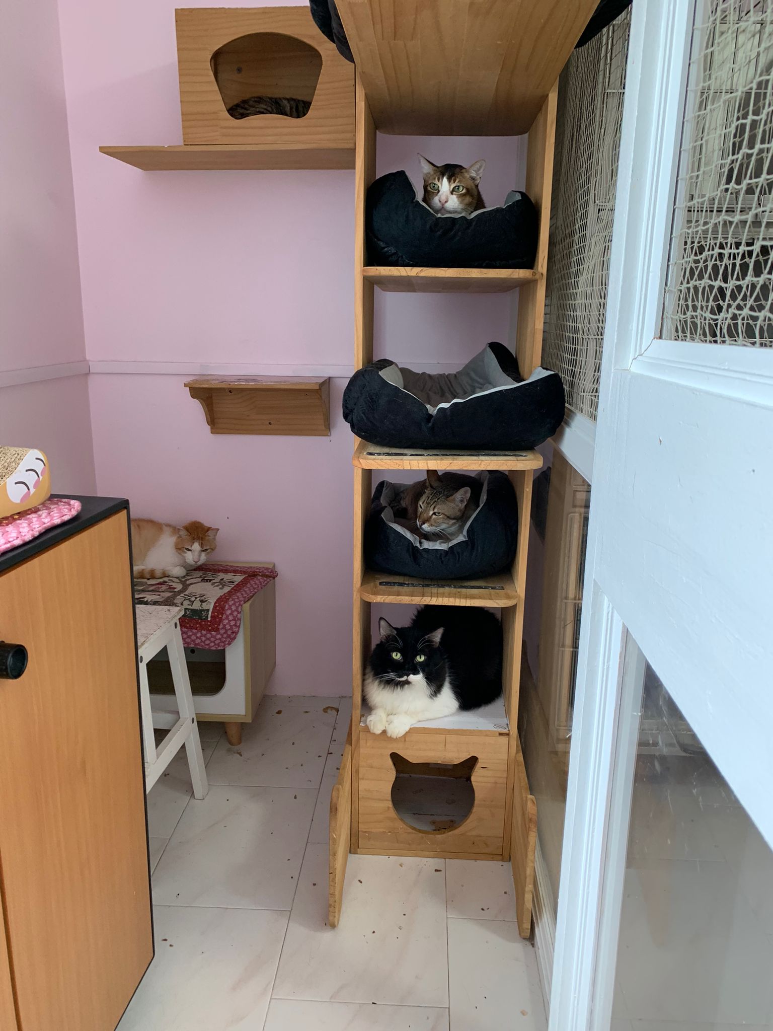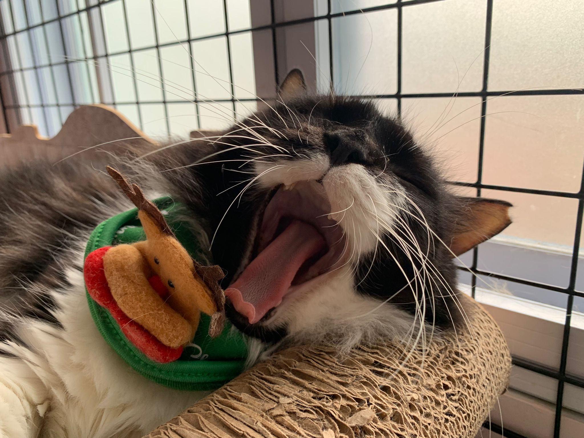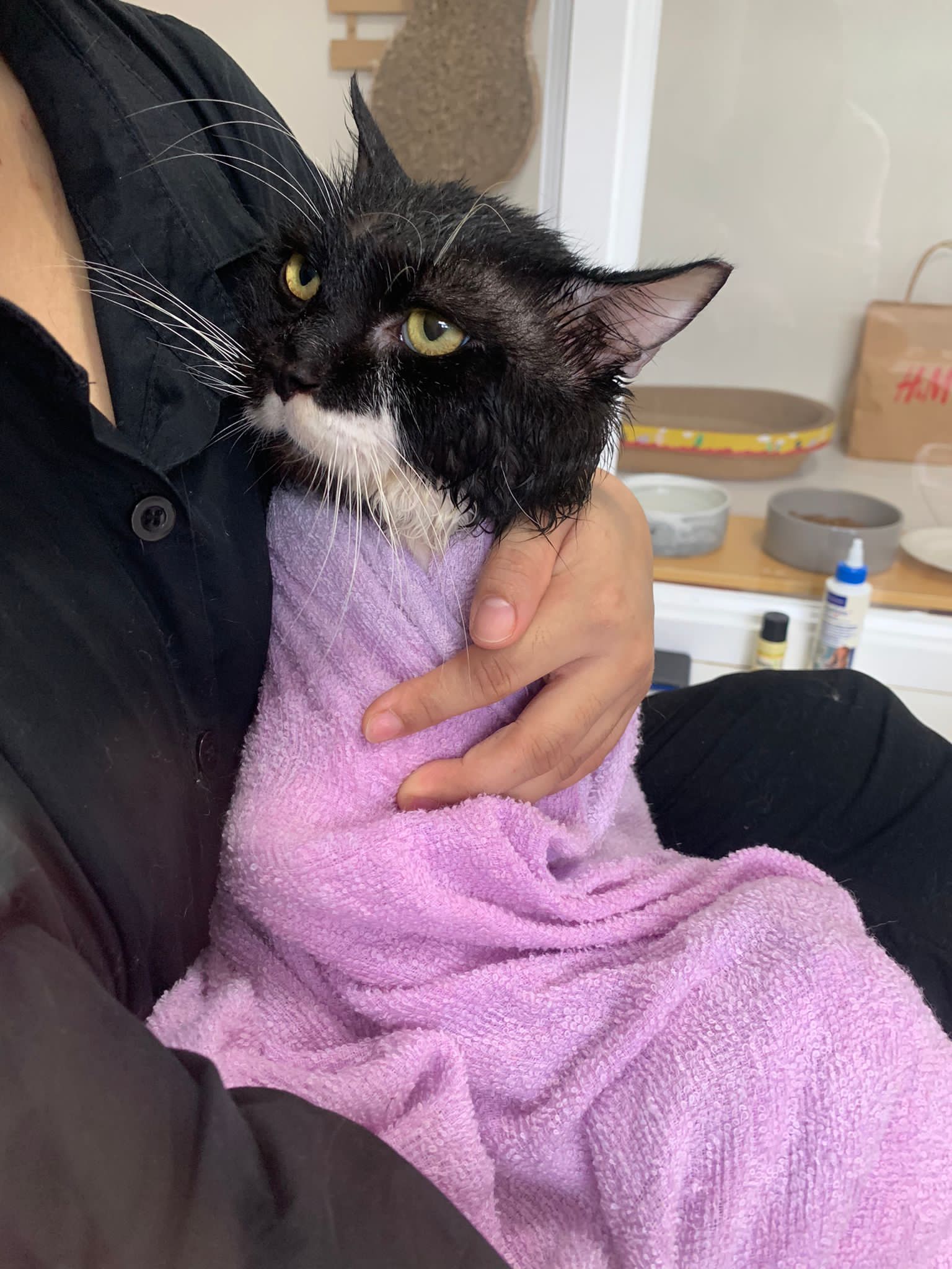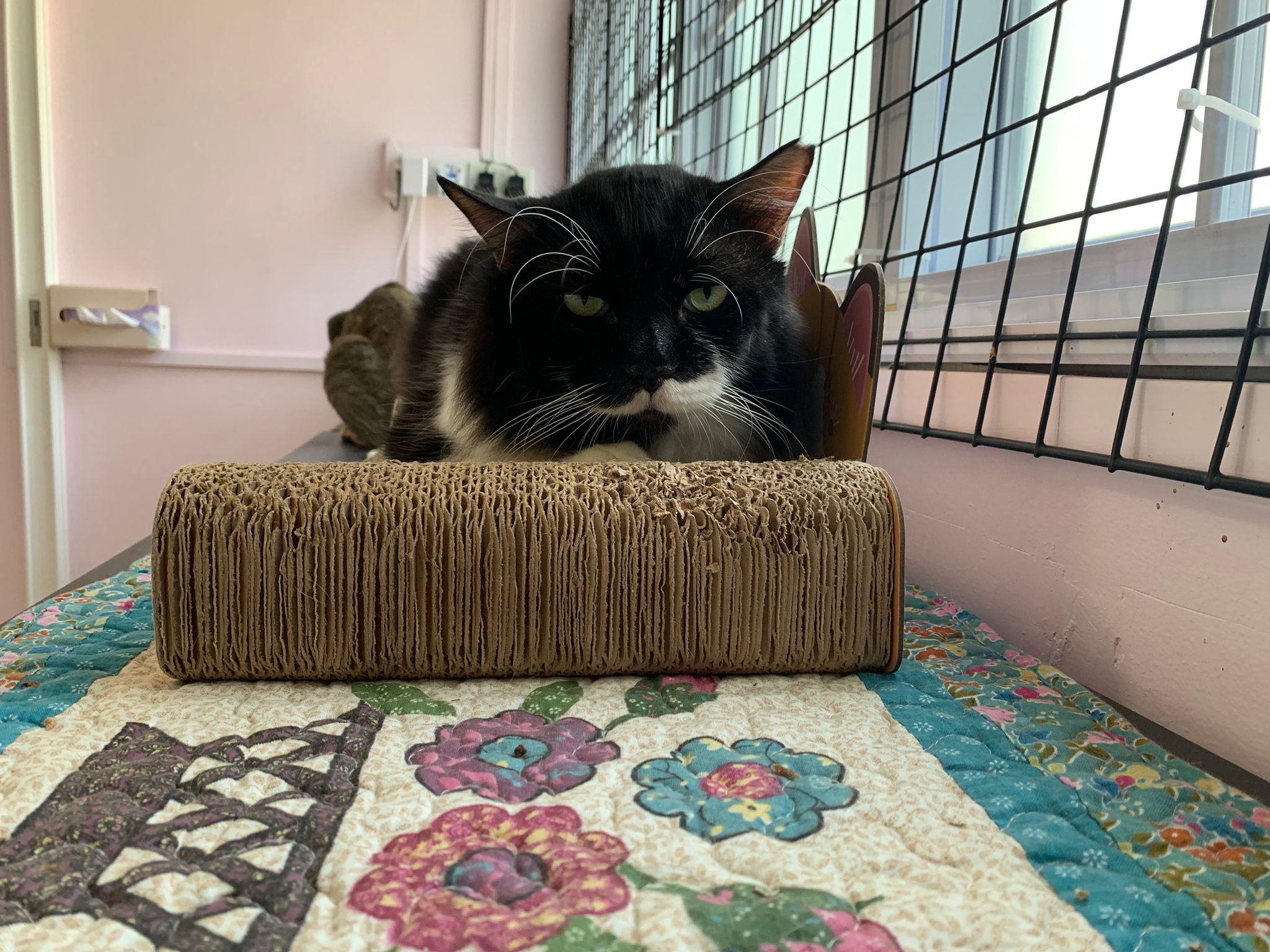 Noon: saw msges that he settle down alr. Think he haven’t see his bro. He got a water dispenser, cat tree and unicharm cafe and a long catnip toy.