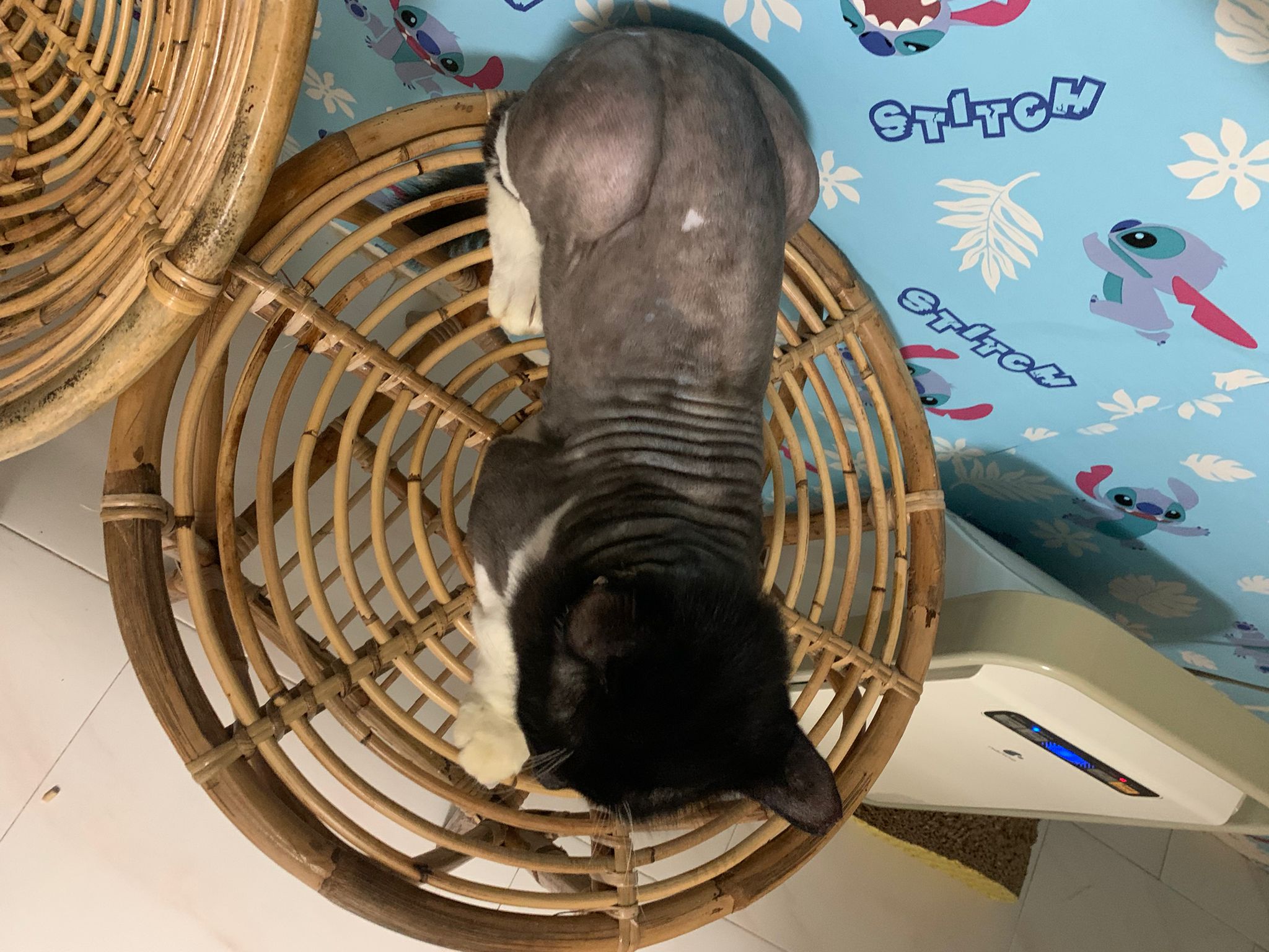 855am: as expected no poo, so means he is a poo at 12am cat. Erm. Food cleared and just not that wellness tiny taster. come out will laze on the ratten chair.