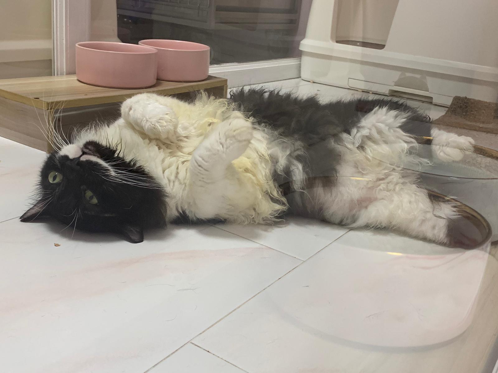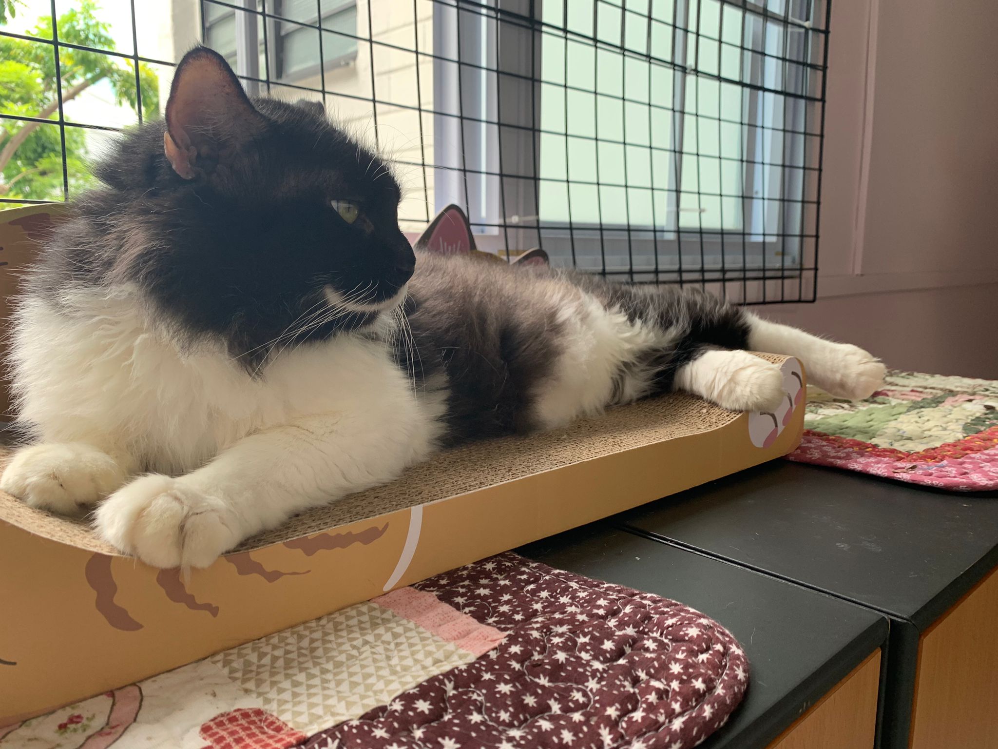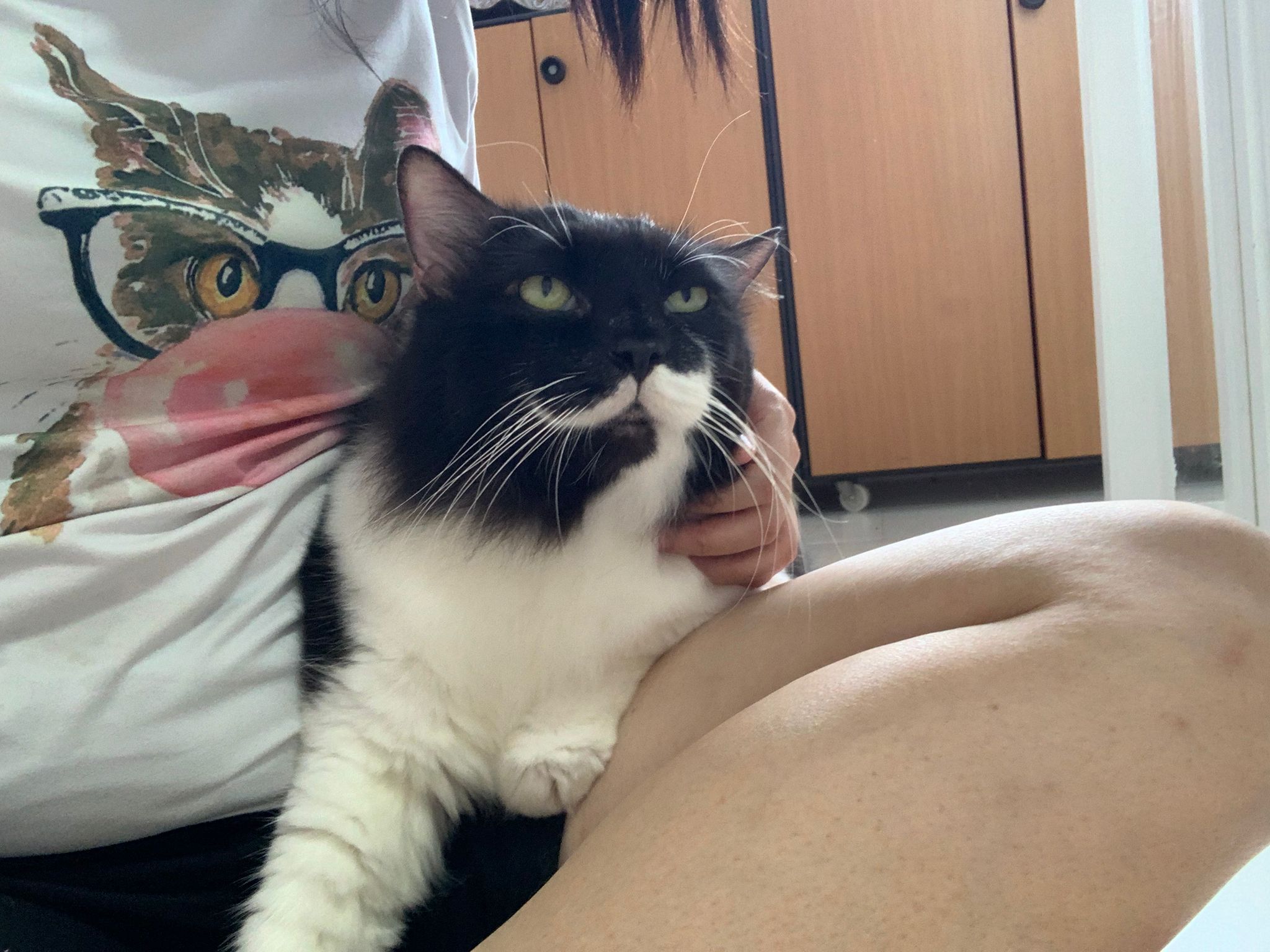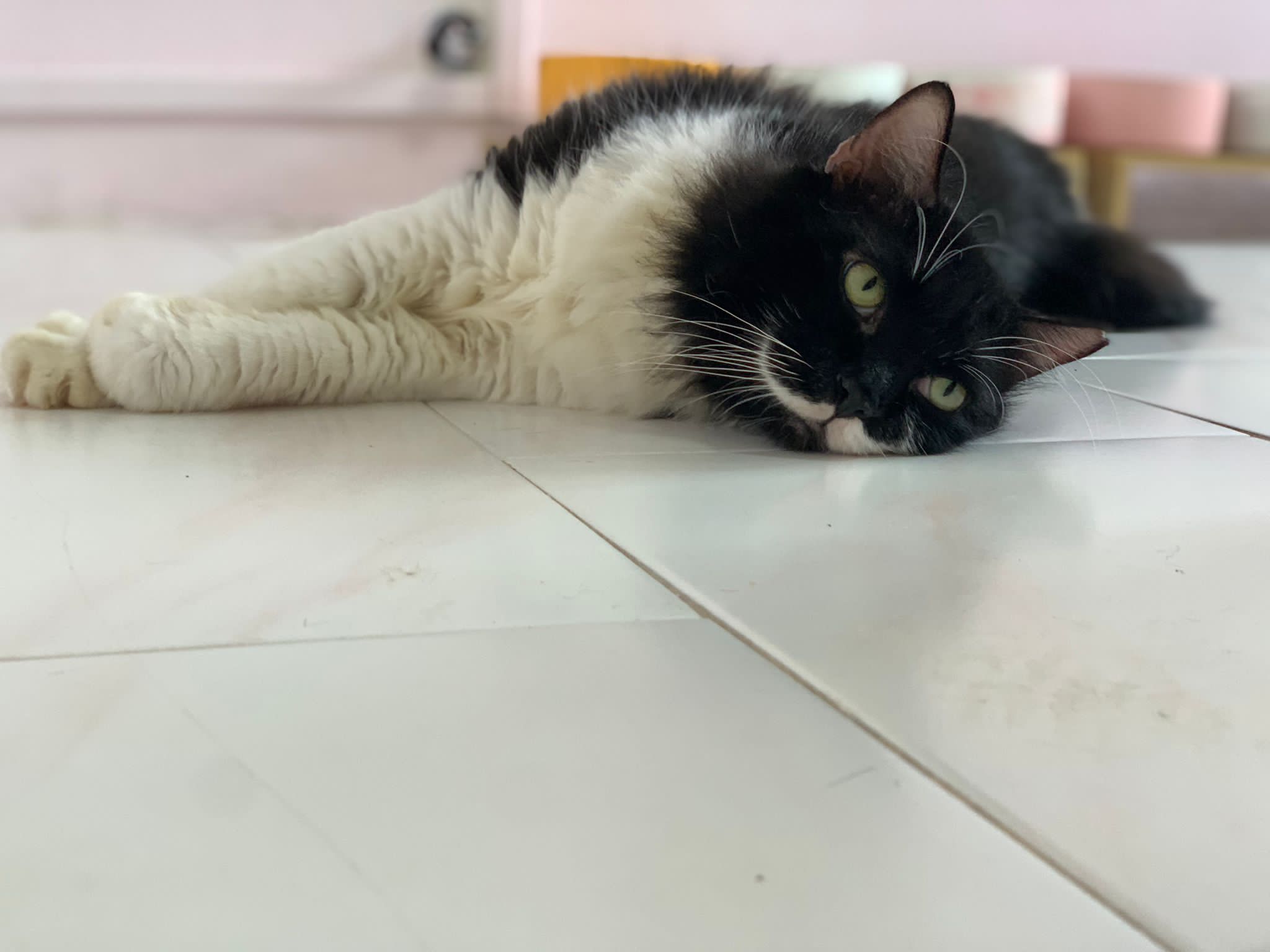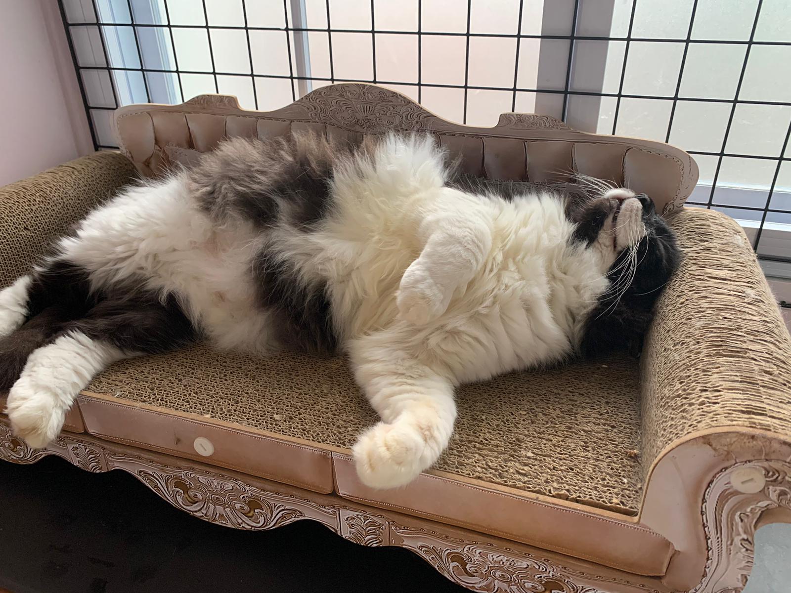 morning: like a usual day, let him out roam he is v happy one, normally he will settle down on one of the sofa sb by the window and laze whole day. Peaceful. I cancel classes this whole week so can let him free roam long3 hours…