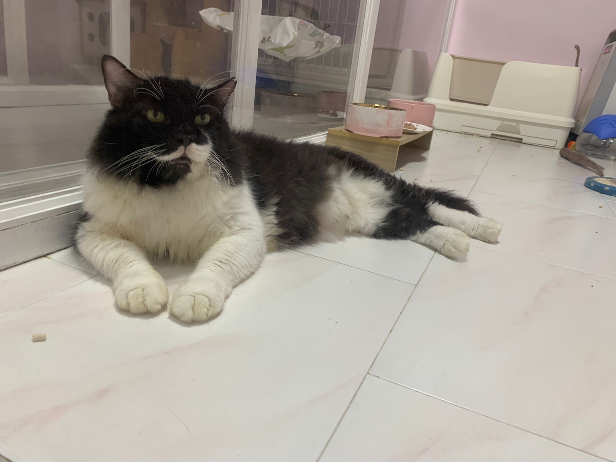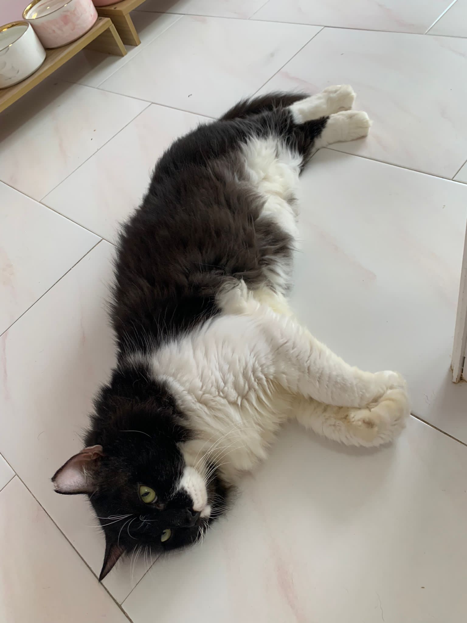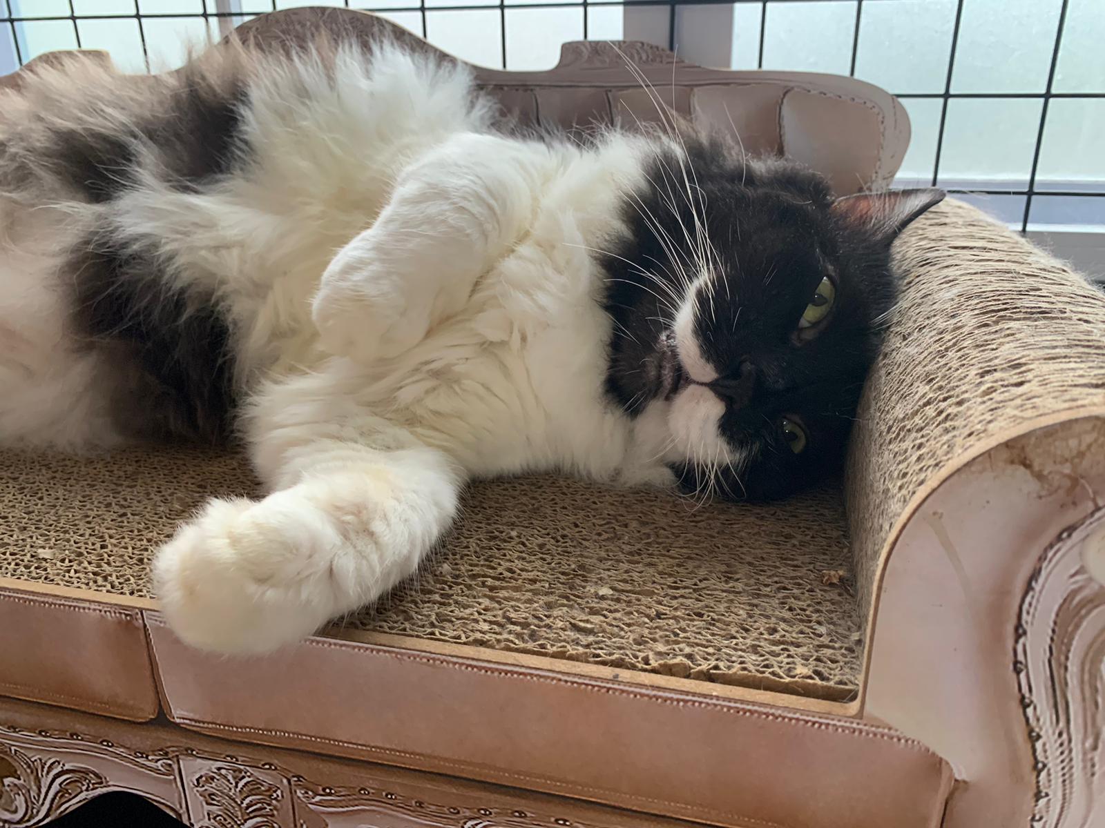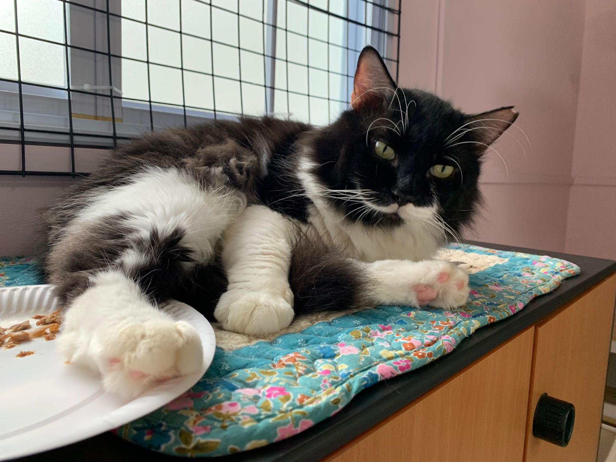 morning: like a usual day, let him out roam he is v happy one, normally he will settle down on one of the sofa sb by the window and laze whole day. Peaceful. I cancel classes this whole week so can let him free roam long3 hours…