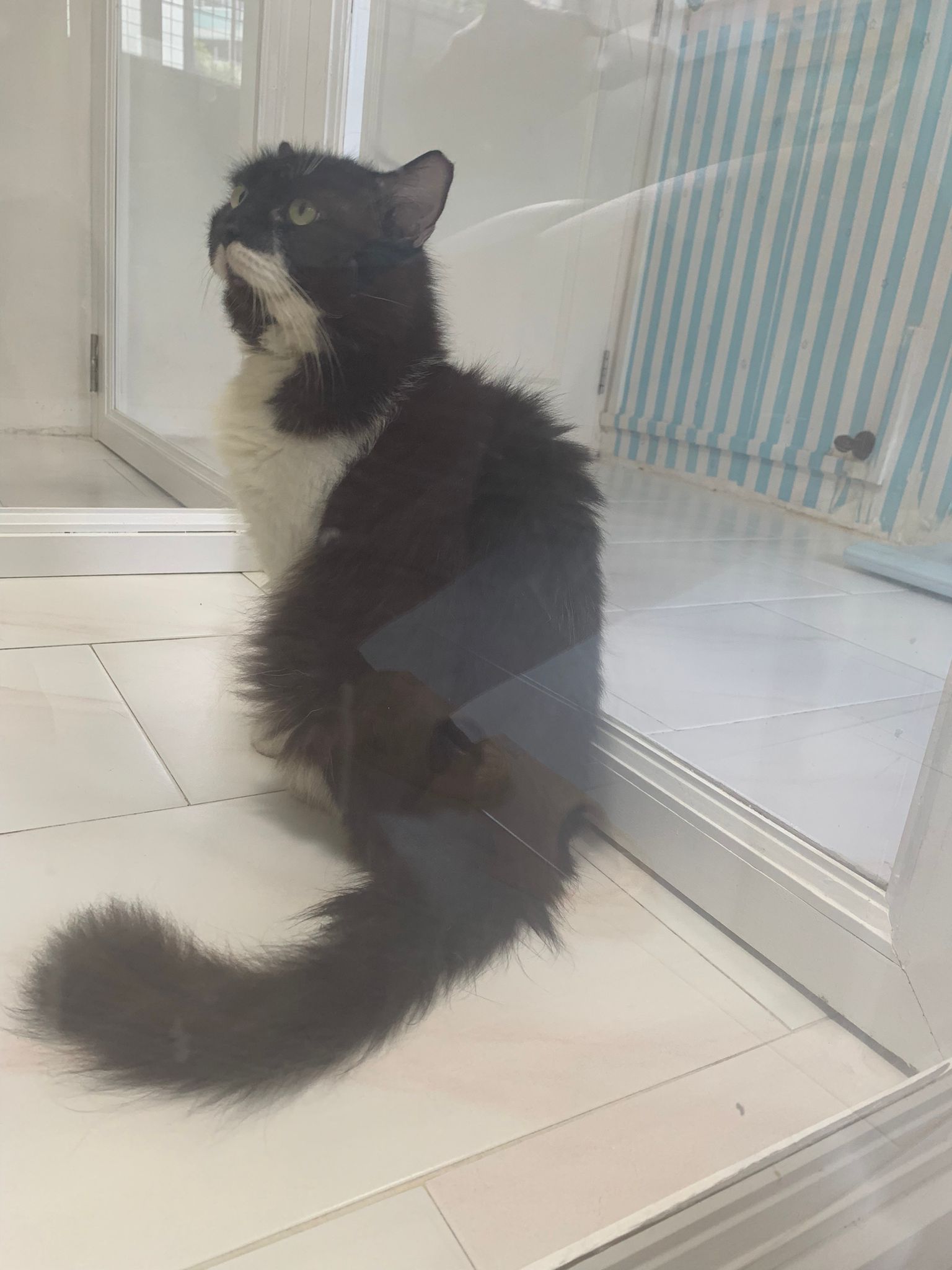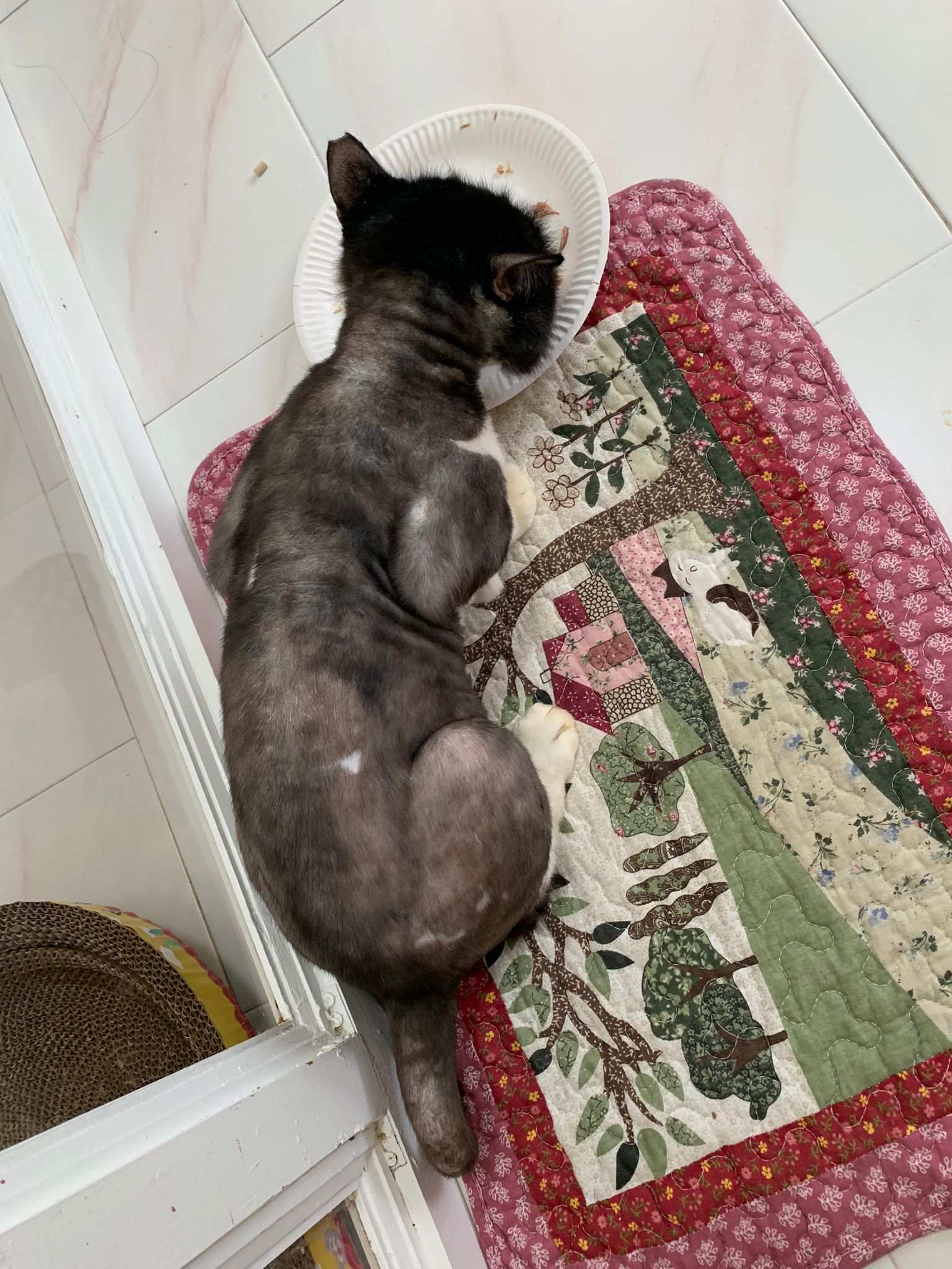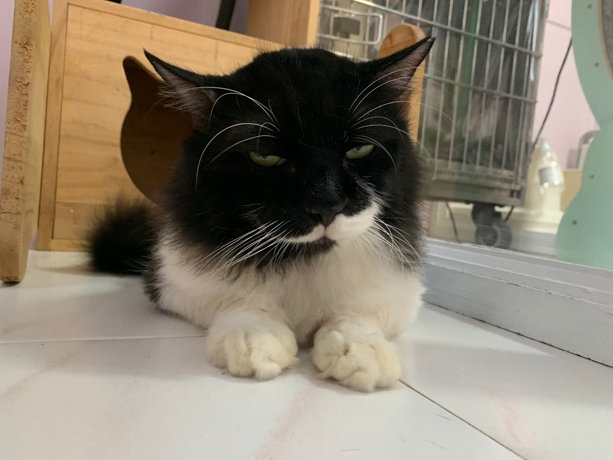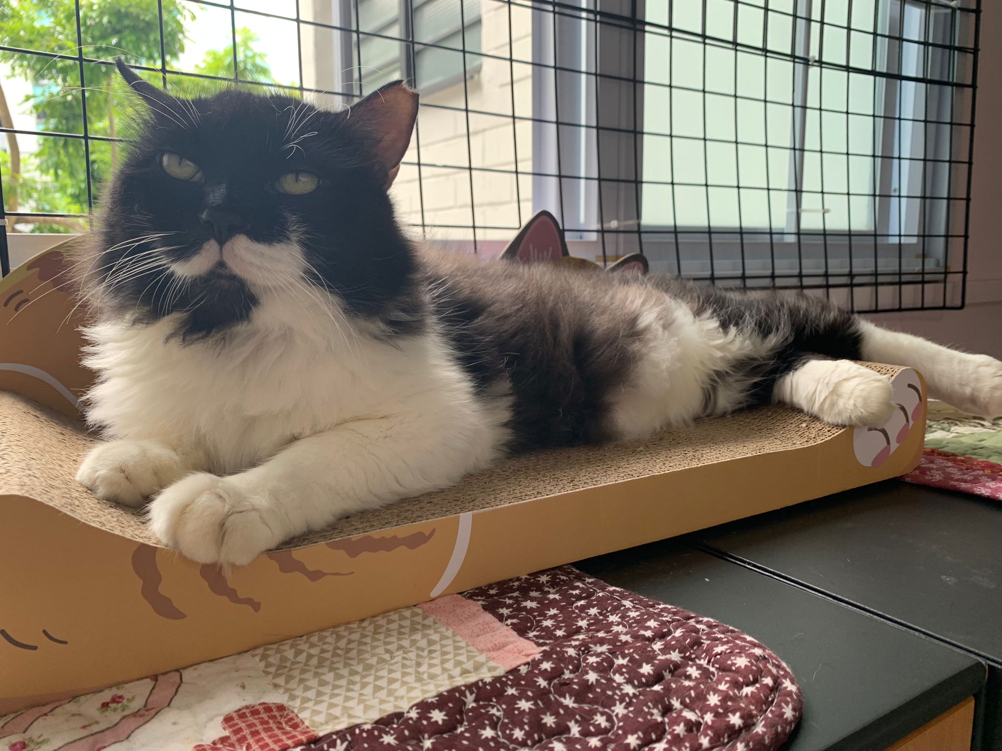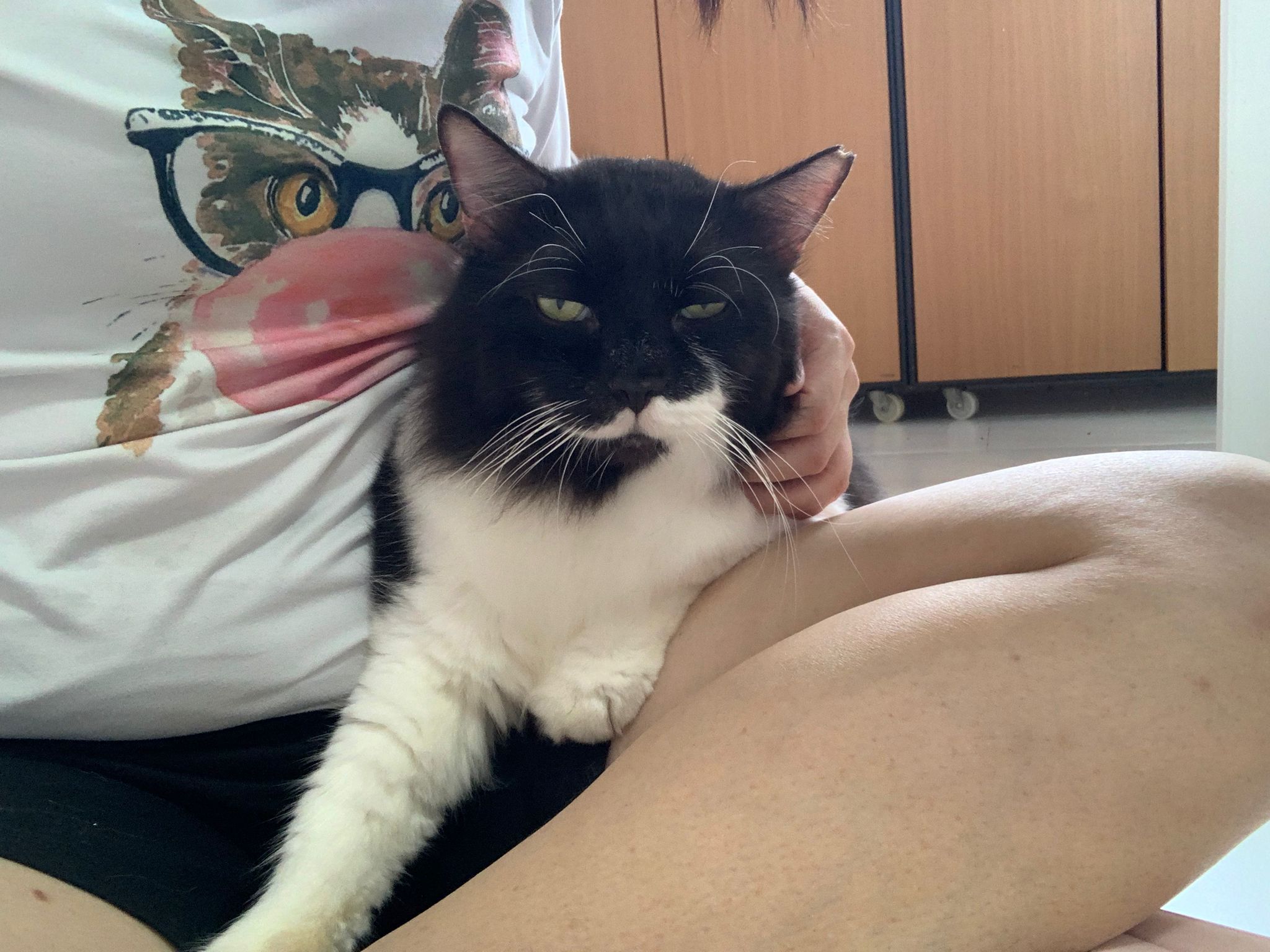 morning: like a usual day, let him out roam he is v happy one, normally he will settle down on one of the sofa sb by the window and laze whole day. Peaceful. I cancel classes this whole week so can let him free roam long3 hours…