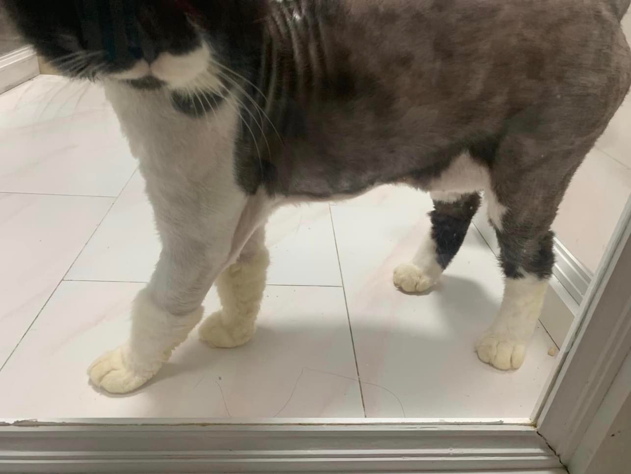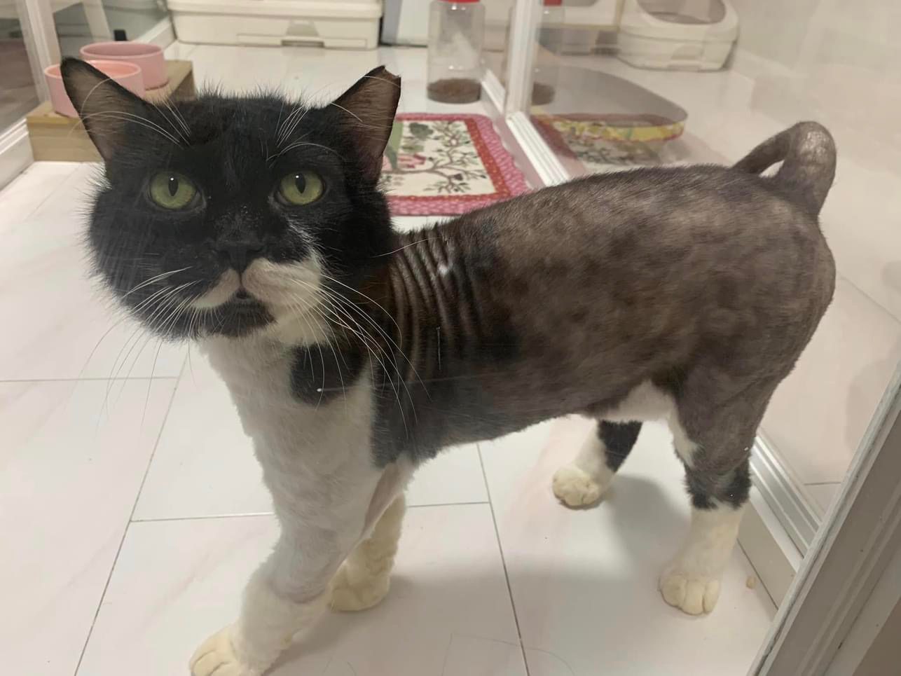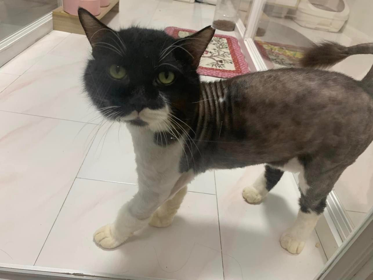 Lion cut, cos i feel his body a lot of spots got issue- shave down n there are many bald spots that’s should be old injuries and those parts won’t have fur growing anymore. Bottom