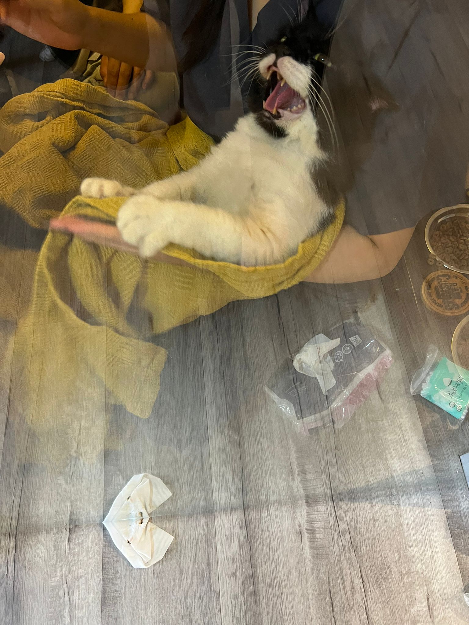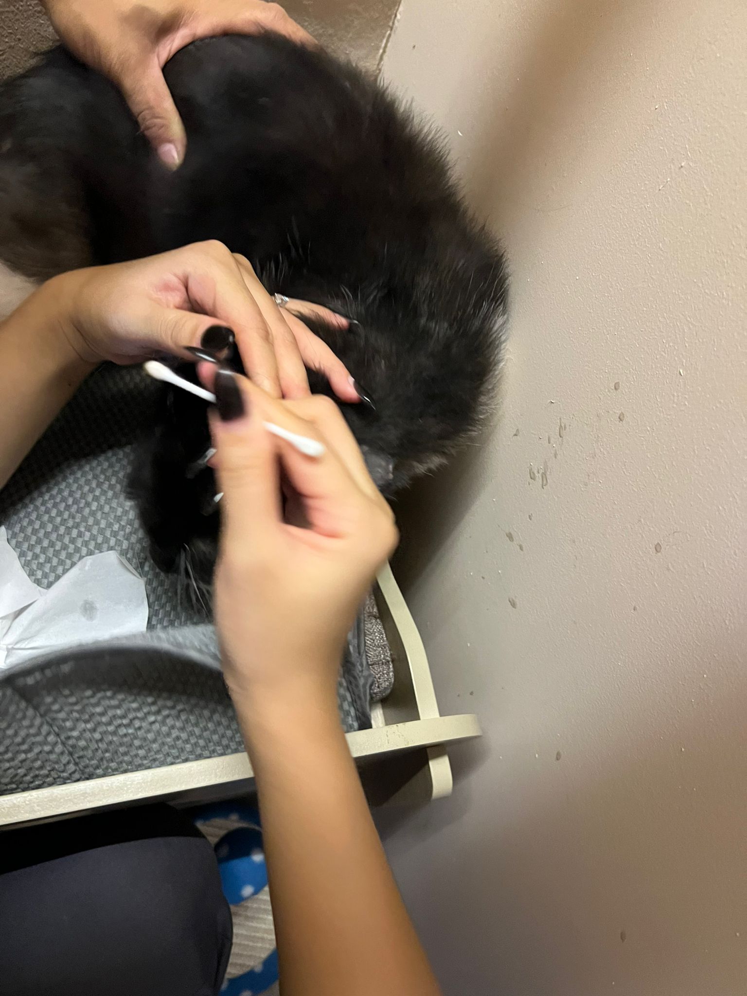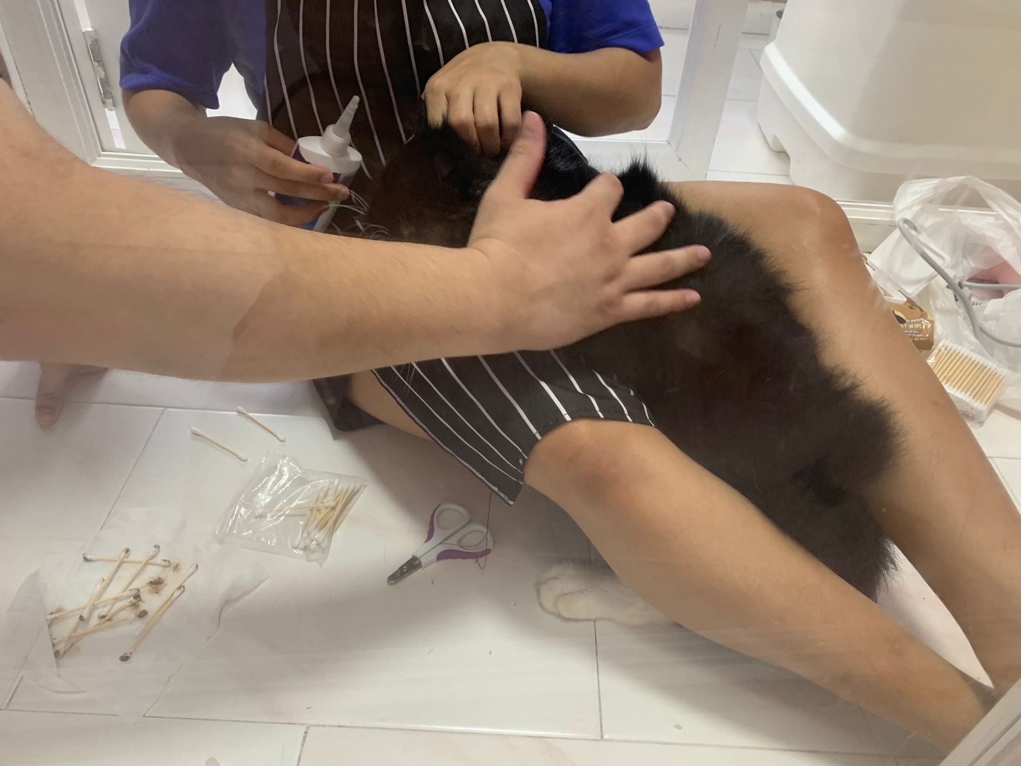 103pm: hand n legs very strong. Struggle A LOG when cleaning ears. Ears damn damn dirty. Didn’t clean b4. Inside right ear got blood. He bang his head against my acrylic, a bit blur2 now,