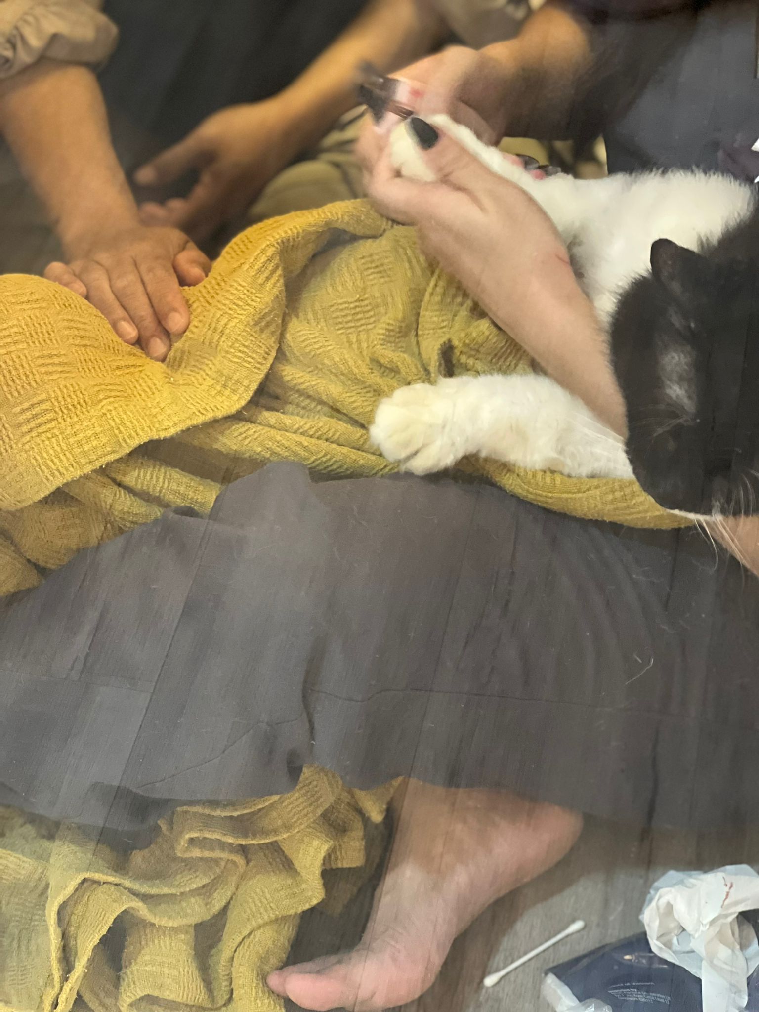 after all done, clean and apply banocin on his wet wound. He like to use his leg to kick scratch loh. But now at least leg n nails r clean.