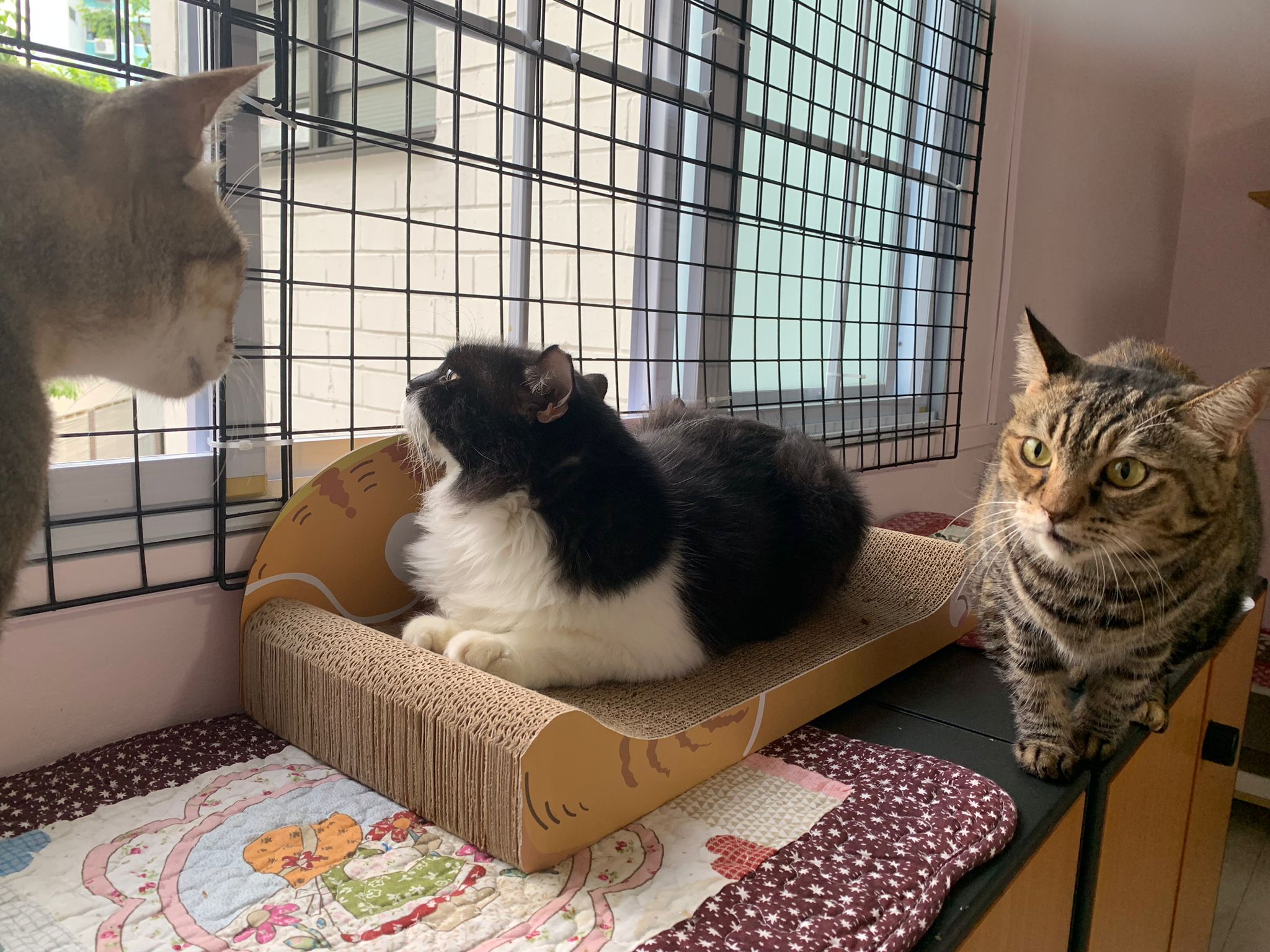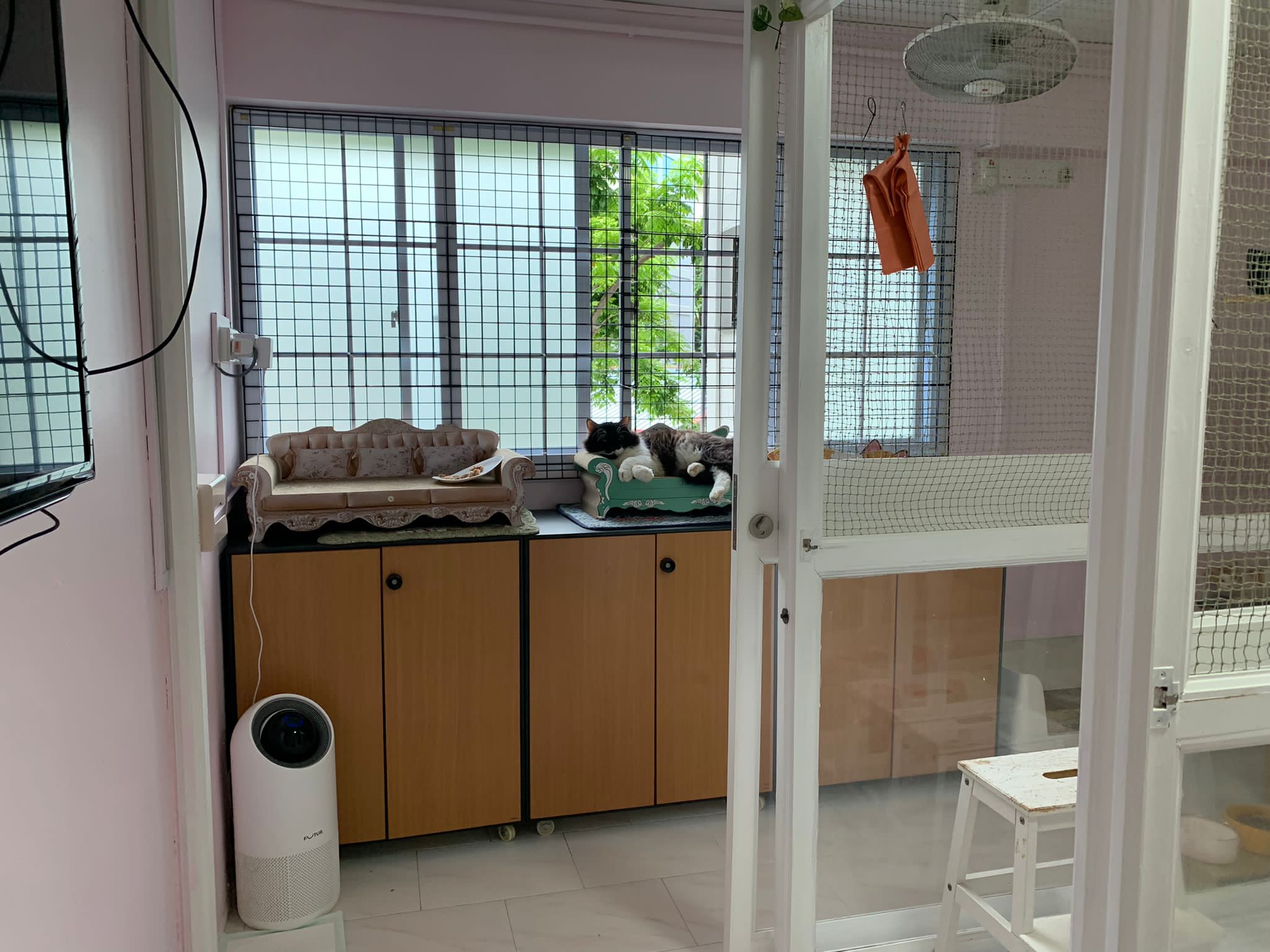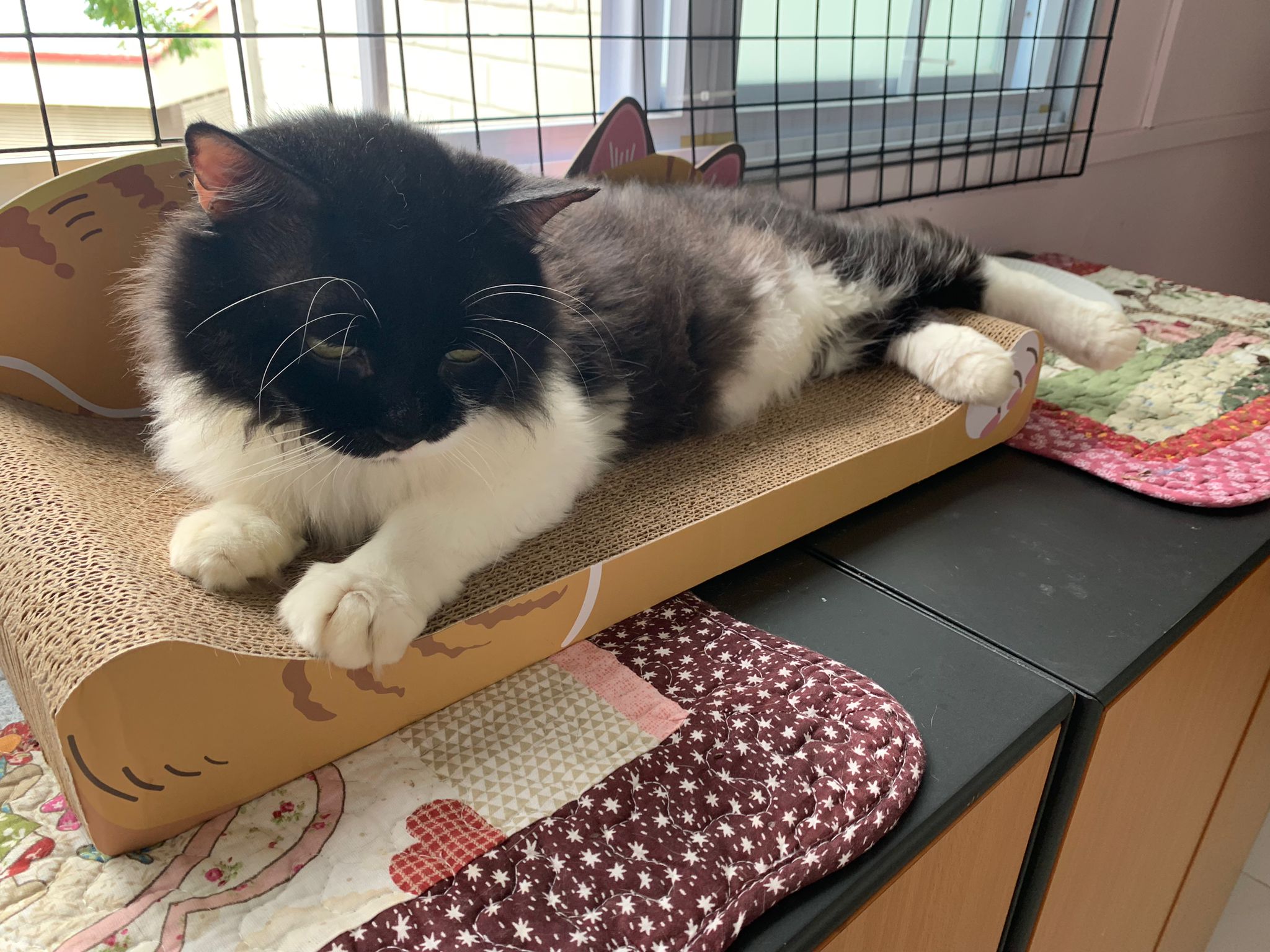 Heard fr amy that her adopter make invisible grills 1.5mm, Erm too thin and didn’t mention about the width apart, and Amy wanna them to make the stiffer… Erm think the date will delay again. Won’t be telling jumbo yet, cos things keep changing. By right left 1 week. Think jumbo would like a friend. Maybe one day if the adopter see pple post got felv cat need help n that cat happen to be a gong gong one, won’t respond to jumbo sudden dash and pounce on then they can be friends. But that cat can’t be too thin cos jumbo is getting really heavy.