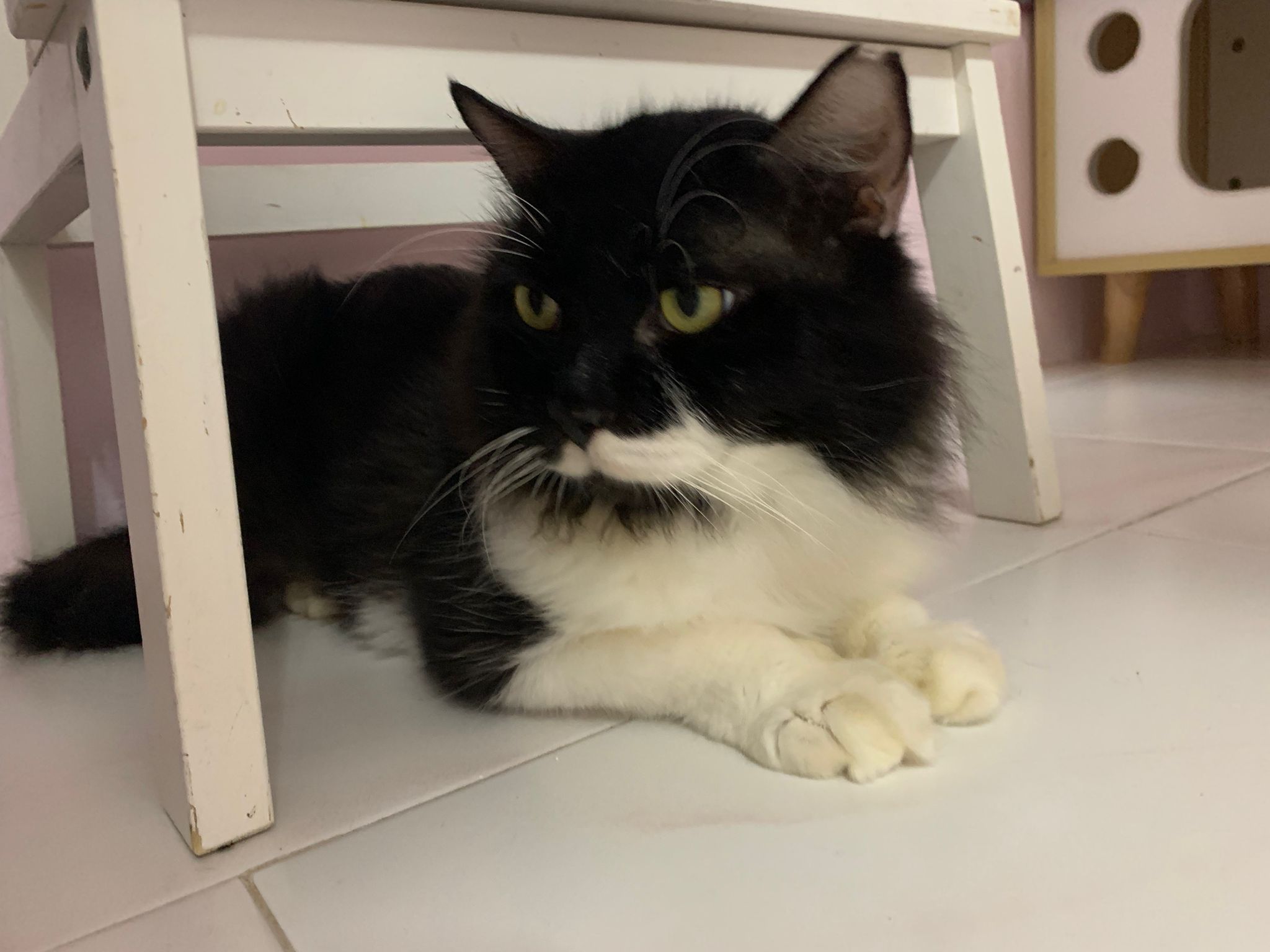 10.30pm: still v happy can come out sniff pple poo???! – ha but he super like sitting and pose on ratten table.