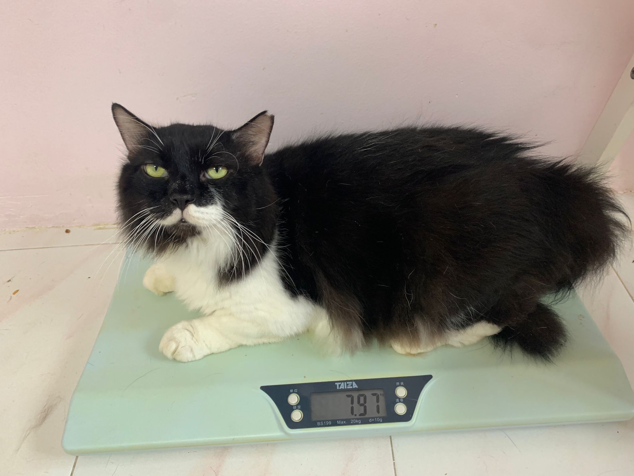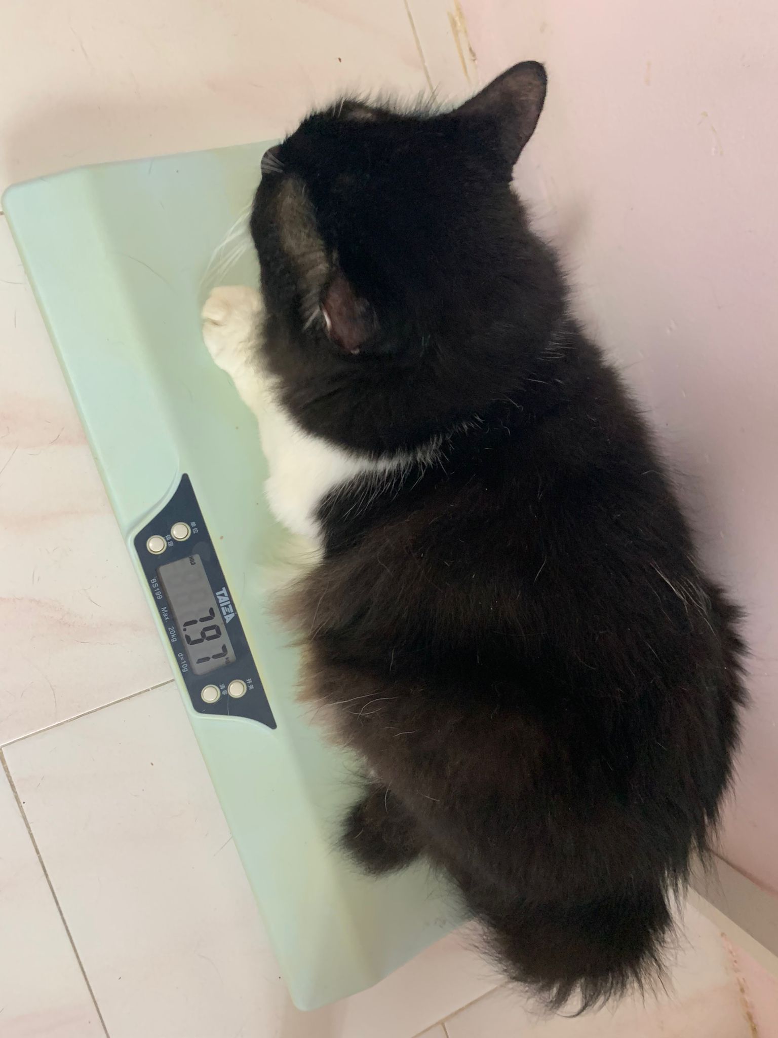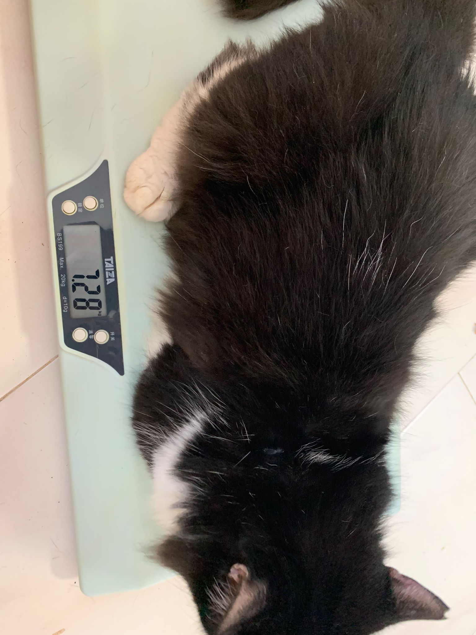 5.72kg is the weight he discharge (I weigh 7.95kg – carrier 2.23kg) – let’s see how he grow for the next period in 猫房.