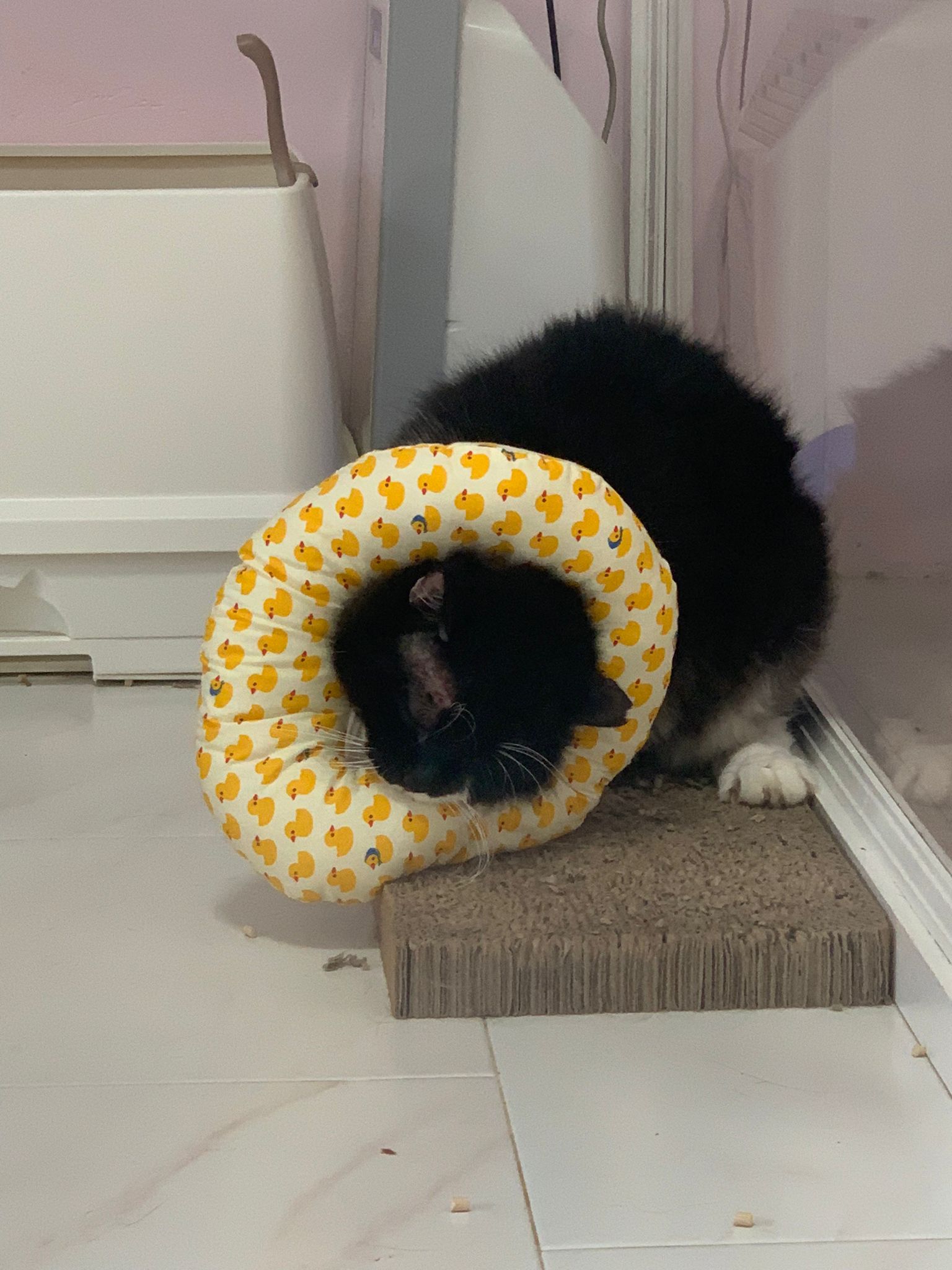 2.50pm: his collar is alr off – ha wasted a ducky. For now, no need Clav yet. I’ll observe.