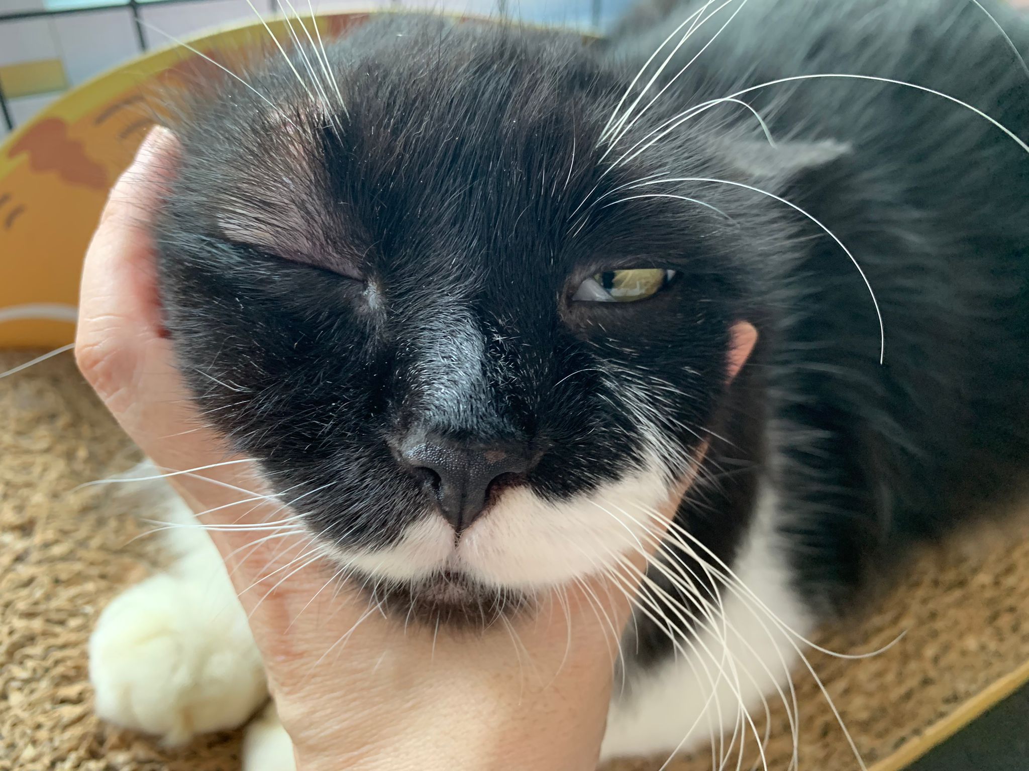 His eye is fine too. Just basic cleansing w f10 and silver gel.