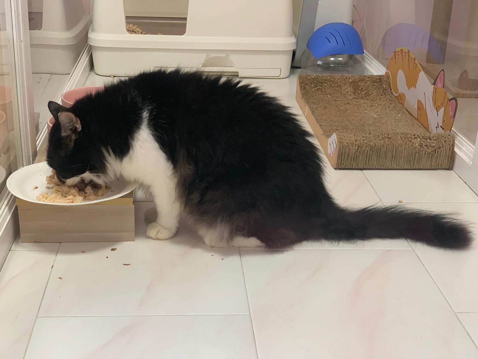 Jumbo left 猫房 on 20.1 sat 10.50am, since then he didn’t eat till 21.1, 6.52pm. Got pee on day 1 alr (important for boy) and pooped on day 02. dark poo, look scale 4.25/10.