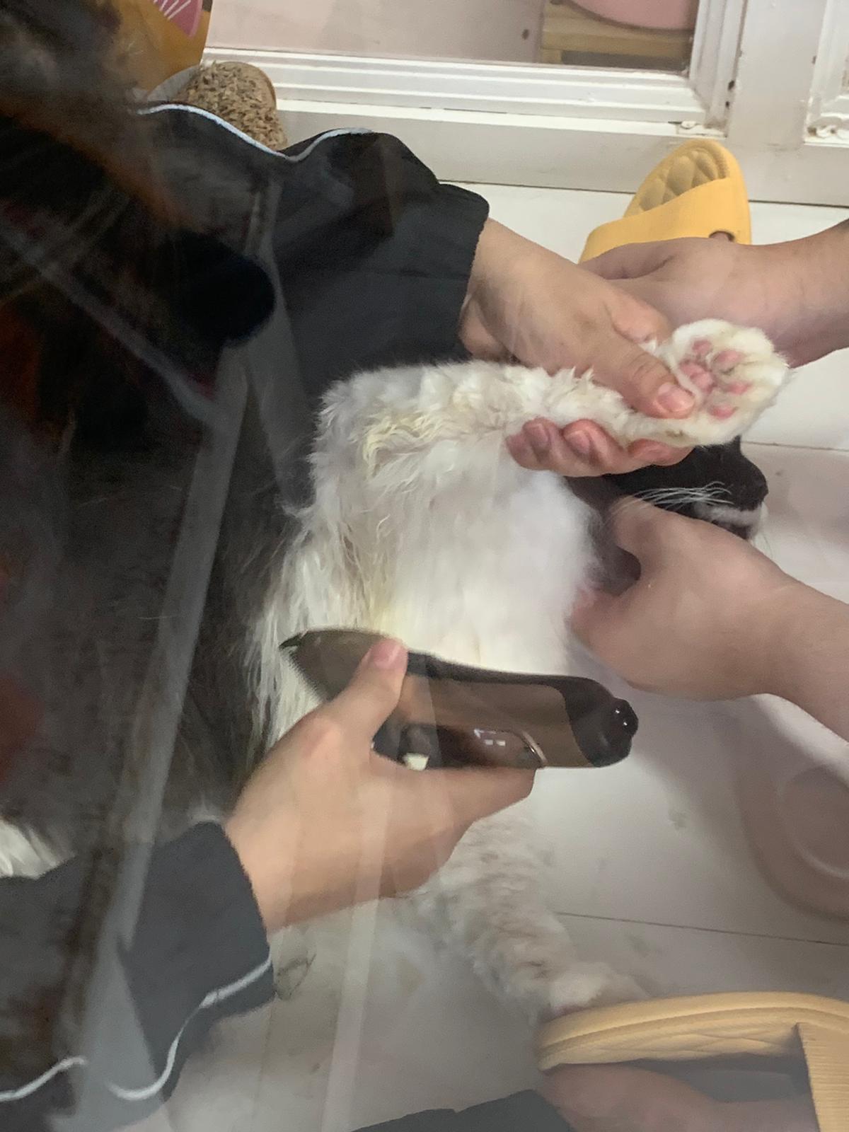 1.22pm: paw fur trim and he so handsome so got trimming of the extra easy hair on his head